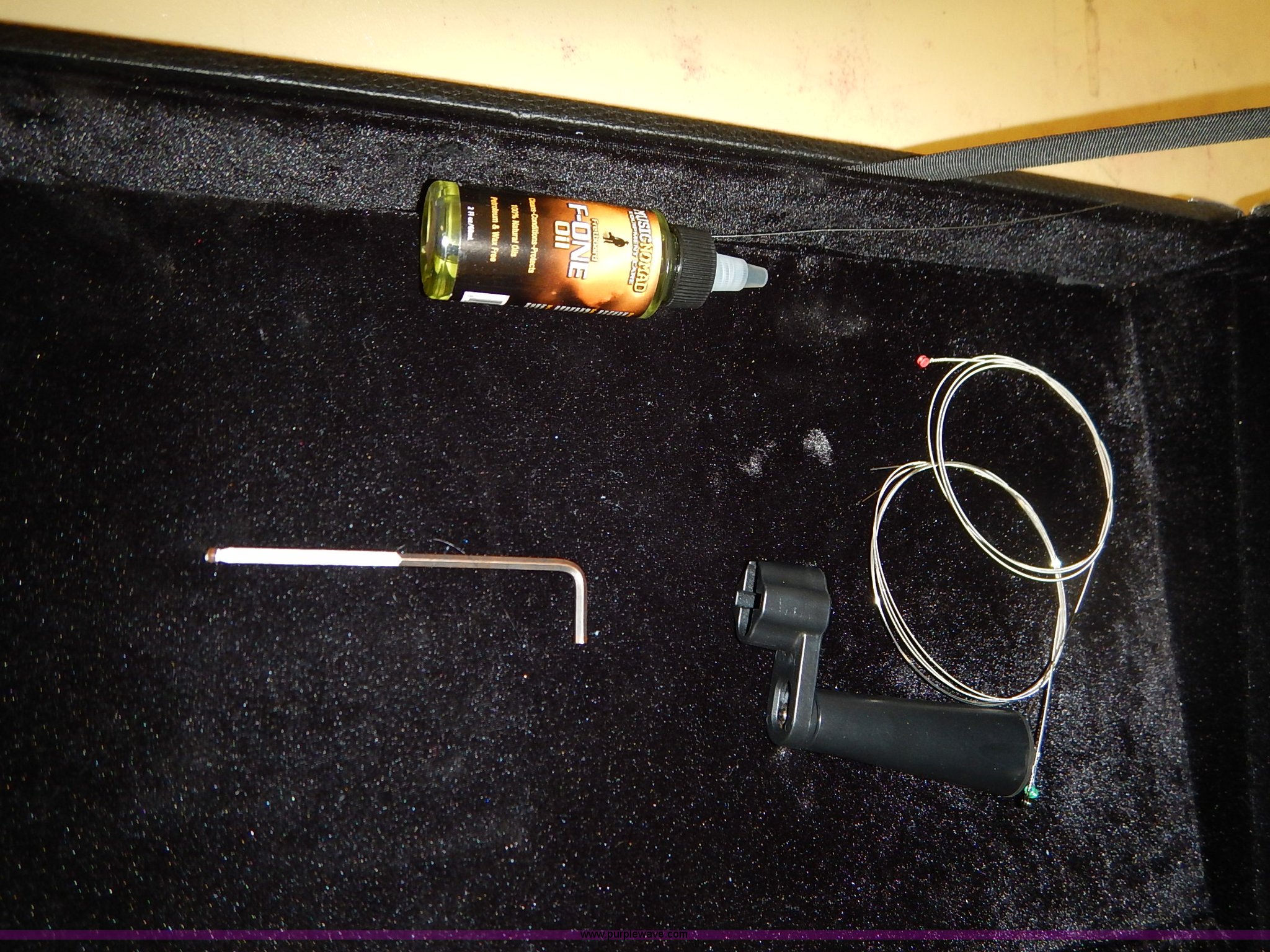 Dime Razorback green guitar. Six string, 28" neck, Black case, ROHS compliant, Serial US10100284. 825 Levee Dr.. Manhattan, KS 66502