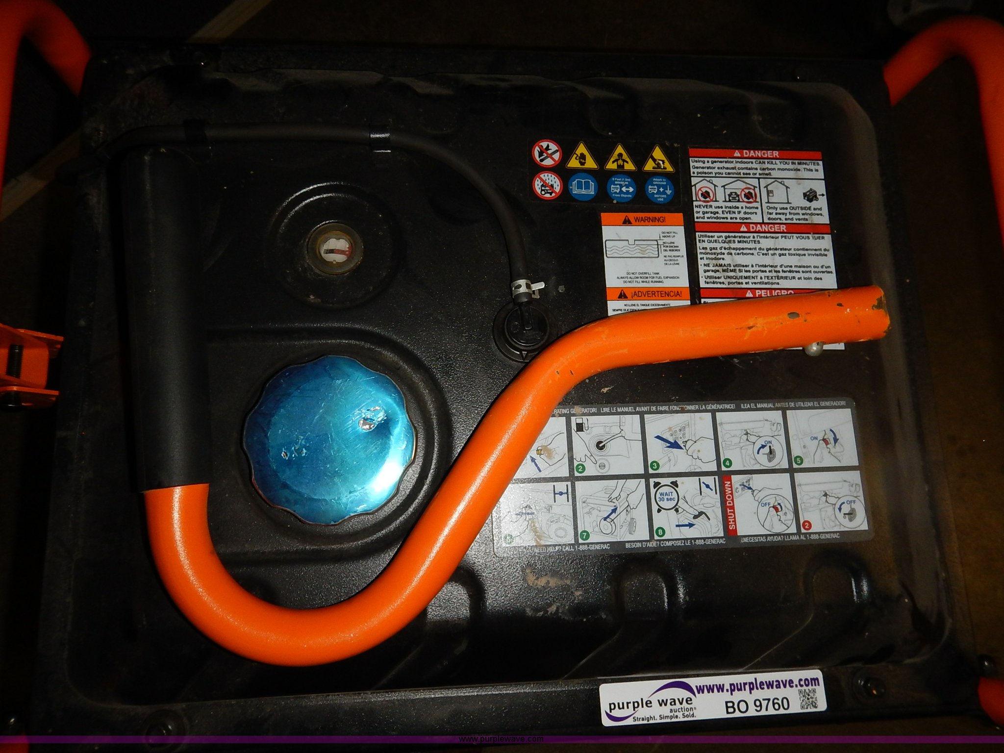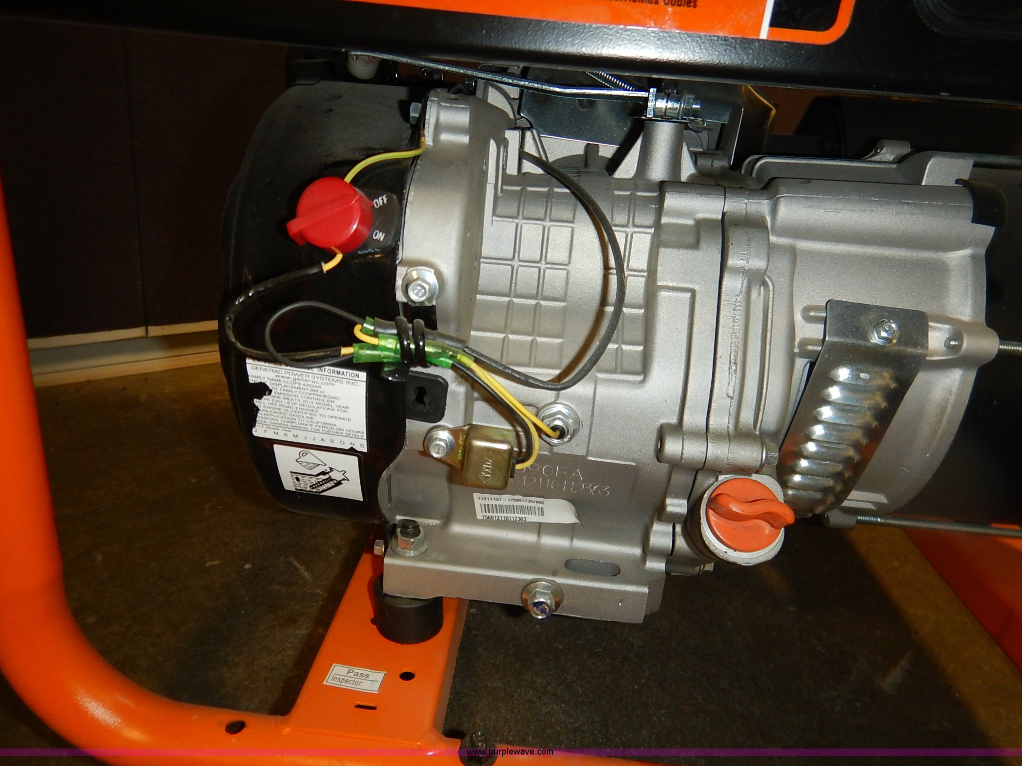 Purple Wave is selling a used Generator Set in Kansas. This item is a Generac GD5500 generator with the following: 19 hours on meter, 5,500 running watts, 6,875 starting watts, Recoil starter missing, Unknown operating condition, Serial T56012110112363