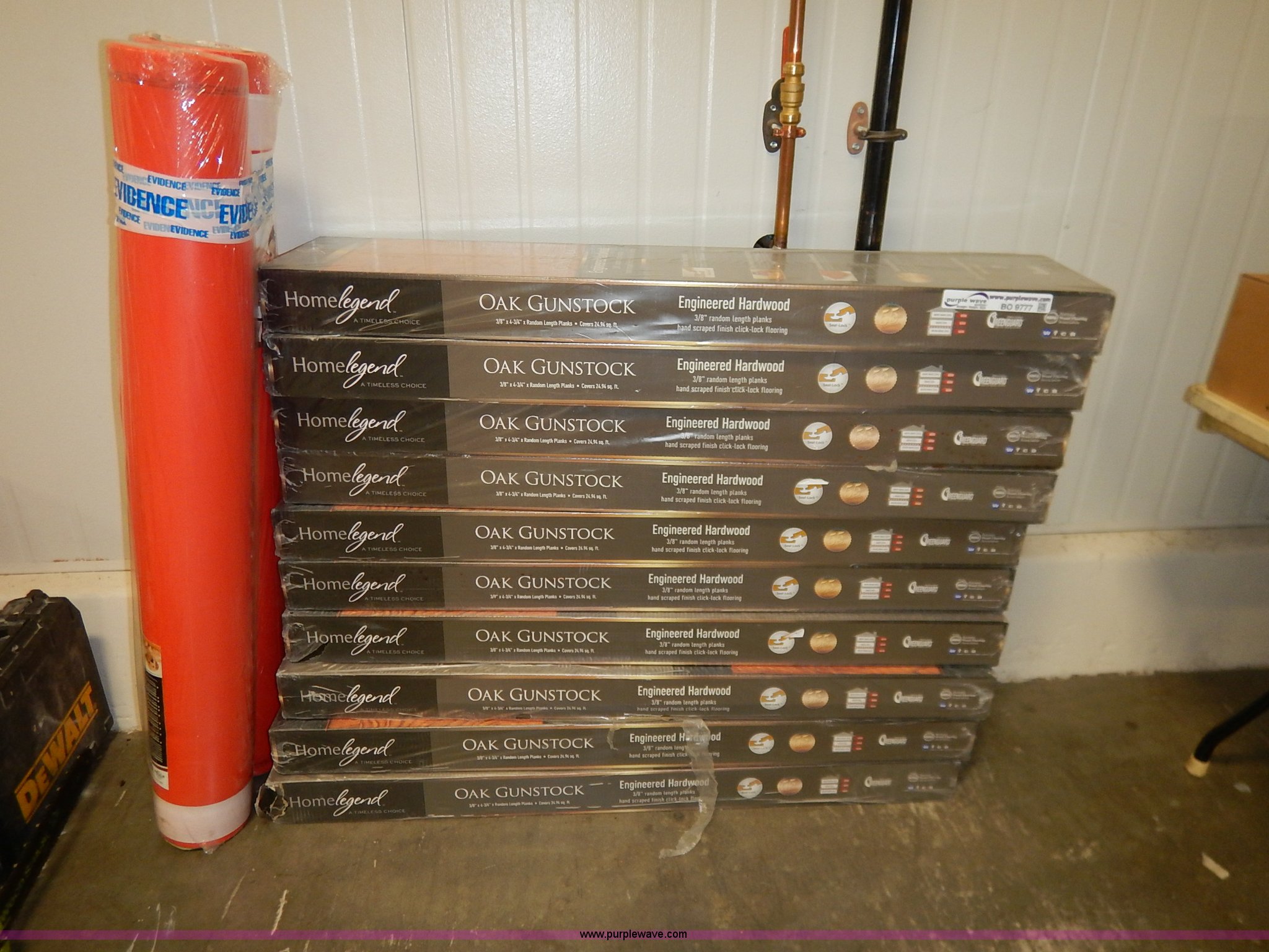 Purple Wave is selling a used Building Materials in Kansas. This item is a Assorted flooring supplies with the following: (10) boxes of home legend oak gunstock laminate floor panels, (2) rolls of underlayment