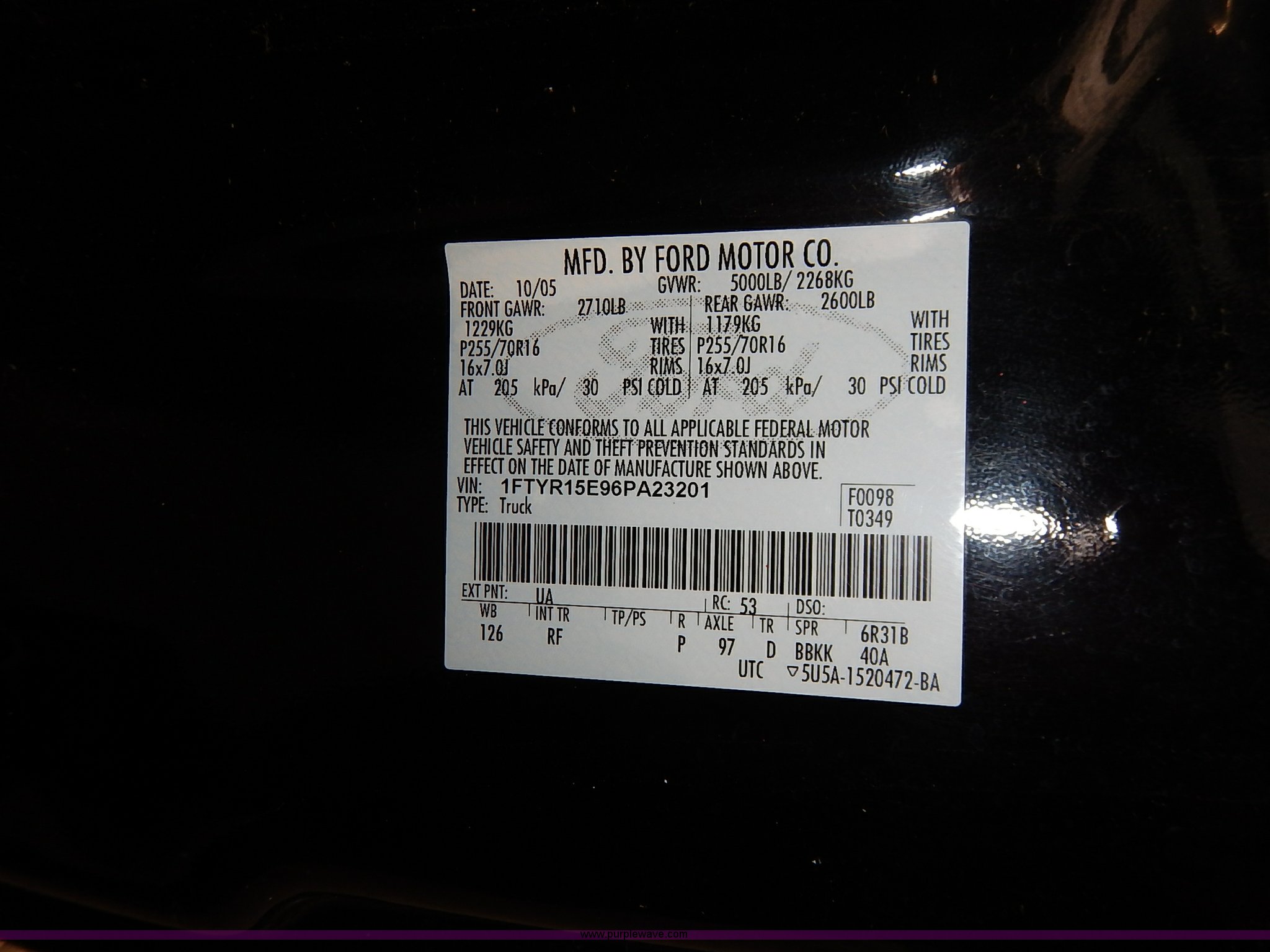 2006 Ford Ranger SuperCab pickup truck. 81,173 miles on odometer, 4.0L V6 SOHC 12V gas engine, Automatic transmission, AC and heat, Tilt, AM/FM/CD/cassette, Manual windows and locks, Window vent visors, Ford running boards, Tow hooks, Fog lights, Toolbox, Ball hitch, 285/75R16 tires, Chipped windshield, Dead battery. 1FTYR15E96PA23201. 825 Levee Dr.. Manhattan, KS 66502