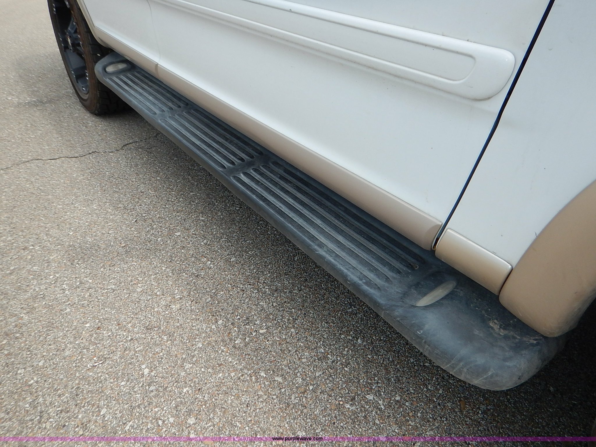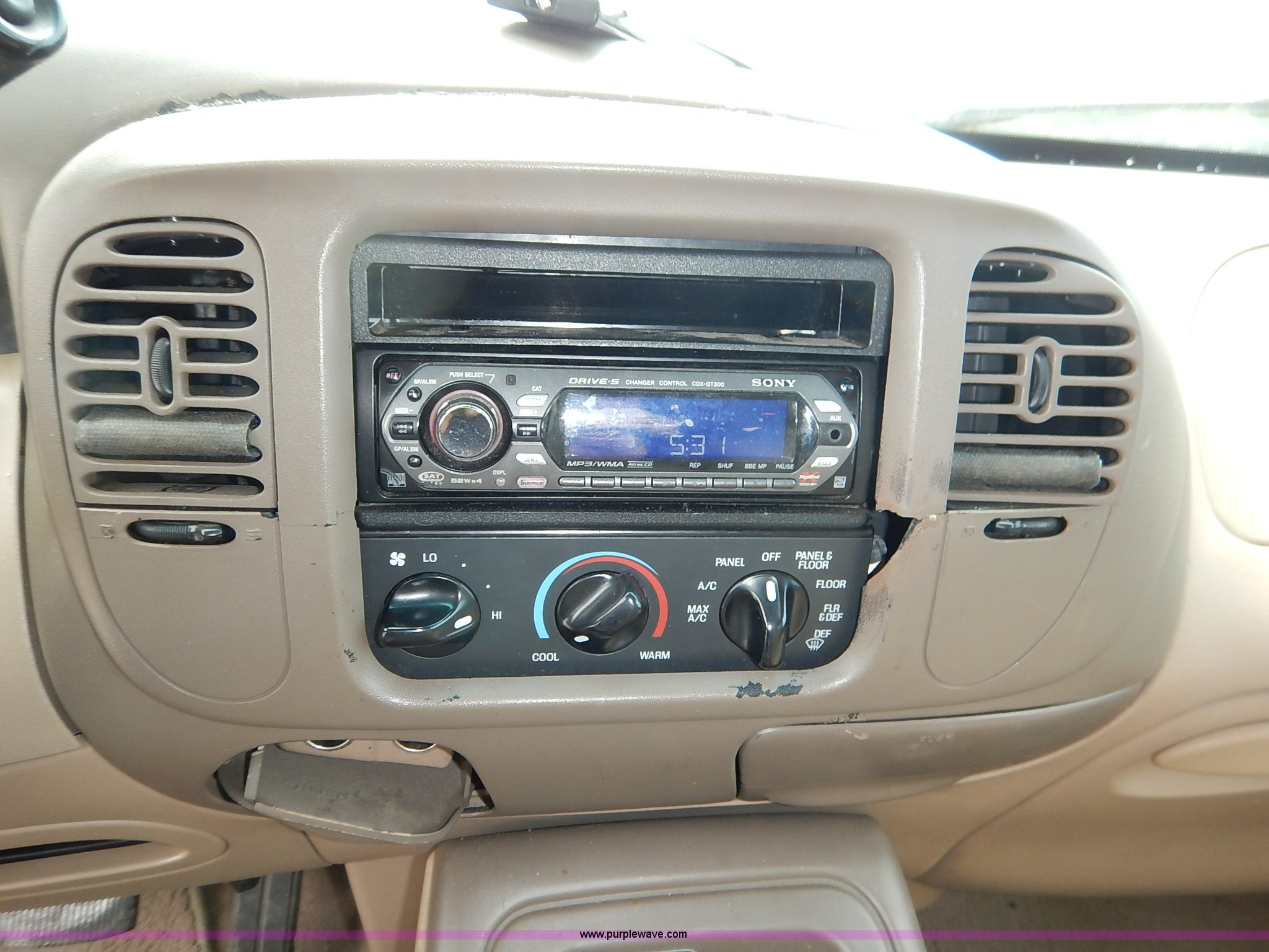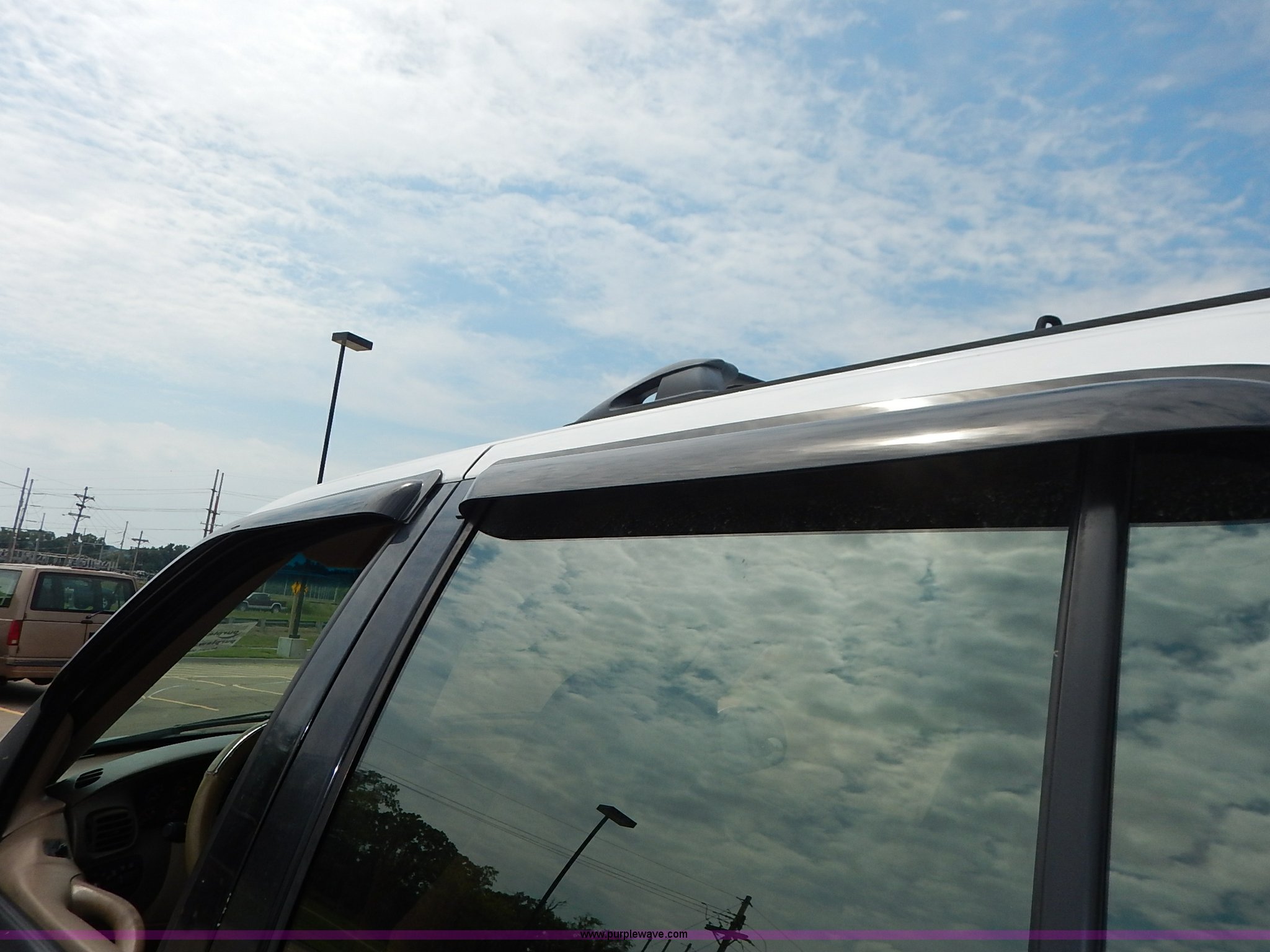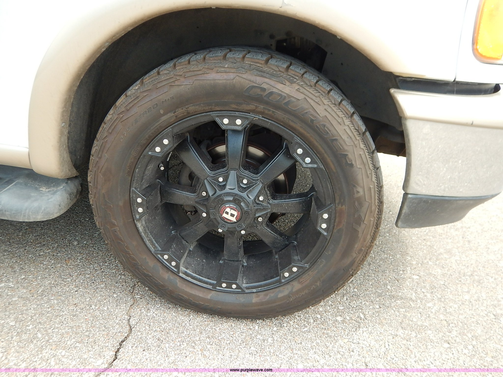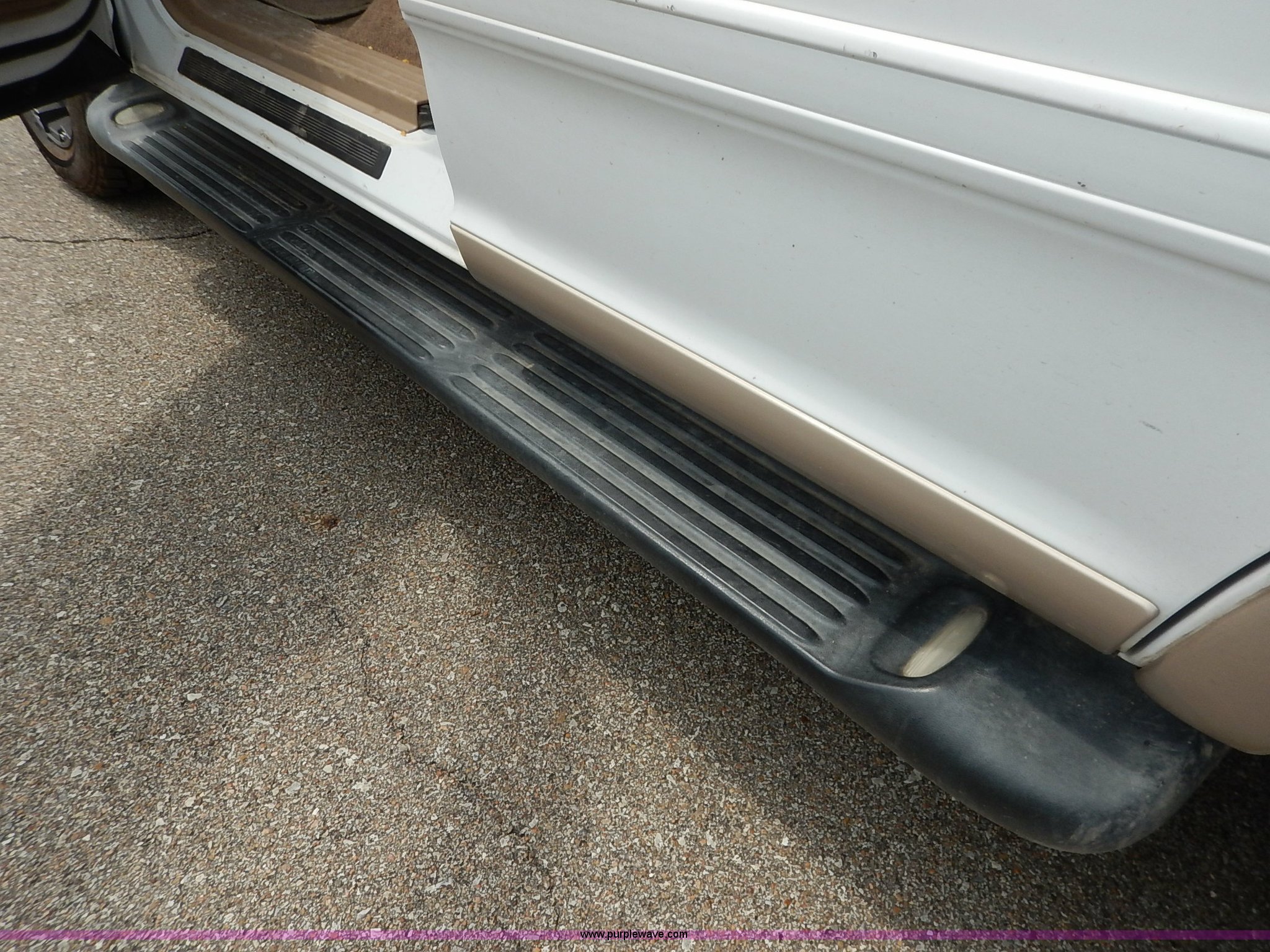 Purple Wave is selling a used Passenger Vehicle in Kansas. This item is a 1997 Ford Expedition Eddie Bauer SUV with the following: 140,914 miles on odometer, Non-operational odometer, 5.4L V8 SOHC 16V gas engine, Automatic transmission, AC and heat, Non-operational AC, Tilt, Cruise, AM/FM/CD, Power windows, locks, mirrors, and seats, Leather interior, Speaker box and amp, Rosen entertainment screen, Window vent visors, Luggage rack, Running boards, Hood decals, Three way ball hitch, No keys, Receiver hitch, Trailer wiring, 215/55R20 tires, Interior/exterior cosmetic damage, Check engine light on, Cracked windshield, Paint peeling, Dents, Scratches