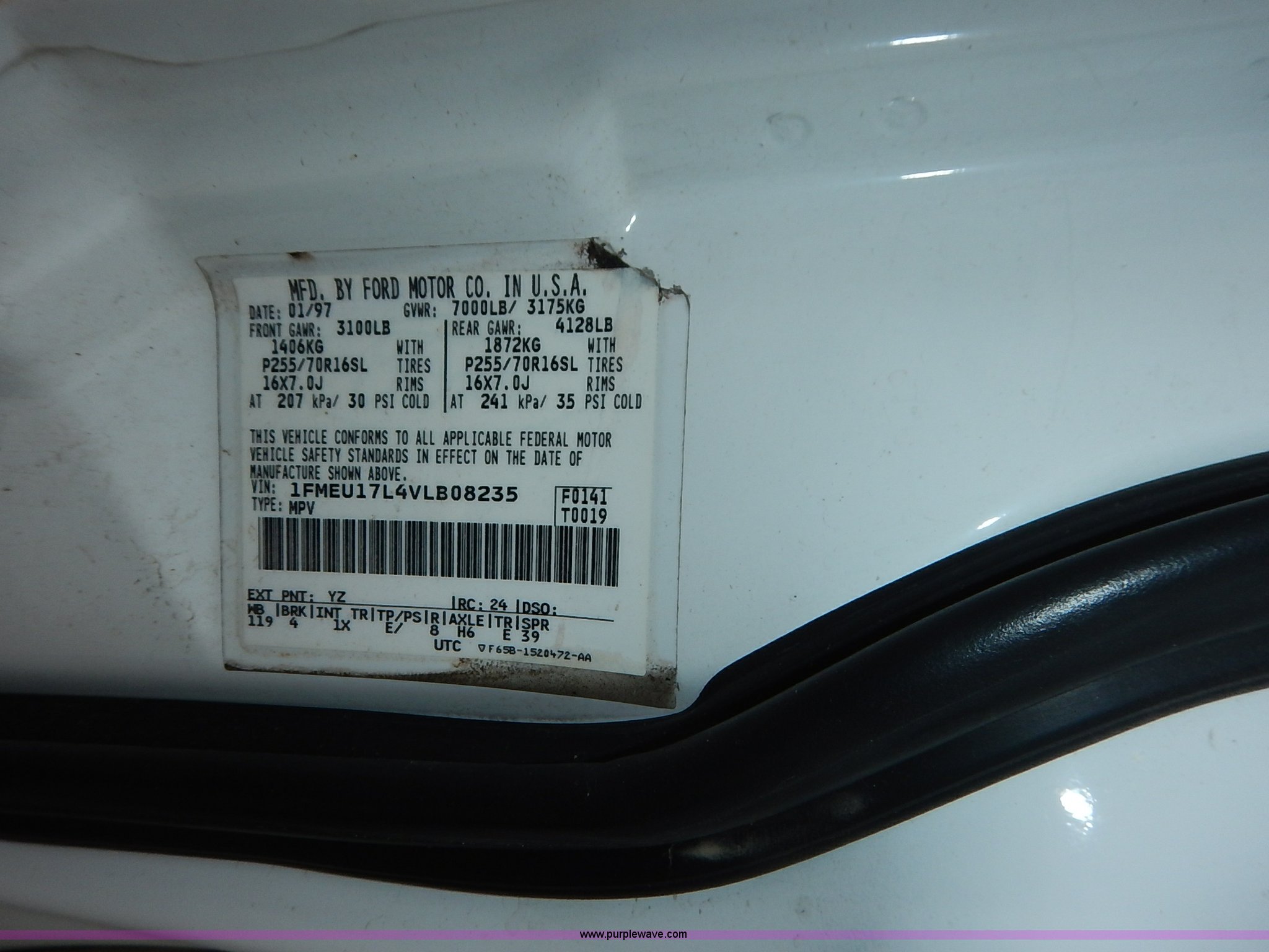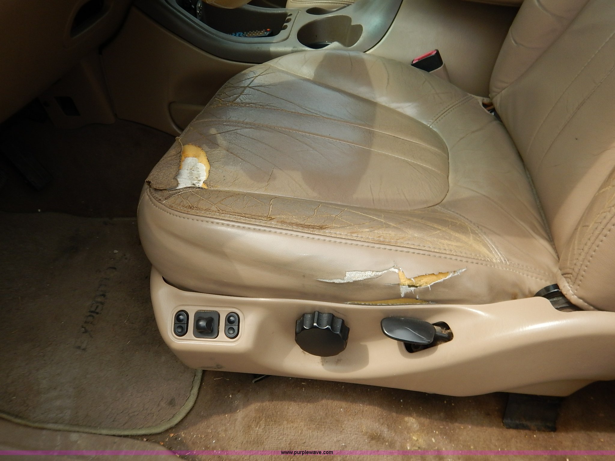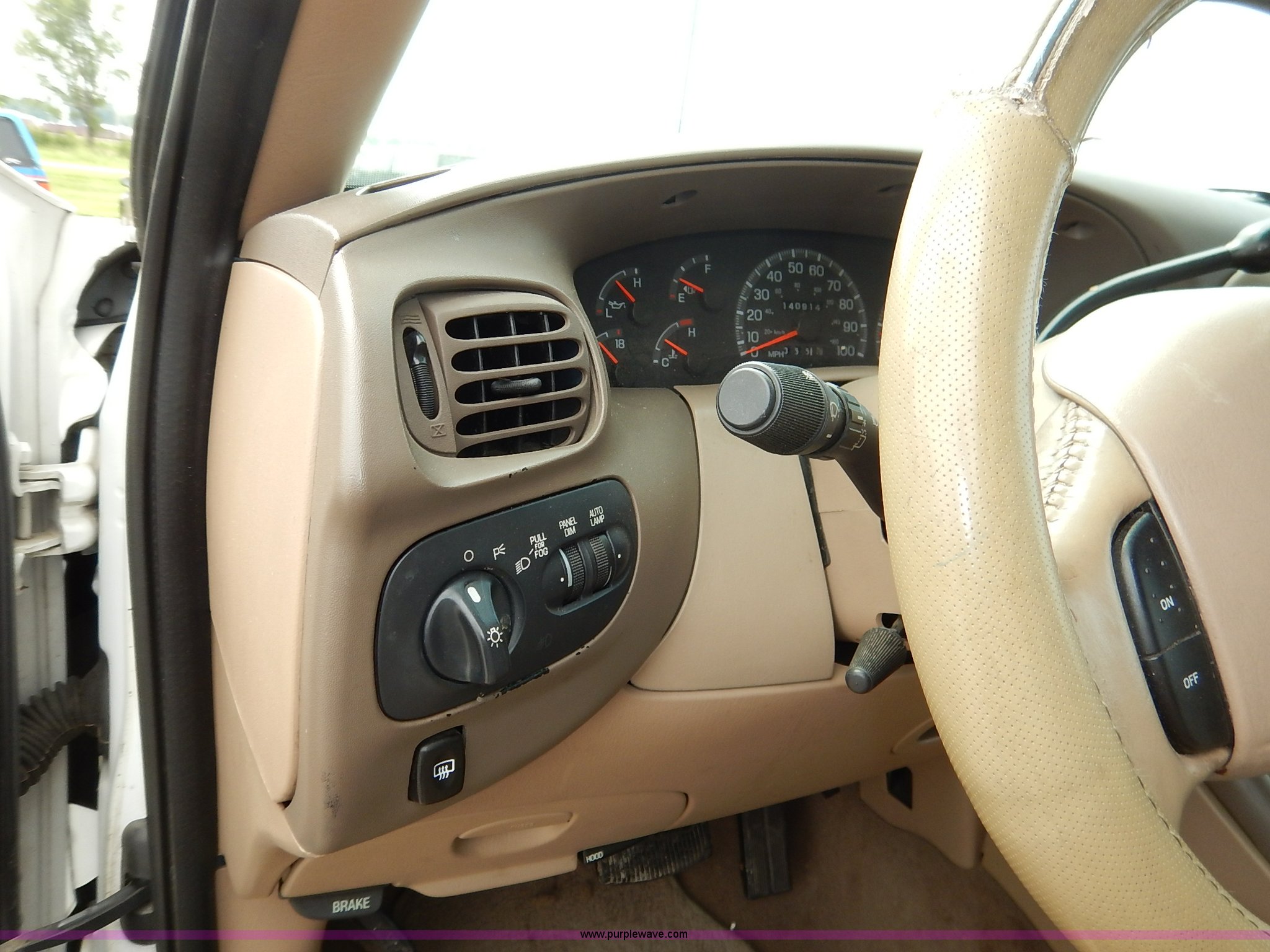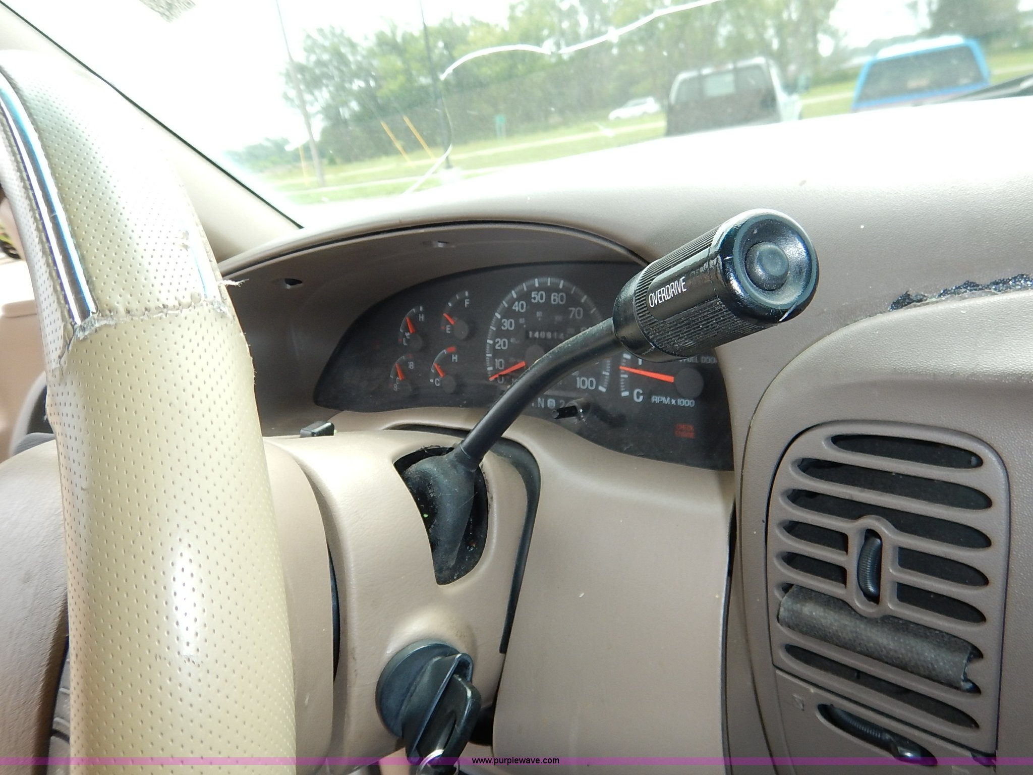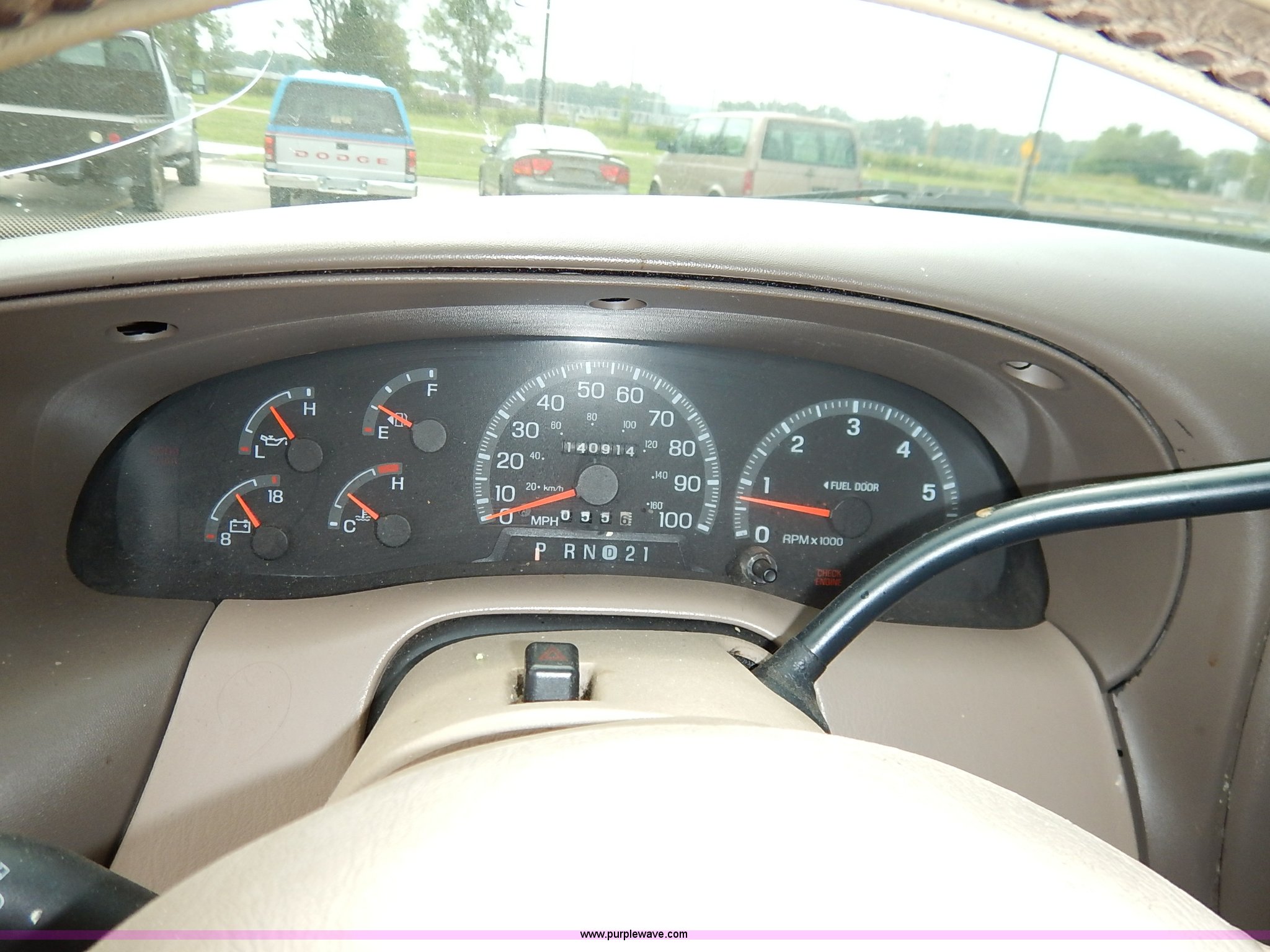 Purple Wave is selling a used Passenger Vehicle in Kansas. This item is a 1997 Ford Expedition Eddie Bauer SUV with the following: 140,914 miles on odometer, Non-operational odometer, 5.4L V8 SOHC 16V gas engine, Automatic transmission, AC and heat, Non-operational AC, Tilt, Cruise, AM/FM/CD, Power windows, locks, mirrors, and seats, Leather interior, Speaker box and amp, Rosen entertainment screen, Window vent visors, Luggage rack, Running boards, Hood decals, Three way ball hitch, No keys, Receiver hitch, Trailer wiring, 215/55R20 tires, Interior/exterior cosmetic damage, Check engine light on, Cracked windshield, Paint peeling, Dents, Scratches