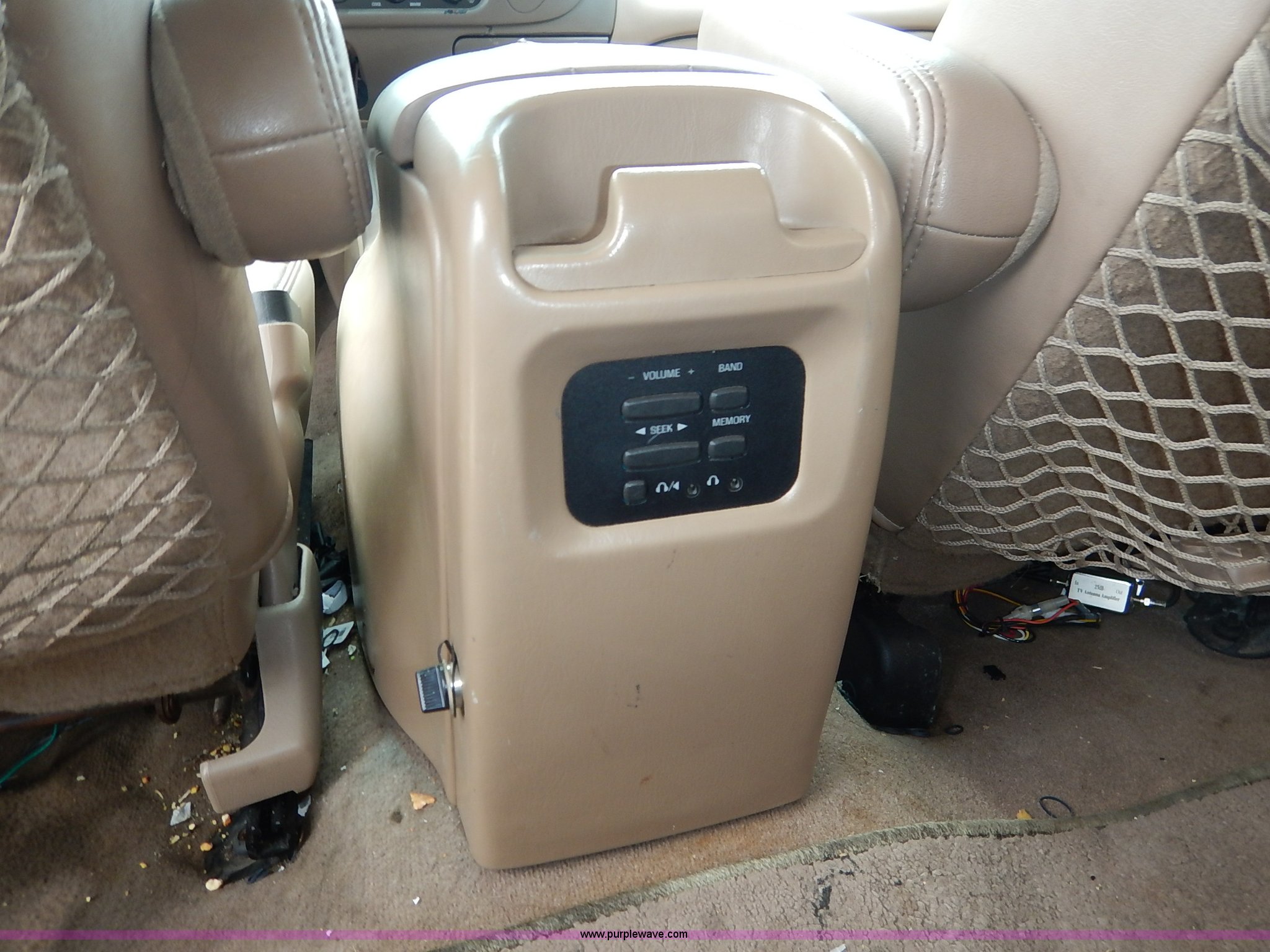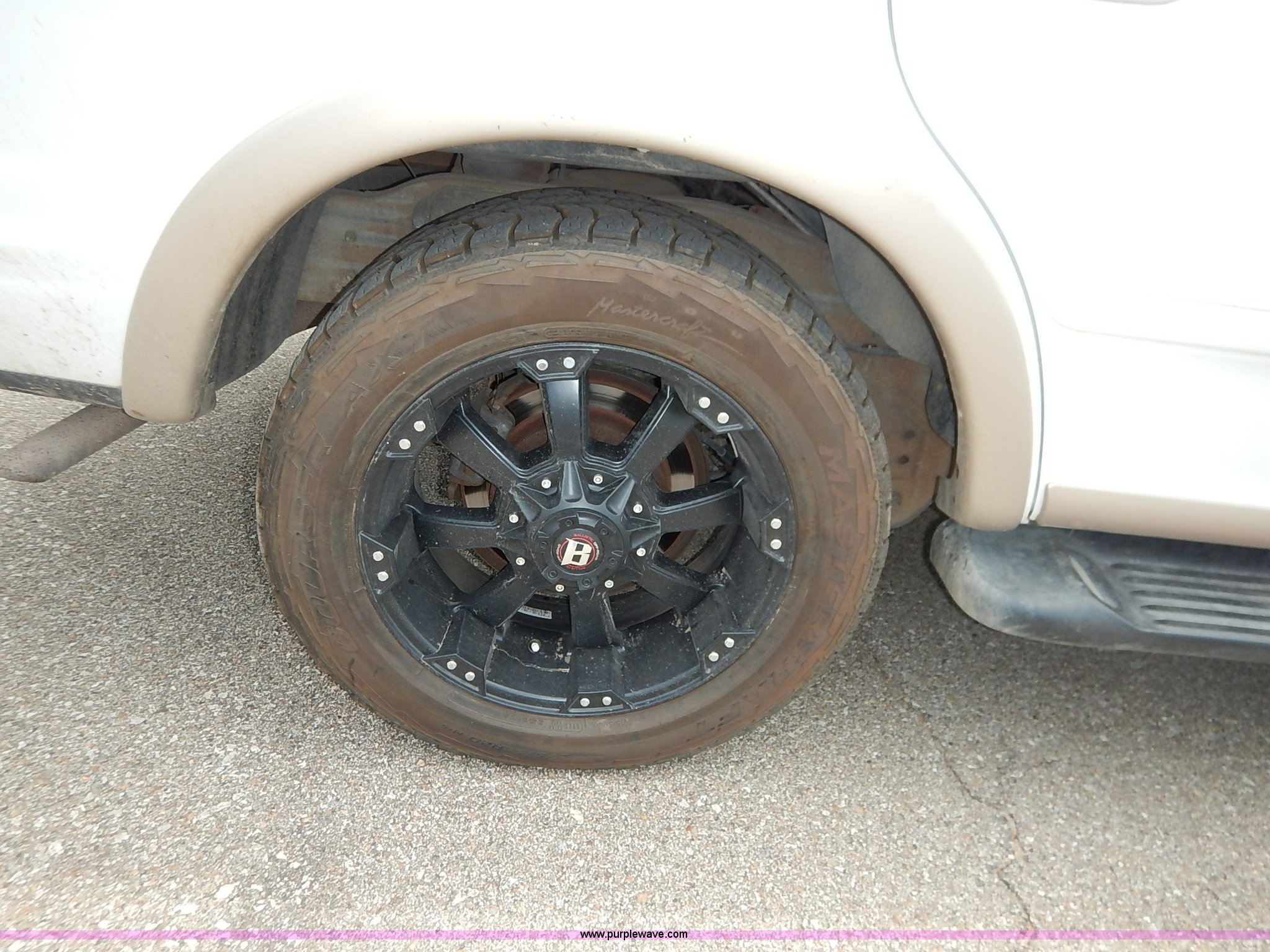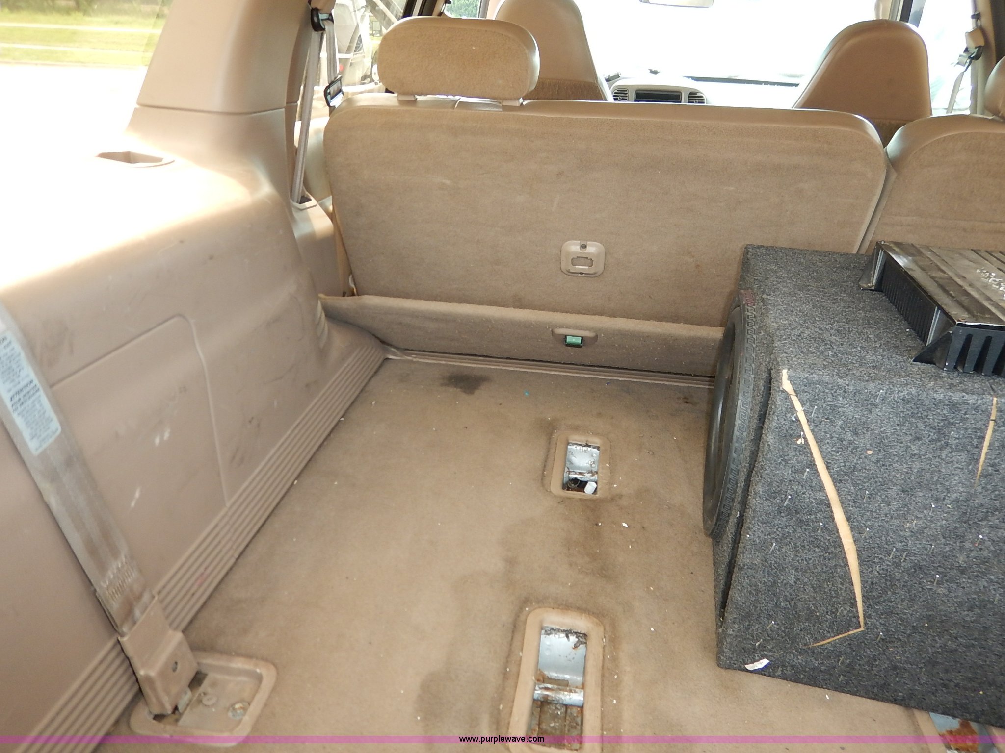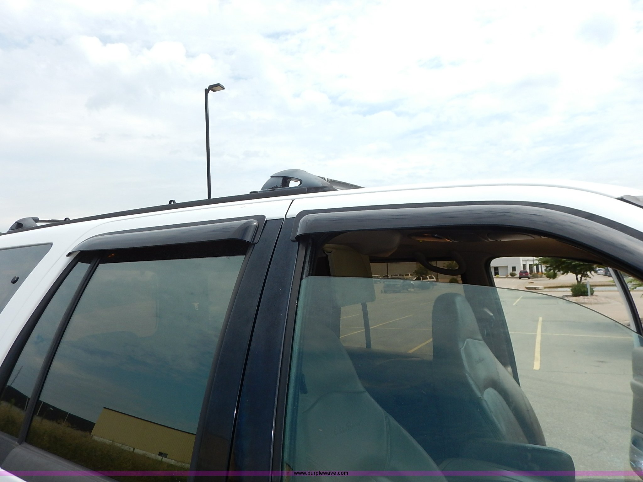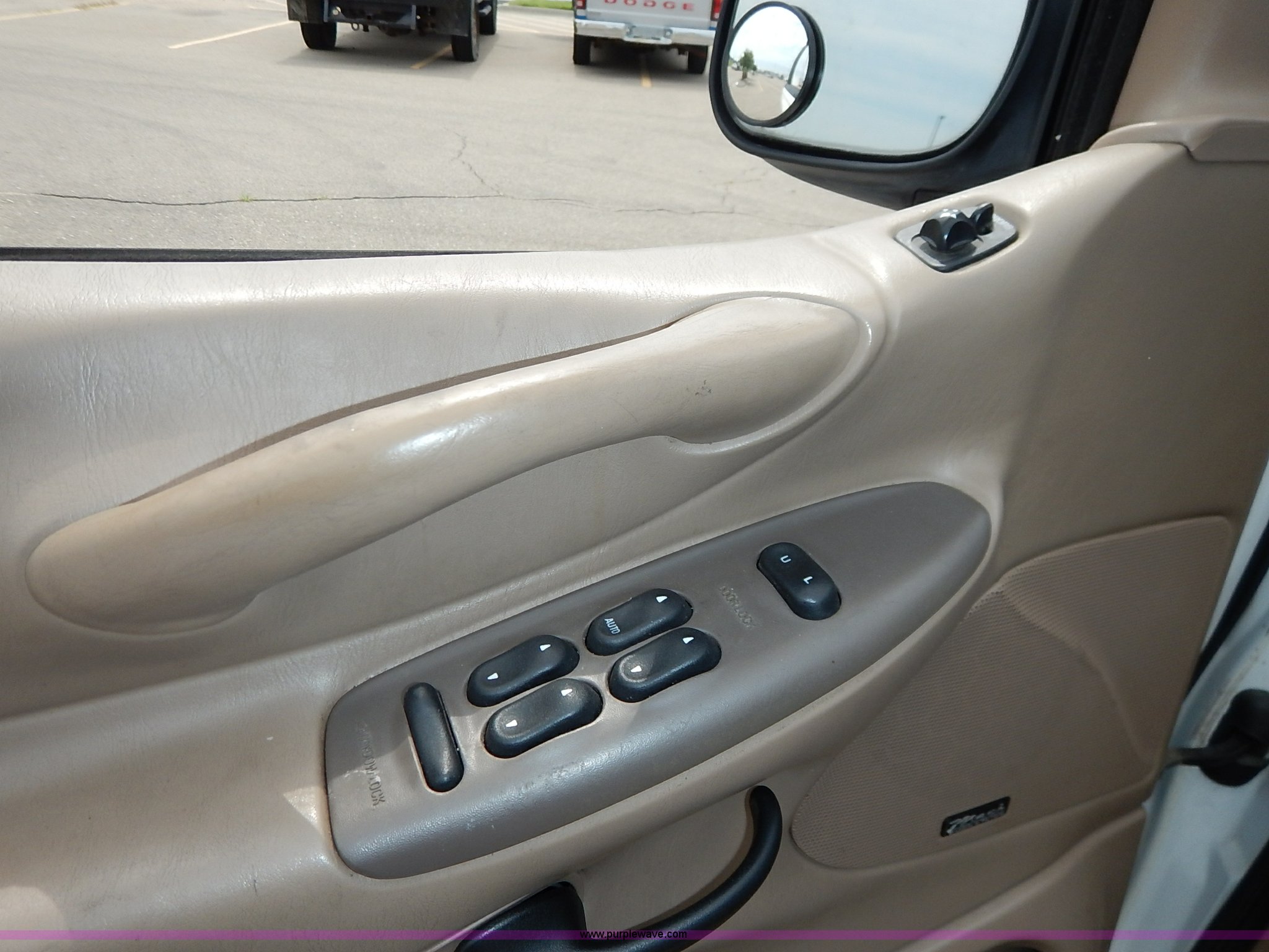 Purple Wave is selling a used Passenger Vehicle in Kansas. This item is a 1997 Ford Expedition Eddie Bauer SUV with the following: 140,914 miles on odometer, Non-operational odometer, 5.4L V8 SOHC 16V gas engine, Automatic transmission, AC and heat, Non-operational AC, Tilt, Cruise, AM/FM/CD, Power windows, locks, mirrors, and seats, Leather interior, Speaker box and amp, Rosen entertainment screen, Window vent visors, Luggage rack, Running boards, Hood decals, Three way ball hitch, No keys, Receiver hitch, Trailer wiring, 215/55R20 tires, Interior/exterior cosmetic damage, Check engine light on, Cracked windshield, Paint peeling, Dents, Scratches