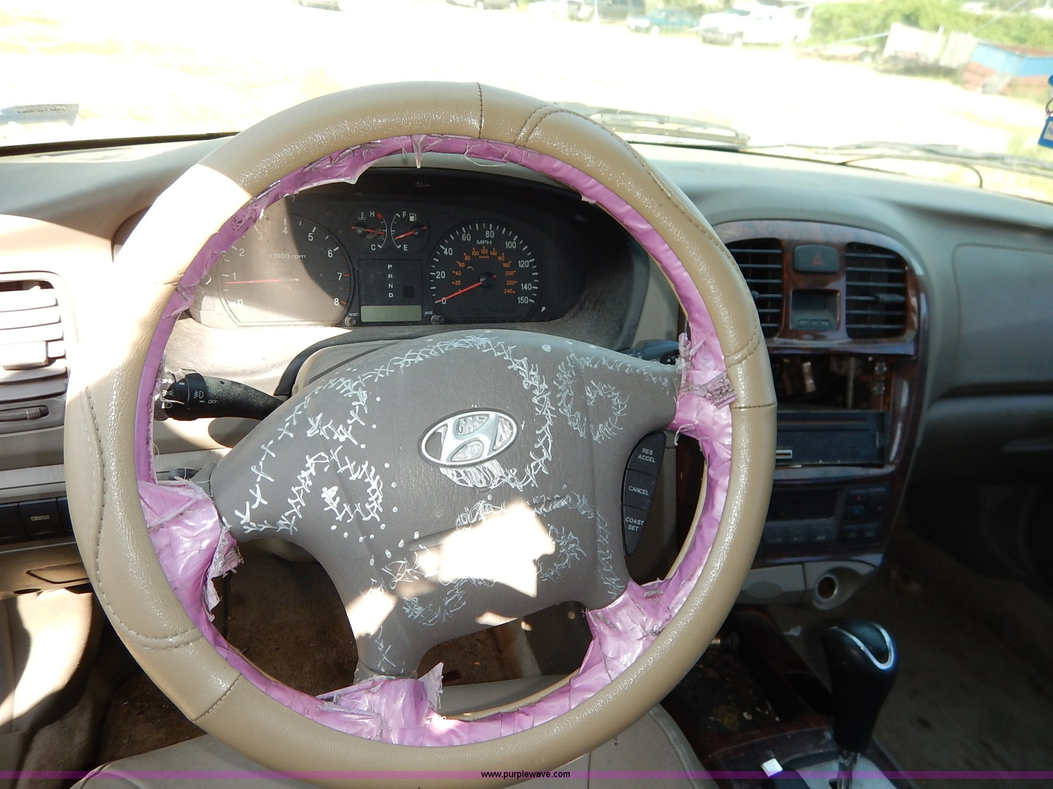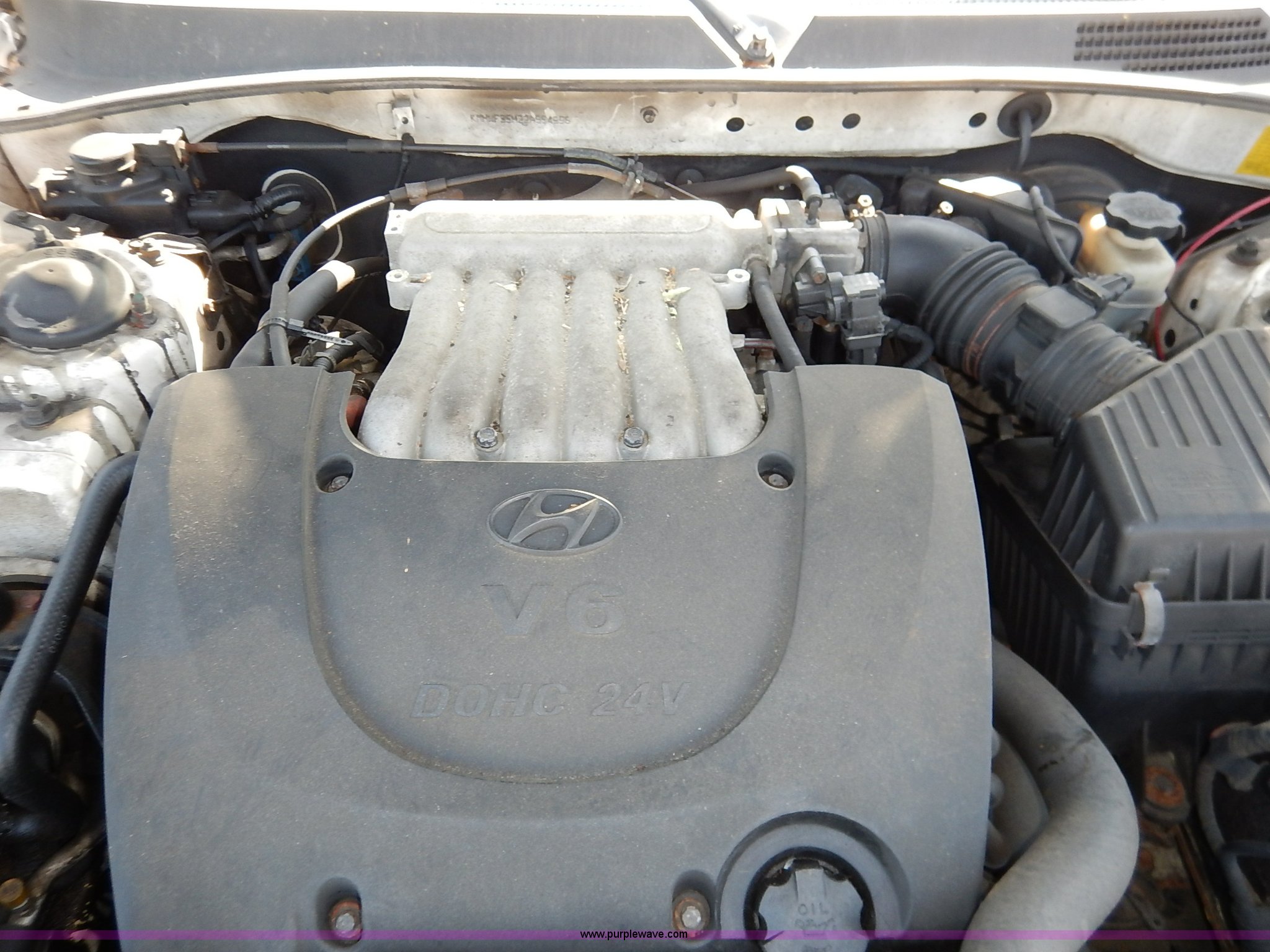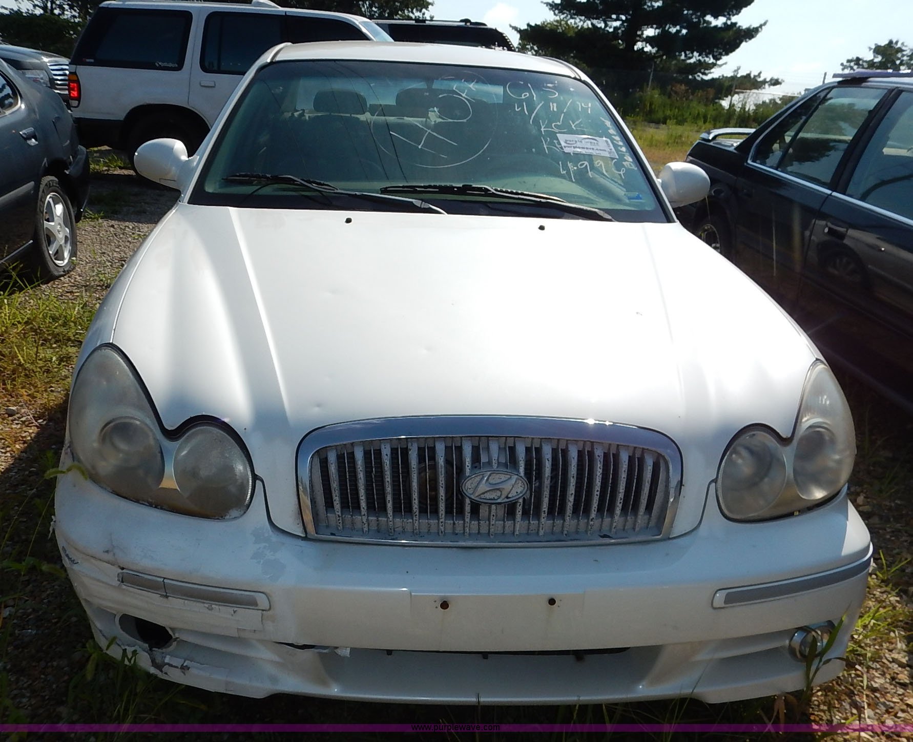 Purple Wave is selling a used Passenger Vehicle in Kansas. This item is a 2002 Hyundai Sonata LX with the following: 194,532 miles on odometer, 2.7L V6 DOHC 24V gas engine, Automatic transmission, AC and heat, Tilt, AM/FM, Power windows, locks, mirrors, and seat, Fog lights, 215/60R16 tires, Interior/exterior cosmetic damage, Cracked windshield, Dead battery, Front and rear driver side windows rolled down, Water damage, Dents, Scratches, Front bumper damage, Hail damage, Stereo face plate missing
