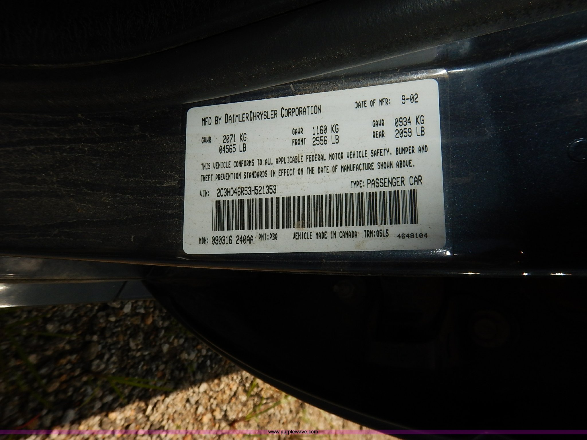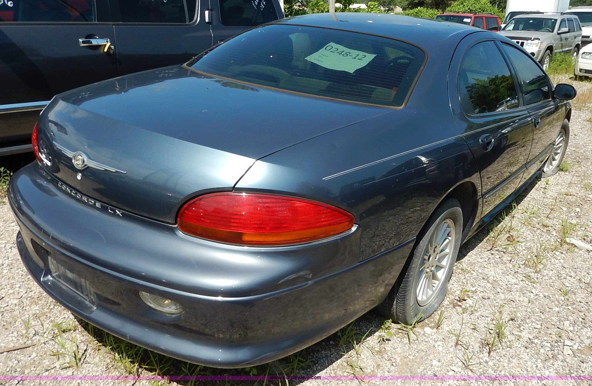 Purple Wave is selling a used Passenger Vehicle in Kansas. This item is a 2003 Chrysler Concorde LX with the following: 144,003 miles on odometer, 2.7L V6 DOHC 24V gas engine, Automatic transmission, AC and heat, Tilt, Cruise, AM/FM/CD, Power windows, locks, mirrors, and seat, Cloth interior, Rear headrest monitors, 225/60R16 tires, Flat, Dead battery, Unknown operating condition