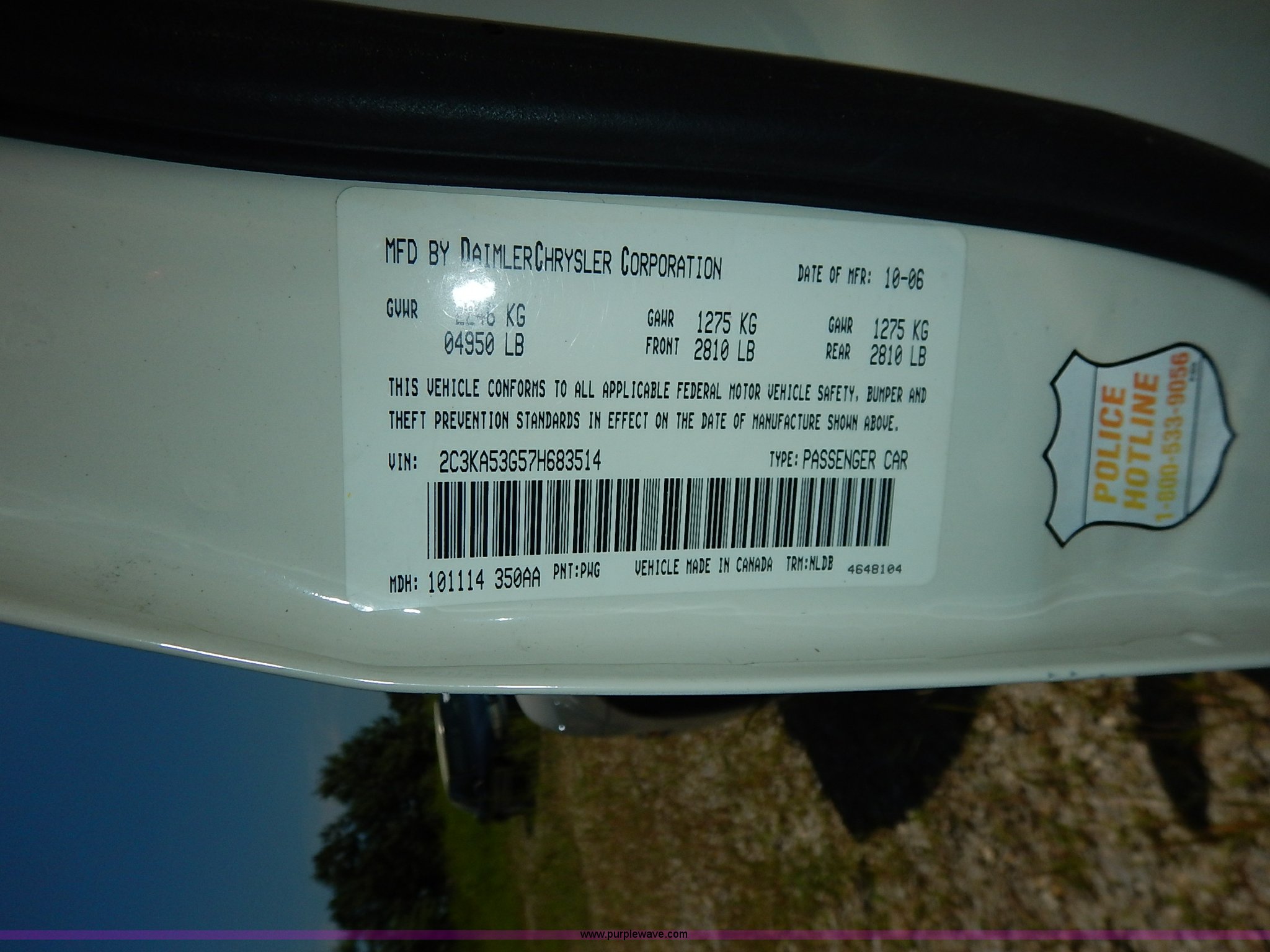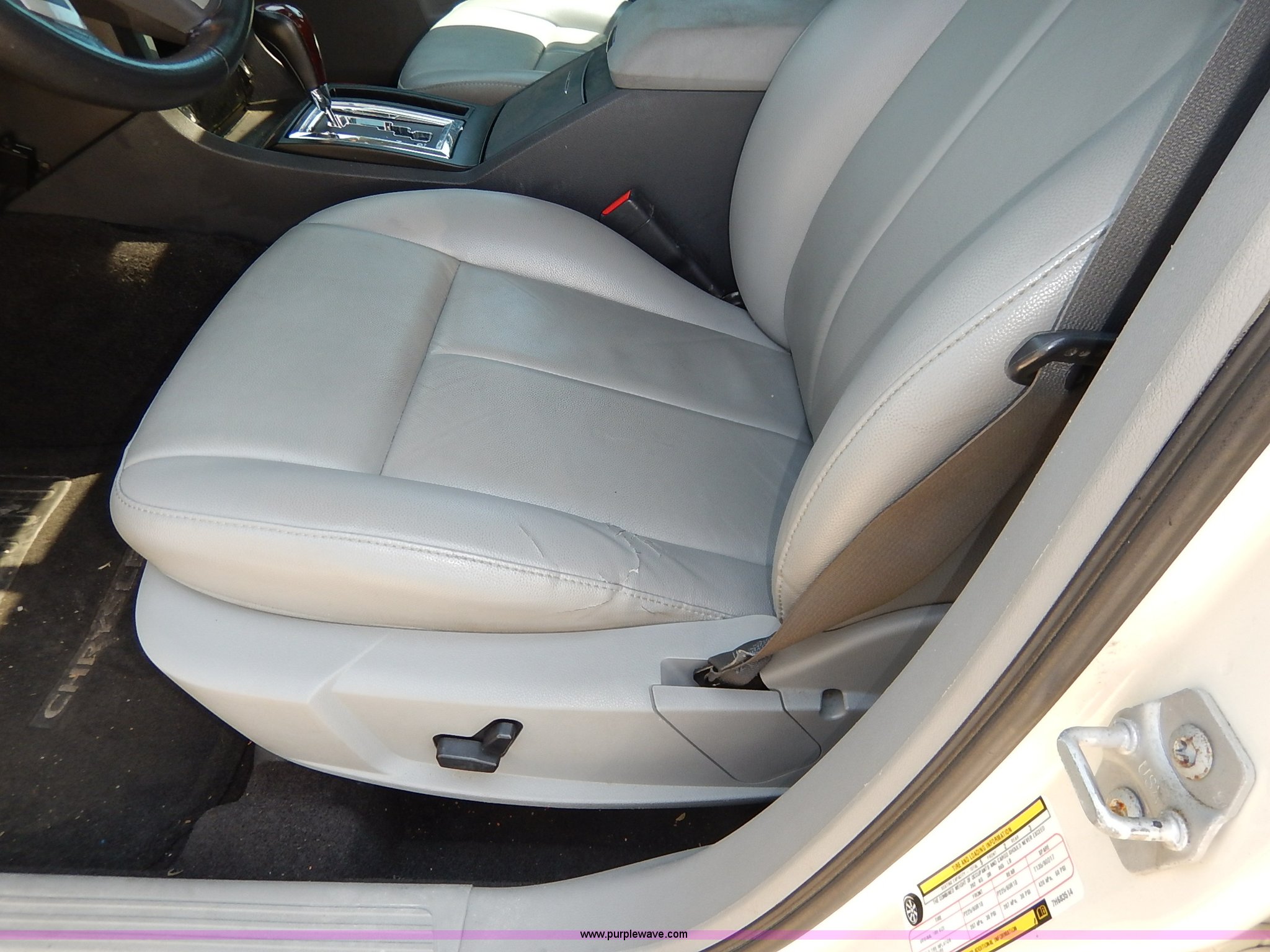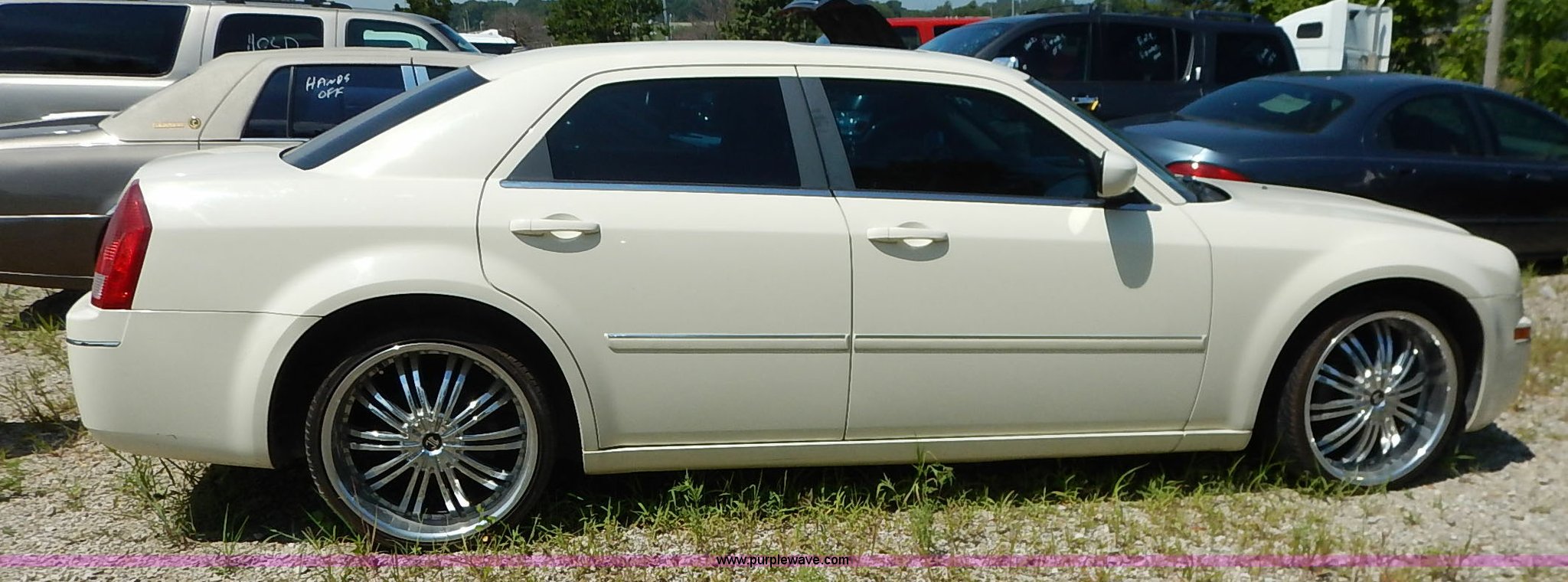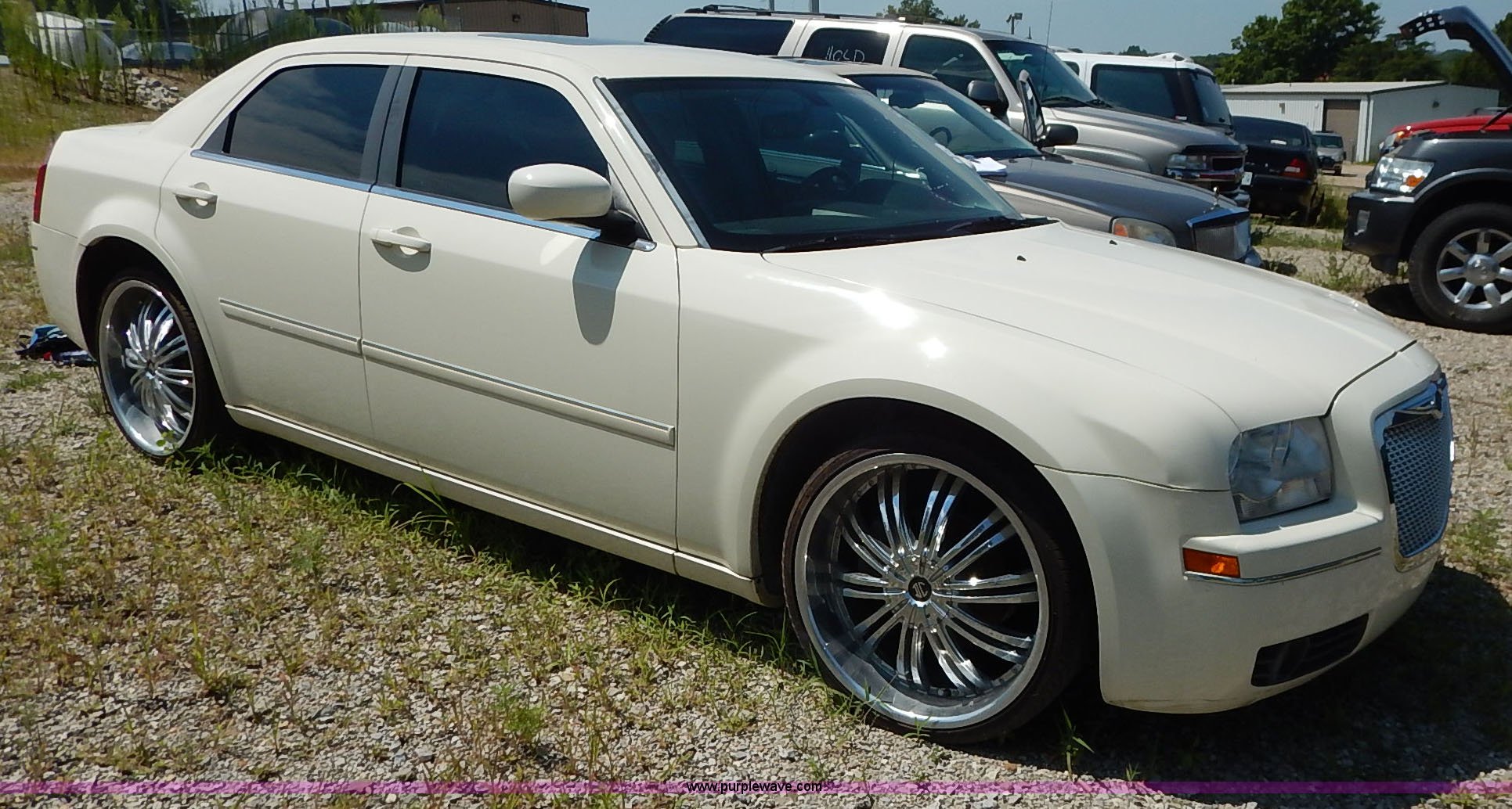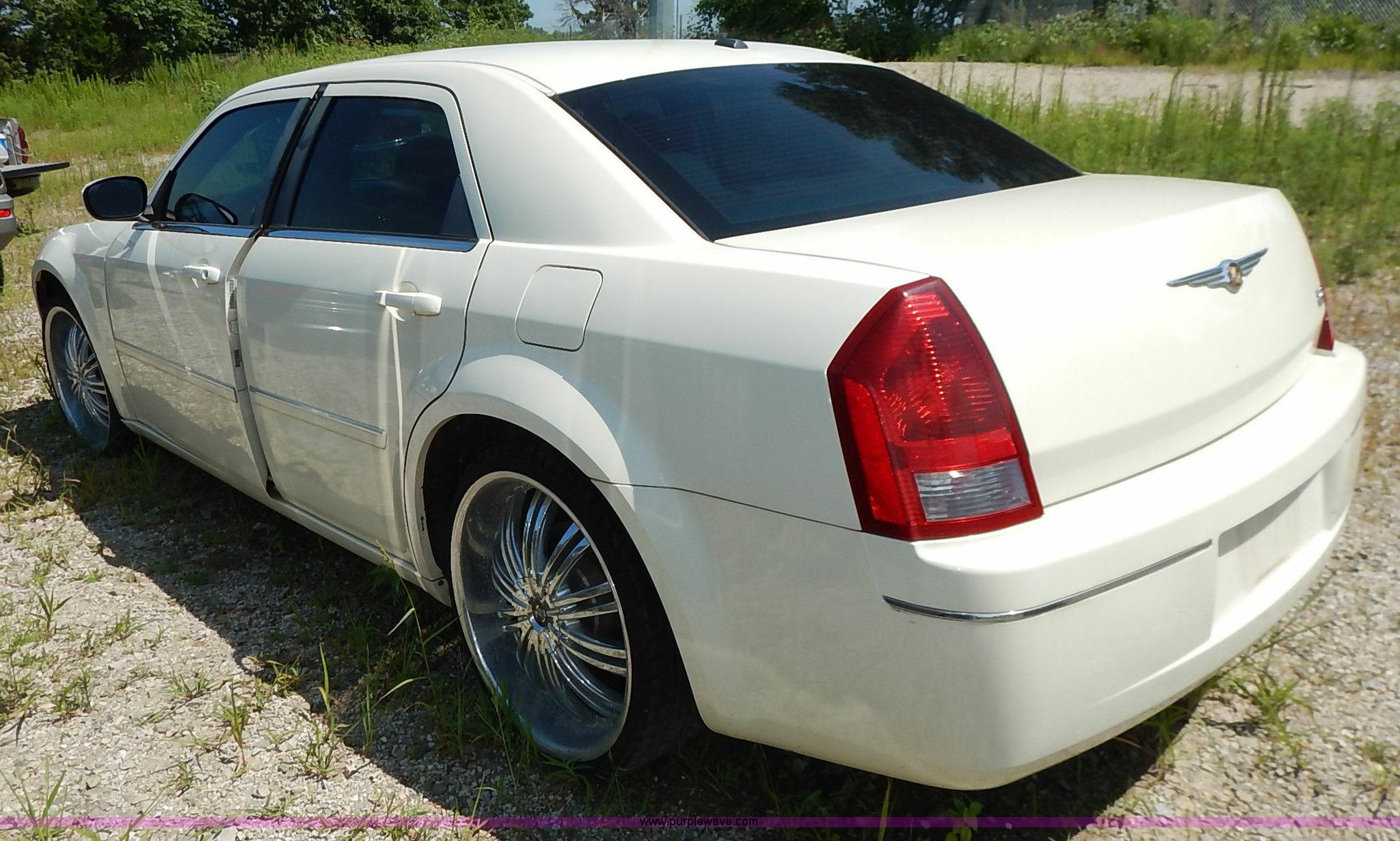 Purple Wave is selling a used Passenger Vehicle in Kansas. This item is a 2007 Chrysler 300 with the following: 101,594 miles on odometer, 3.5L V6 DOHC 24V gas engine, Automatic transmission, AC and heat, Tilt, Cruise, AM/FM/CD, Power windows, locks, mirrors, and seats, Heated seats, Leather interior, Moonroof, Audio steering wheel controls, Custom wheels, 235/30ZR22 tires, Recently replaced battery, Scratches