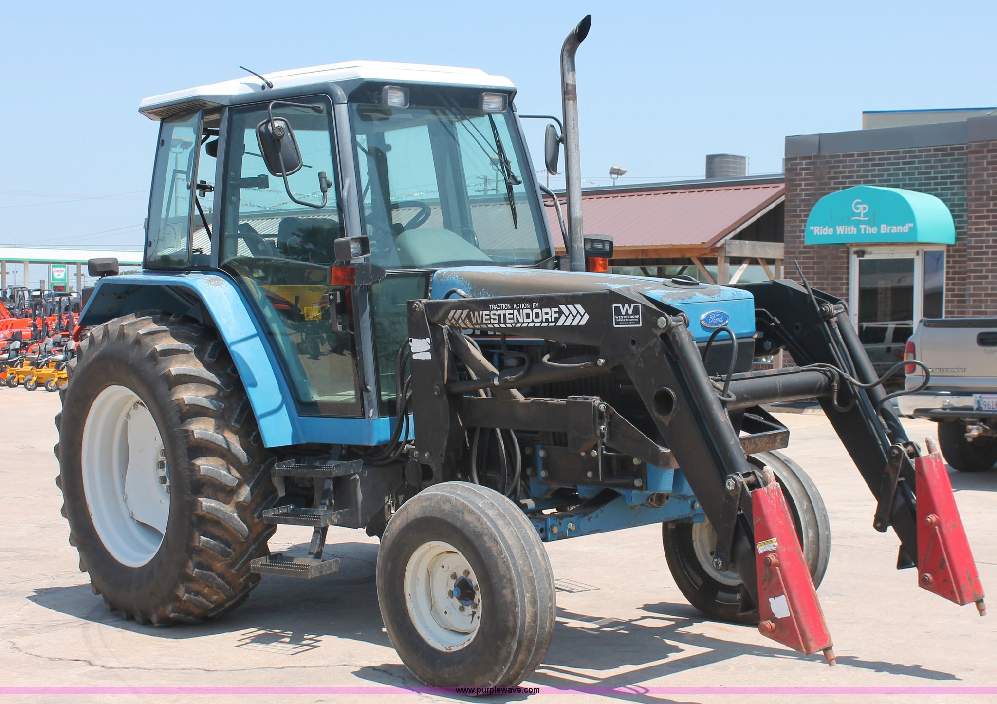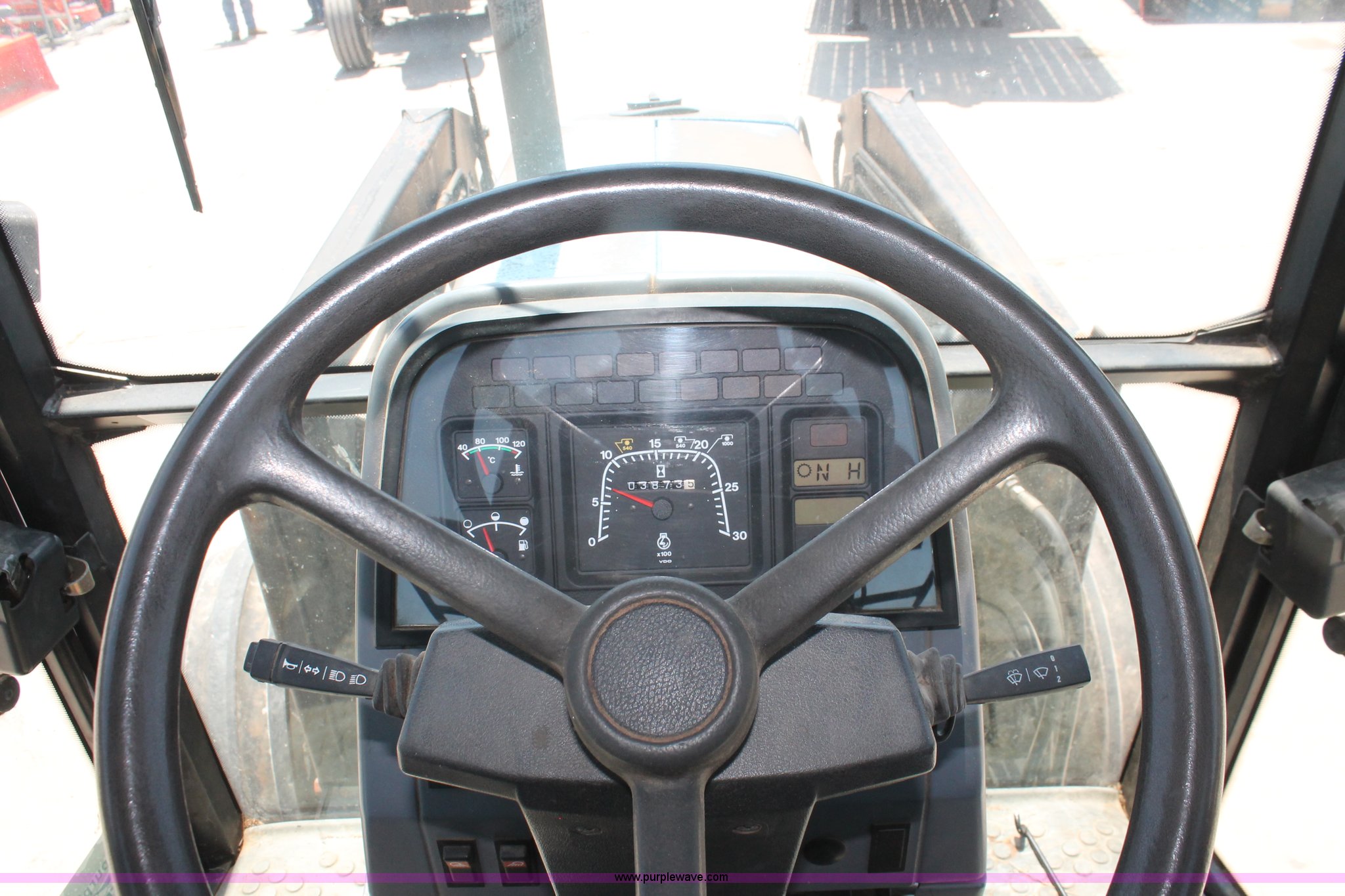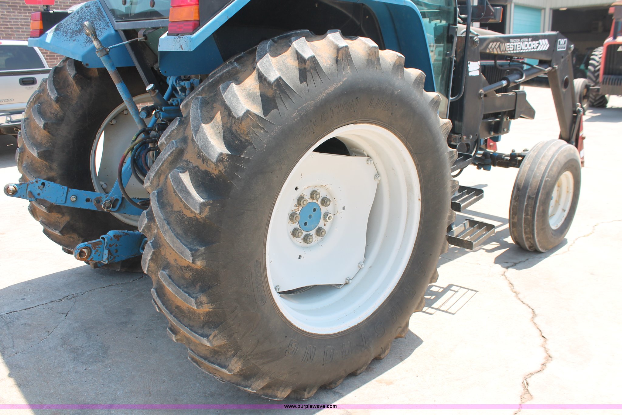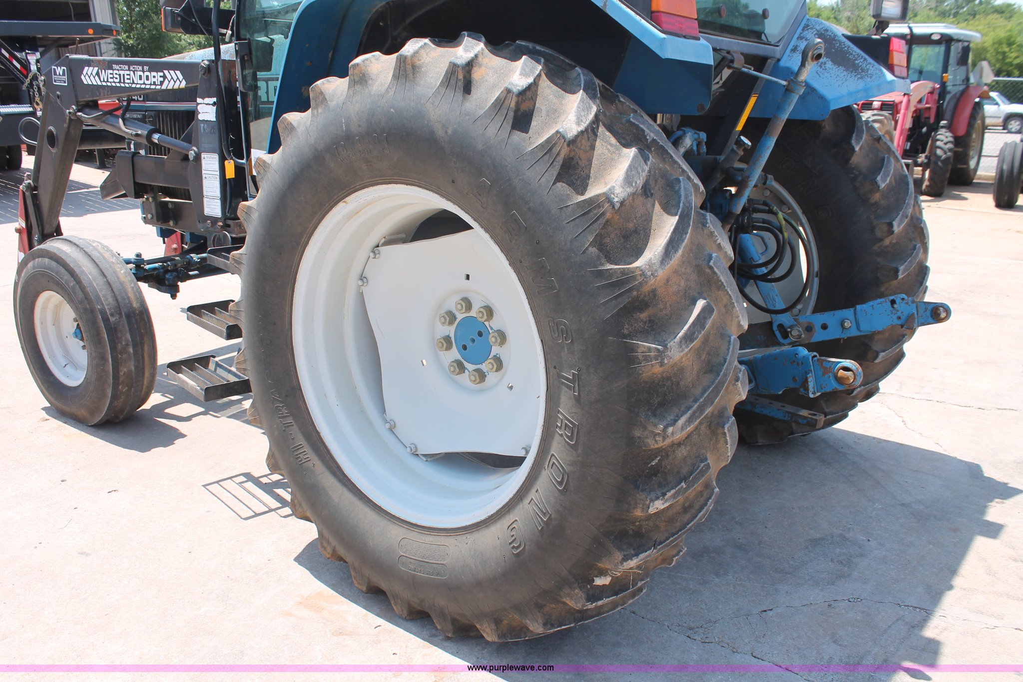 Purple Wave is selling a used Tractor in Oklahoma. This item is a 1994 Ford 6640 tractor with the following: 3,874 hours on meter, Ford 5.0L four cylinder diesel engine, Electroshift Pulse Command powershift transmission, 16F-16R gears, Differential lock, AC and heat, Non-operational AC, Tilt steering wheel, AM/FM/cassette, Suspension seat, Shades, Westendorf TA-26 loader, Two-lever controls, Three point, Top link, Seven pin outlet, 540/1000 PTO, Draw bar, (2) rear hydraulic remote sets, 93" wheelbase, 10.00-16SL front tires, 18.4-34 rear tires, Serial BD20436