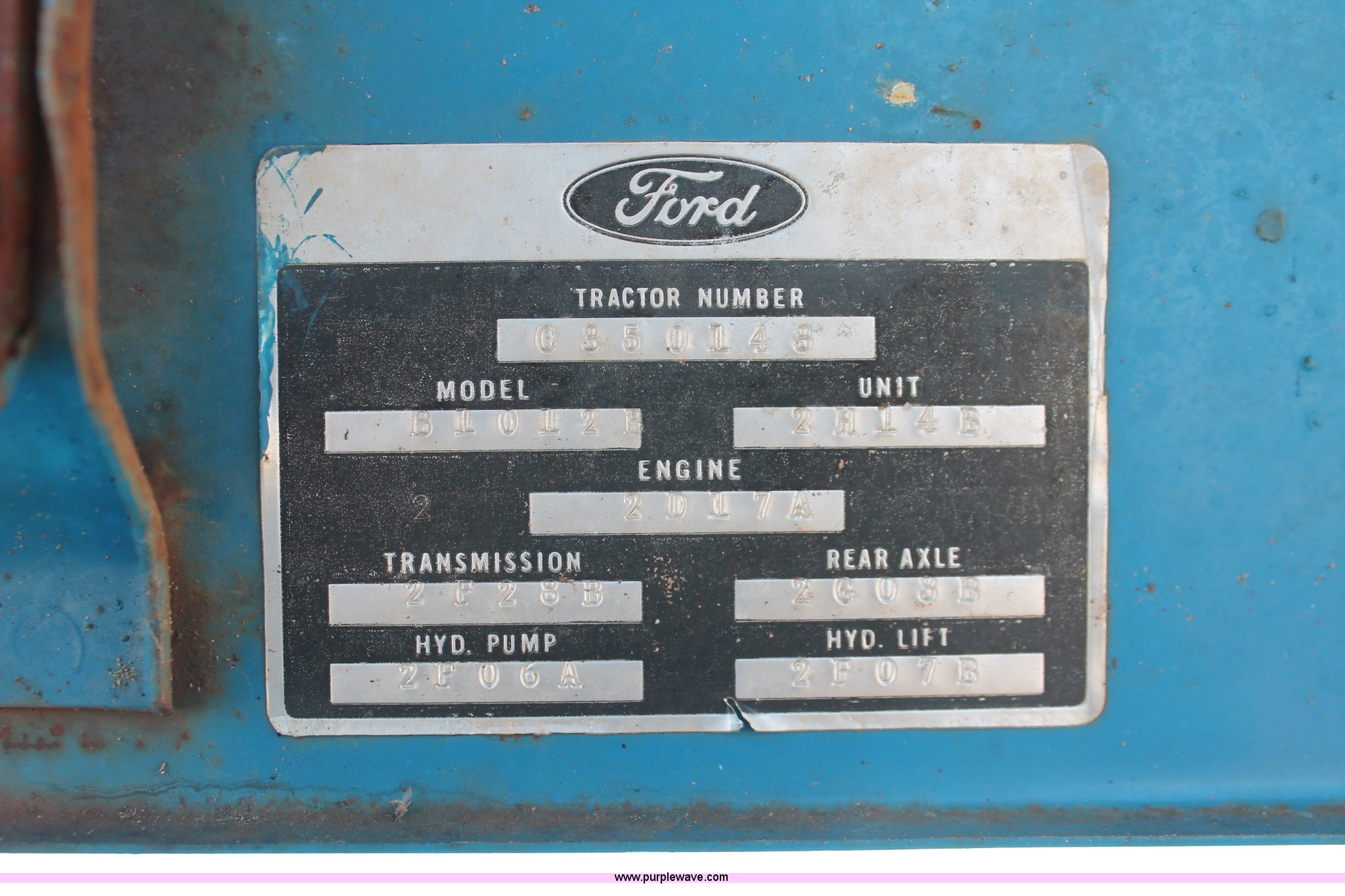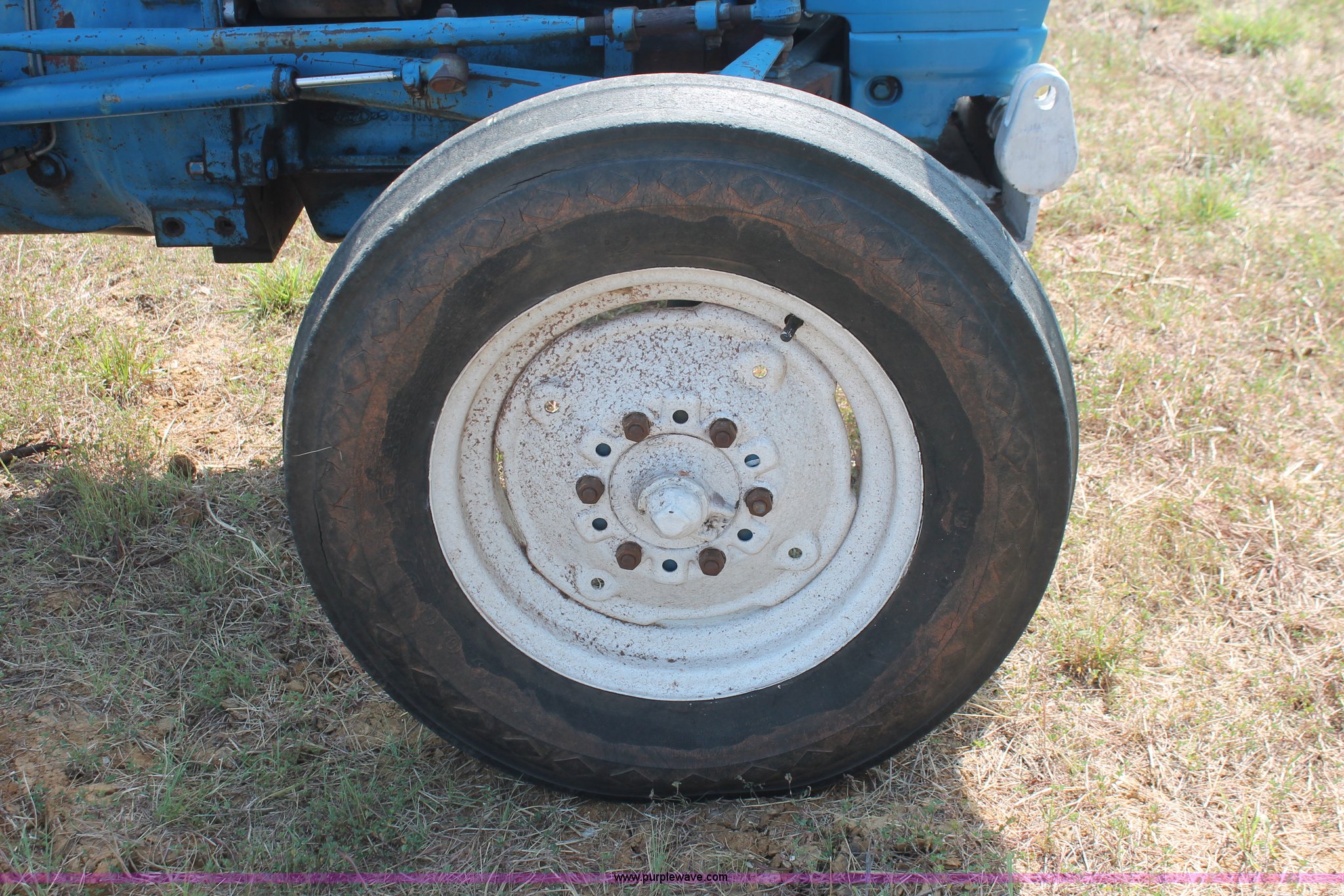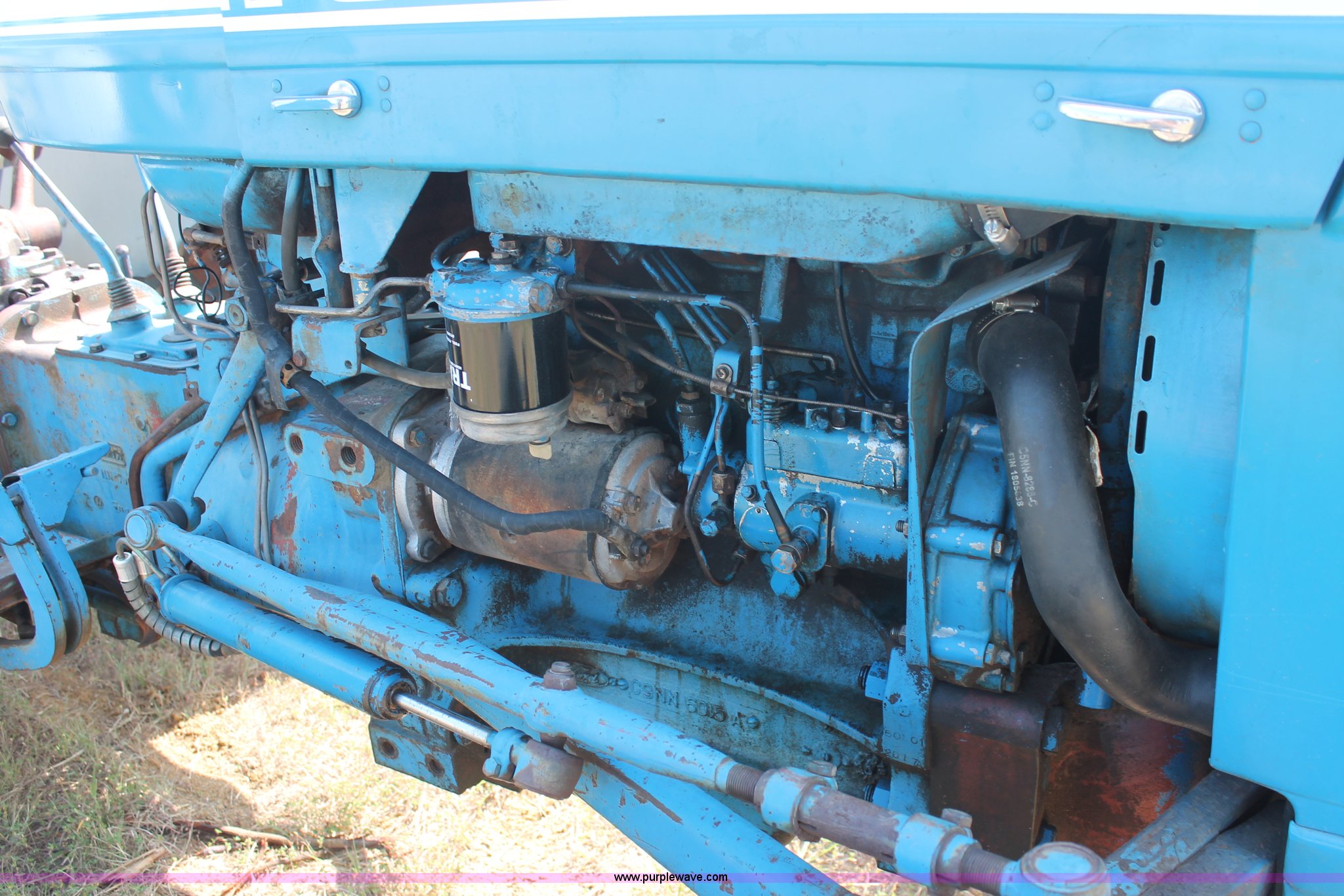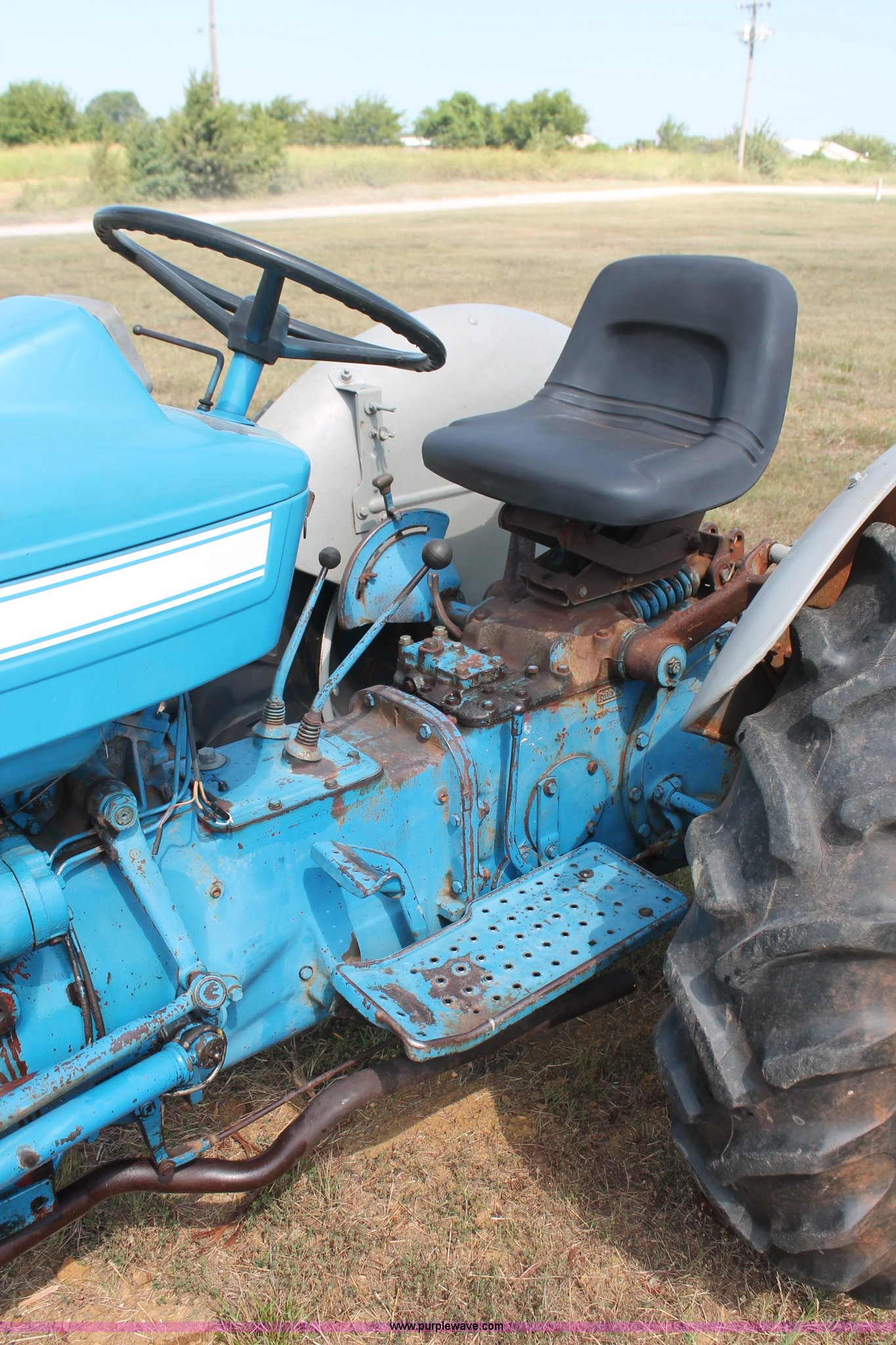 Purple Wave is selling a used Tractor in Oklahoma. This item is a 1972 Ford 2000 tractor with the following: 2,705 hours on meter, Ford 2.6L three cylinder diesel engine, 36 HP, Serial 2D17A, Unsynchronized transmission, 6F-2R gears, Three point, 540 PTO, 76" wheelbase, 6.00-16SL front tires, 12.4-28 rear tires, Serial C350148