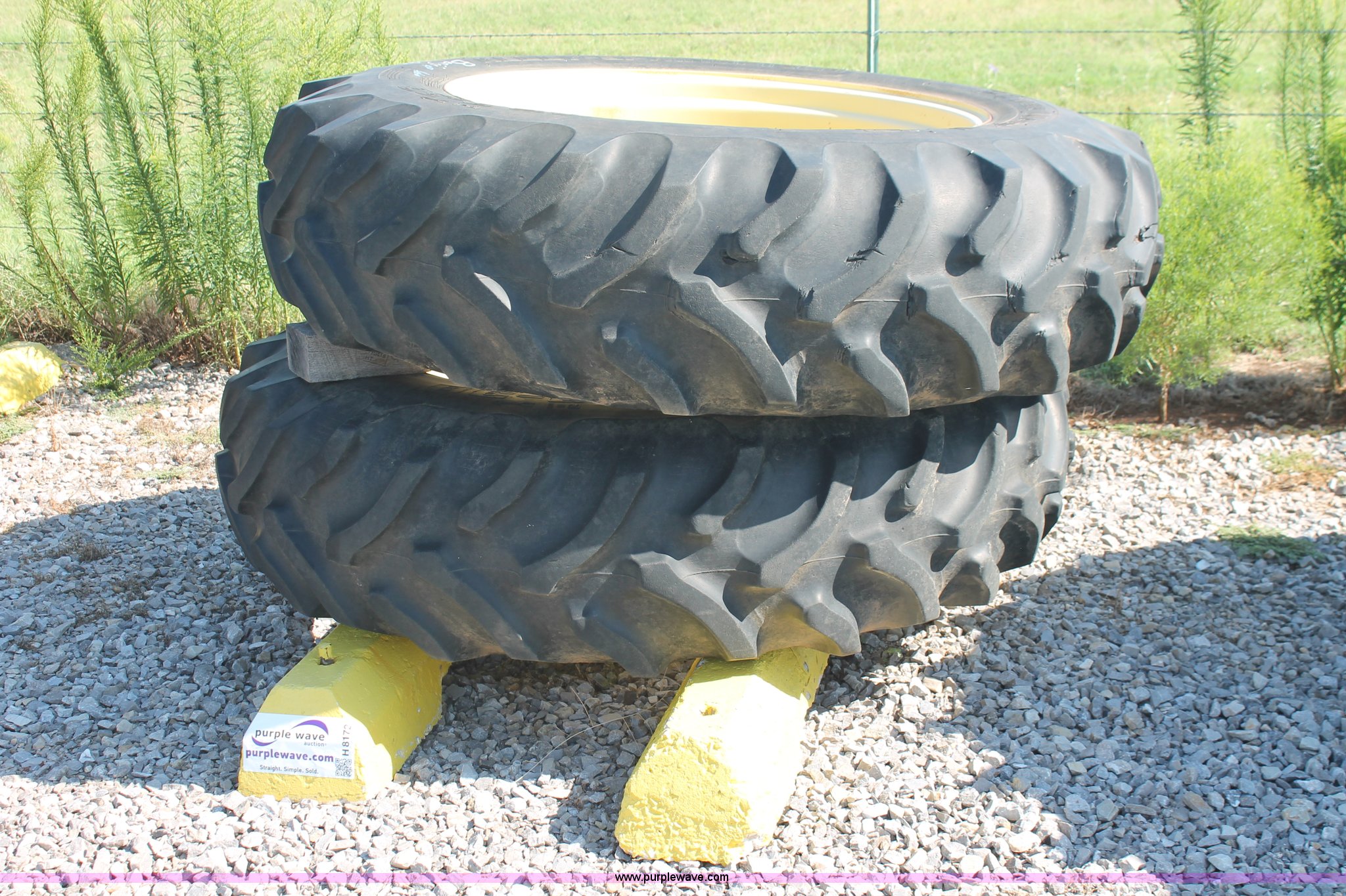 (2) Kelly-Springfield 16.9-38 dual tires. 15" snap-on dual wheels, Removed from John Deere 4230 tractor. Western Equipment, LLC. 10036 US Hwy 183. Clinton, OK 73601