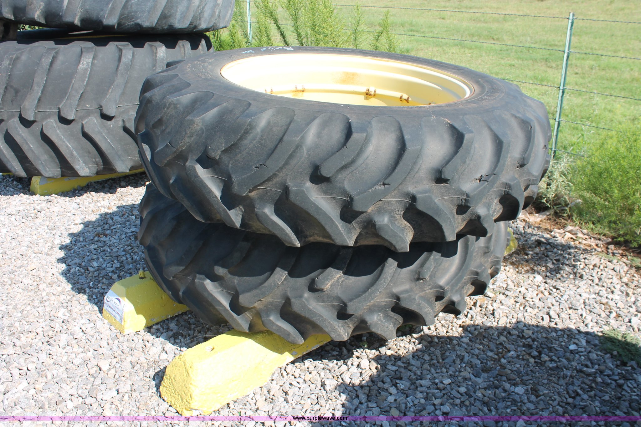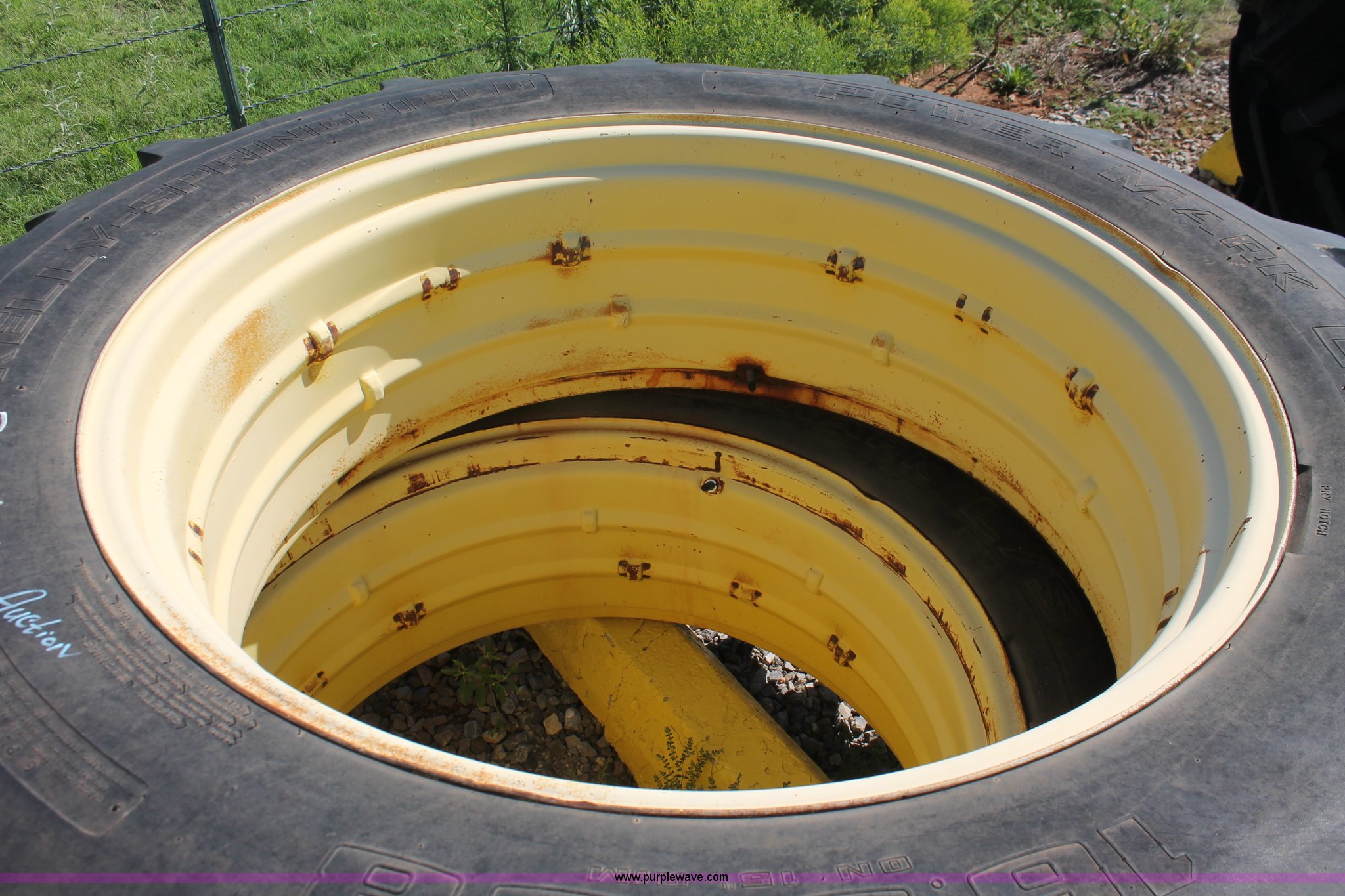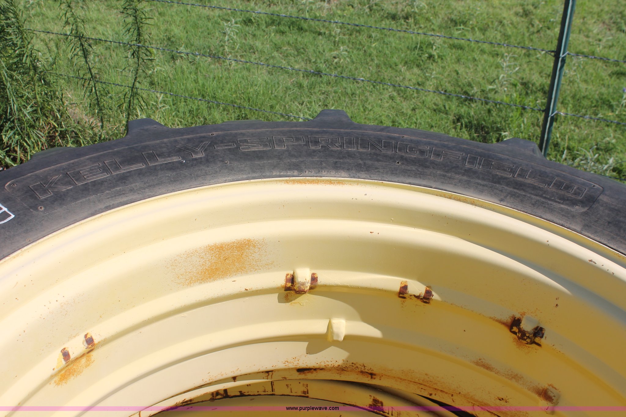 Purple Wave is selling a used Industrial Tires or Tracks in Oklahoma. This item is a (2) Kelly-Springfield 16.9-38 dual tires with the following: 15" snap-on dual wheels, Removed from John Deere 4230 tractor