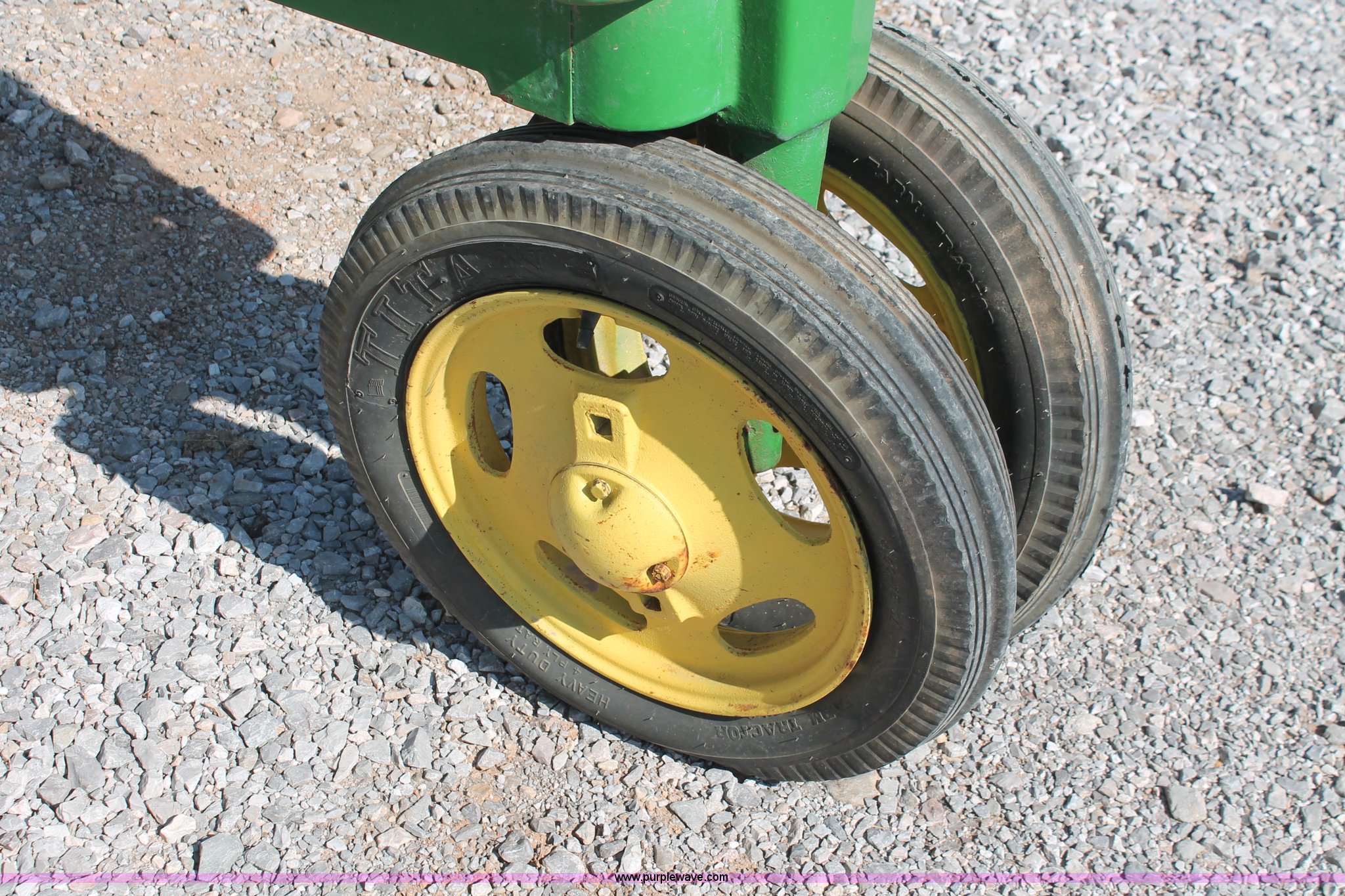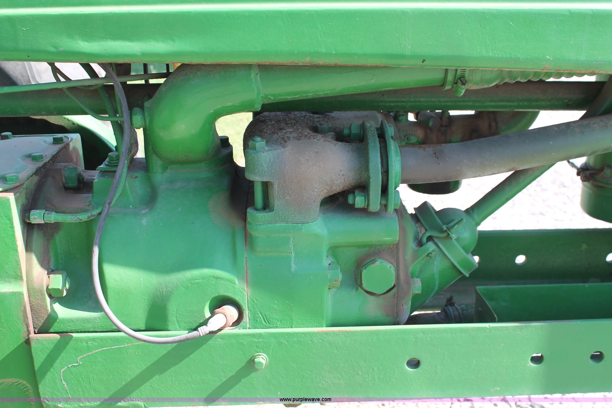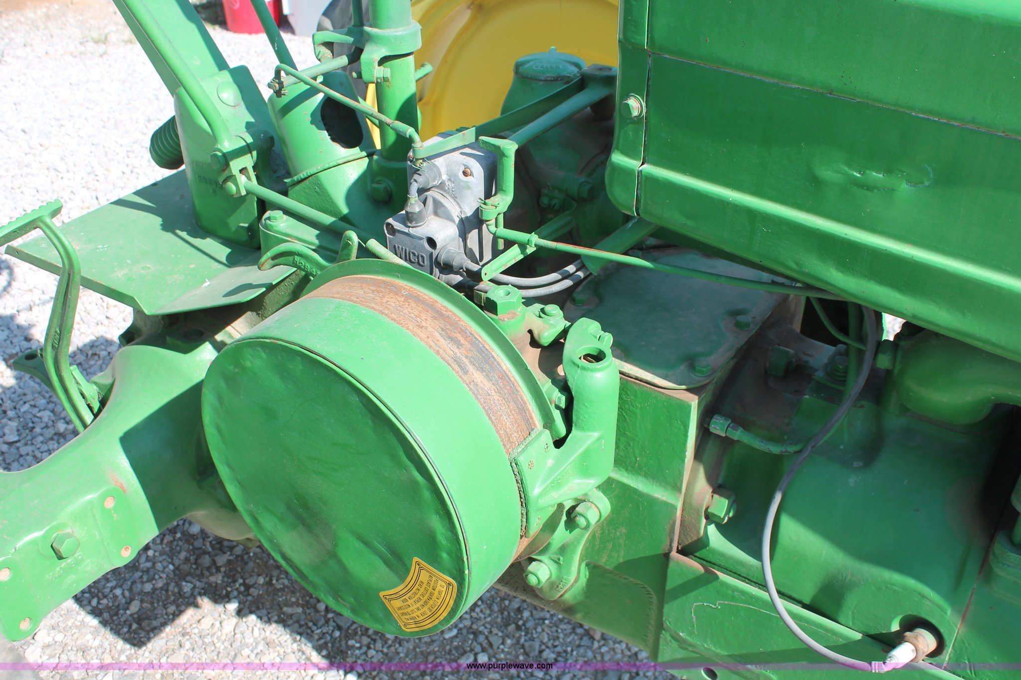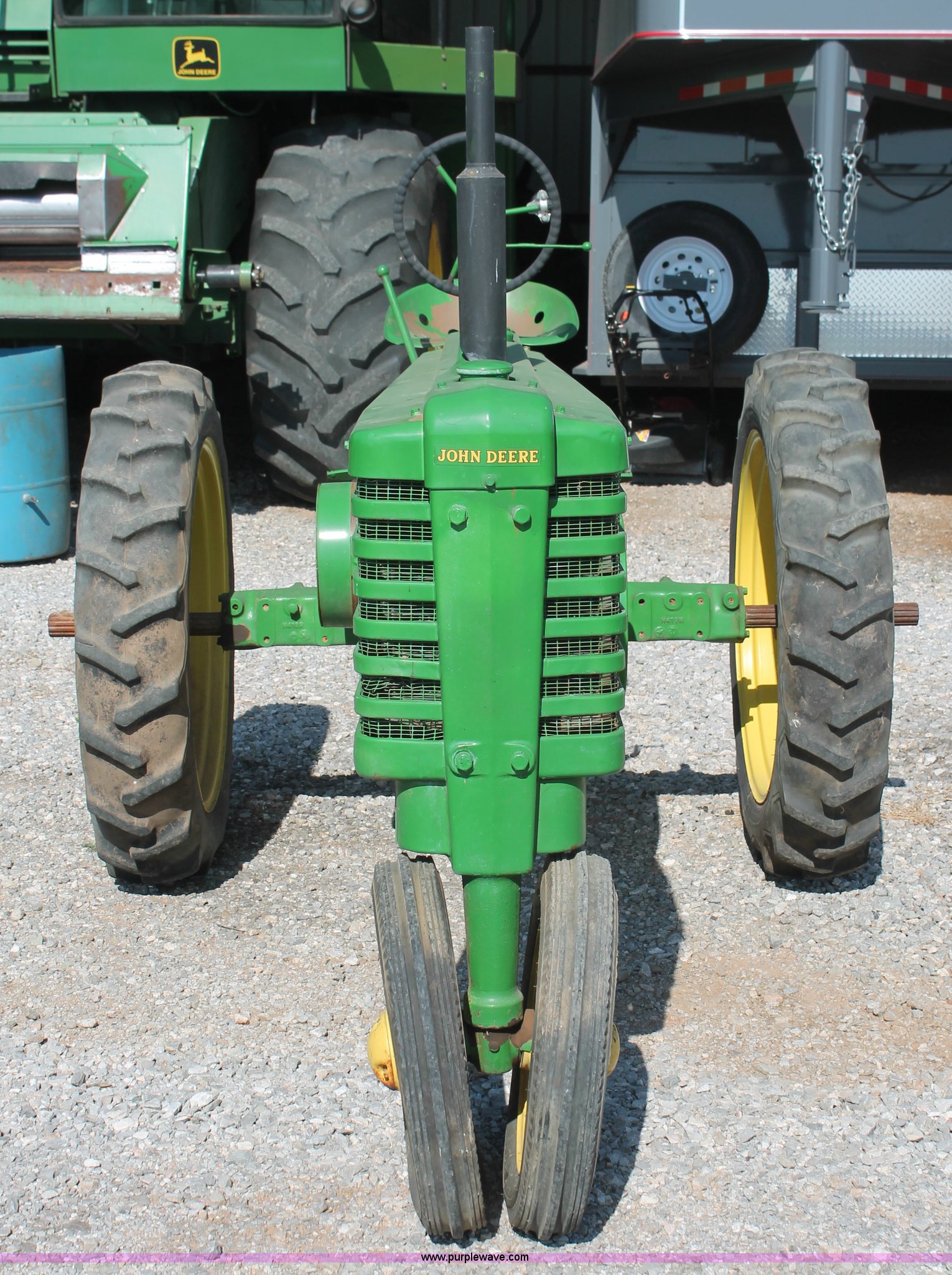 Purple Wave is selling a used Tractor in Oklahoma. This item is a 1942 John Deere H tractor with the following: John Deere 1.6L two cylinder gas/kerosene engine, 12 HP, Currently runs on gas, 3F-1R gears, Spring suspension seat, 540 PTO, Draw bar, 4.00-15 front tires, 9.5-32 rear tires, Serial 44636