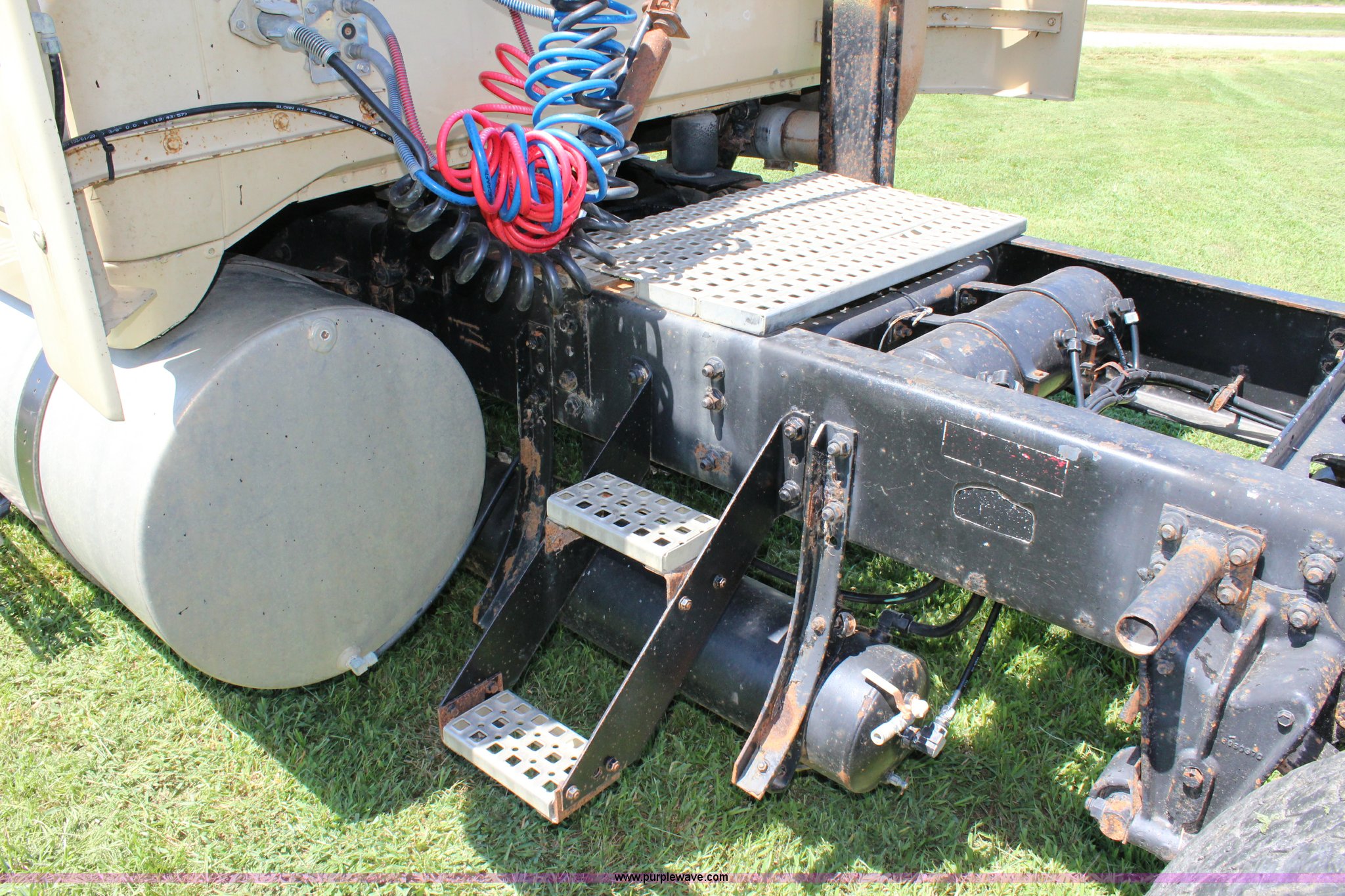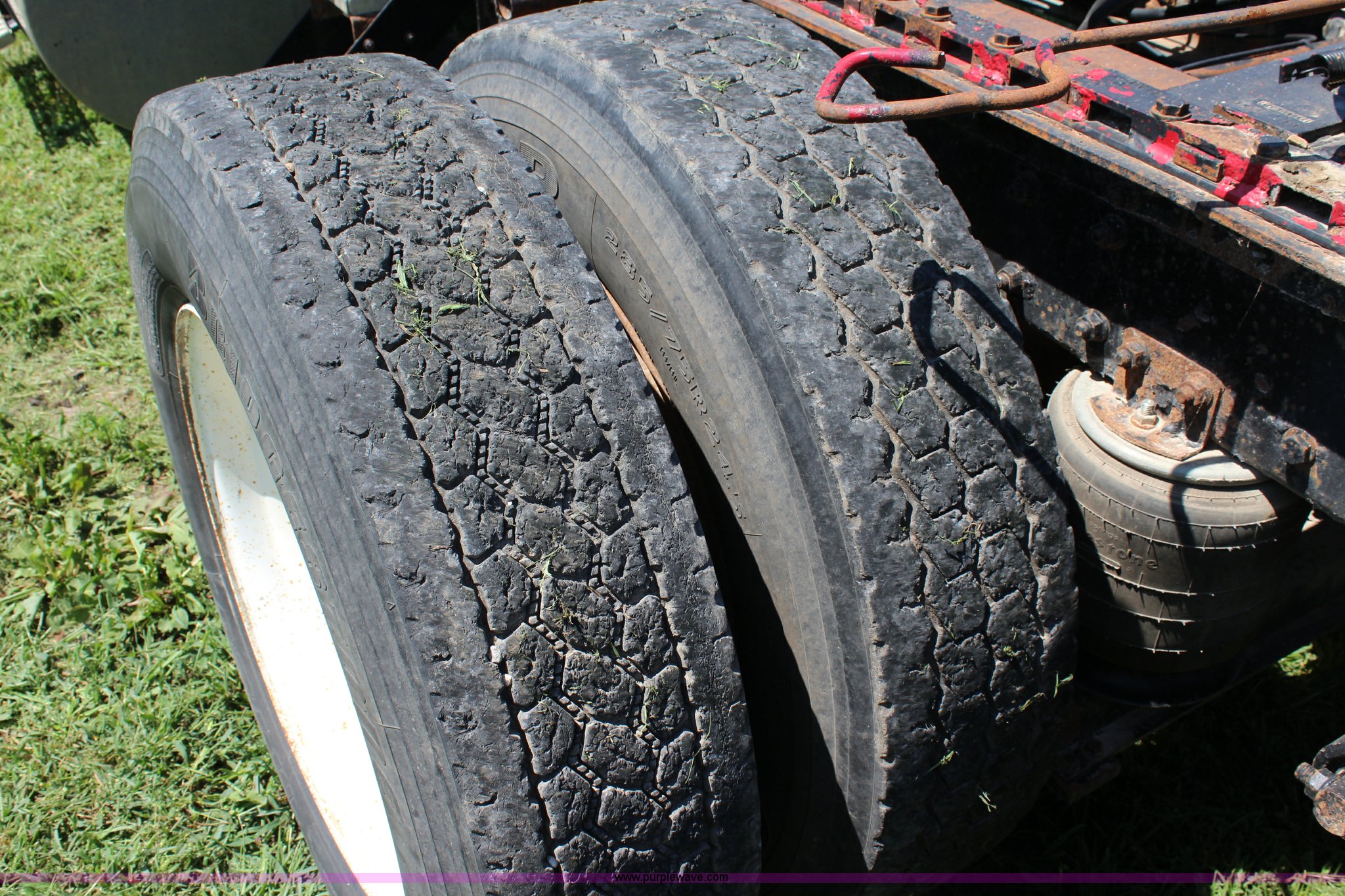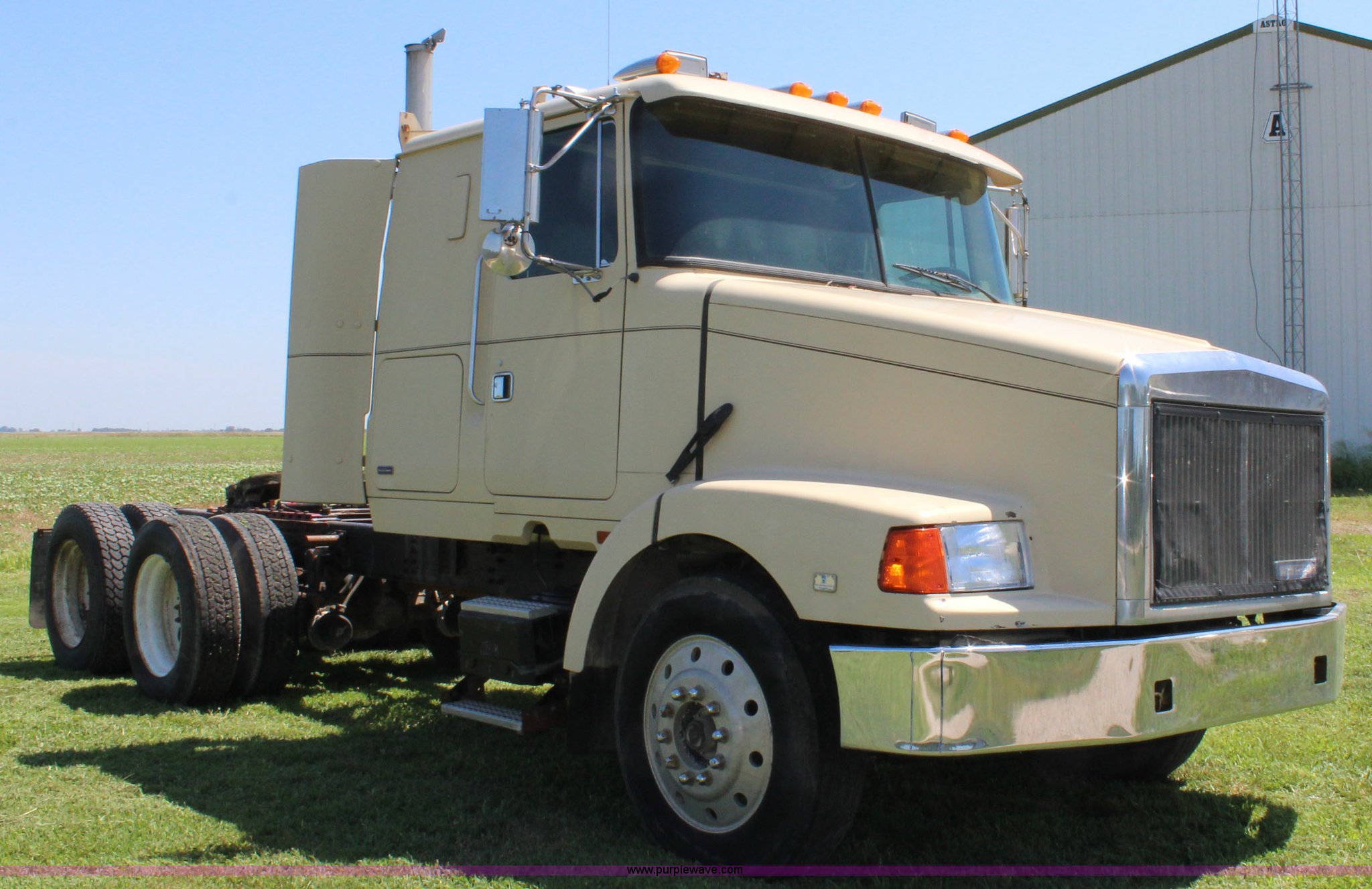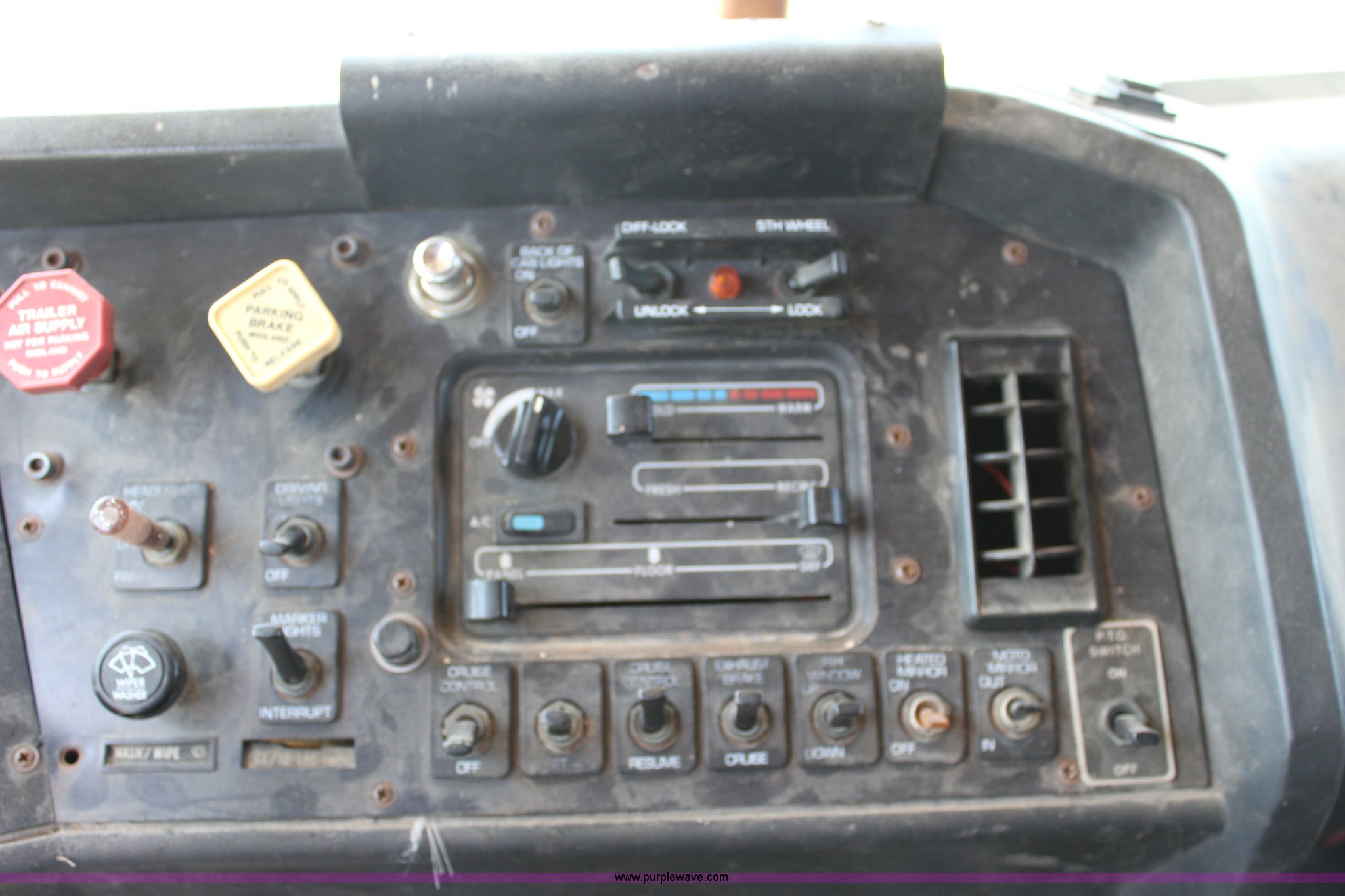 Purple Wave is selling a used Truck Tractor in Kansas. This item is a 1994 Volvo White semi truck with the following: 598,514 miles on odometer, Volvo six cylinder diesel engine, Volvo six speed manual transmission, Tandem axle, Inter-axle differential lock, AC and heat, AM/FM, Air suspension seat, 34" sleeper, Single bed, Air over hydraulic clutch, PTO, Visor, Single exhaust stack, Recently replaced, Sliding fifth wheel plate, Air suspension, Air brakes, 285/75R24.5 tires, GVWR 50,000 lbs, FAWR 12,000 lbs, IAWR 19,000 lbs, RAWR 19,000 lbs, Clutch has small leak