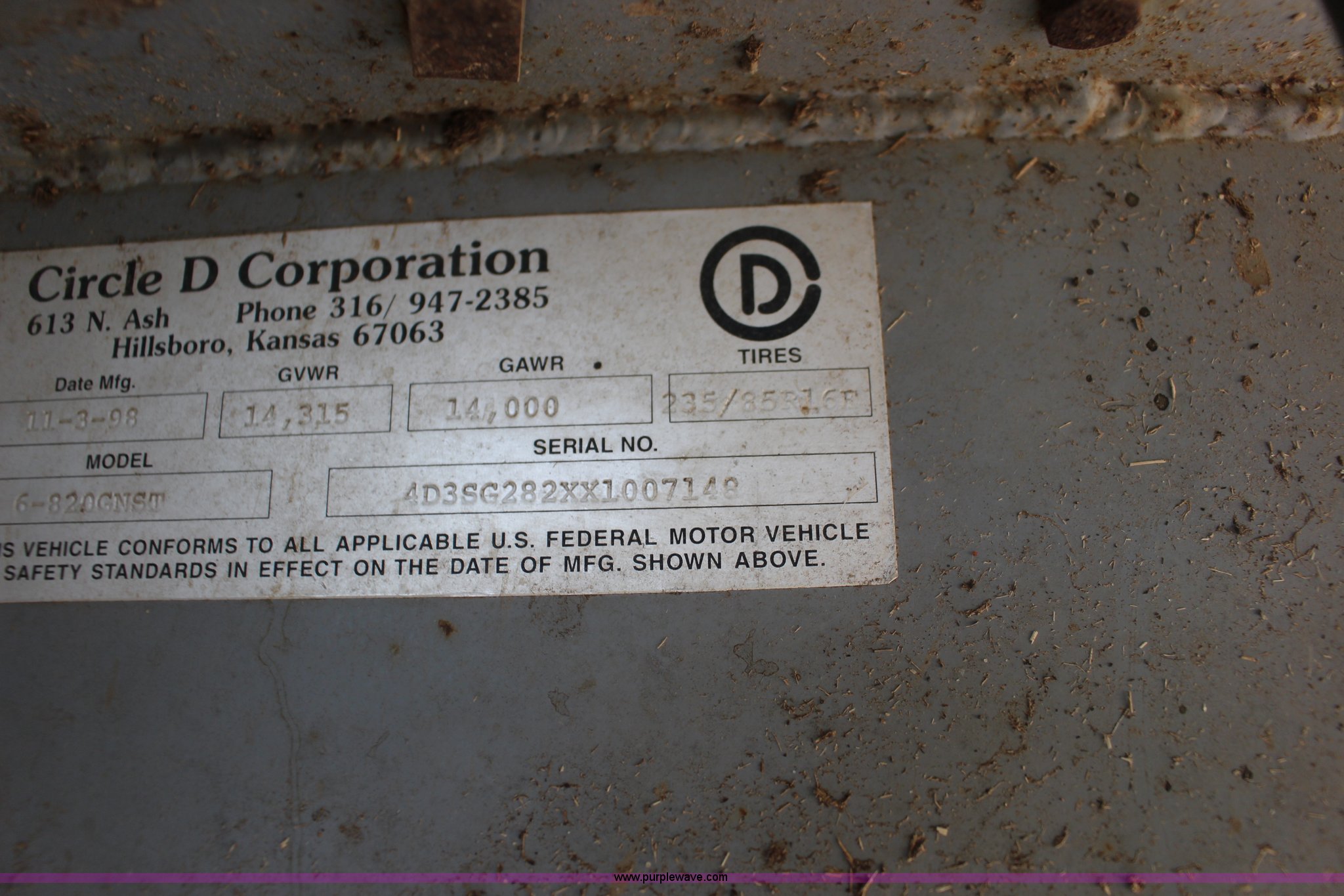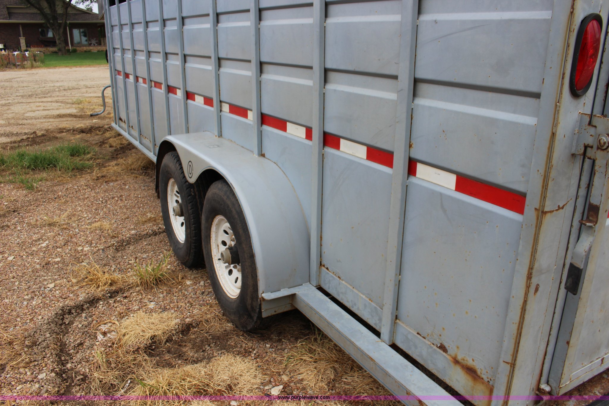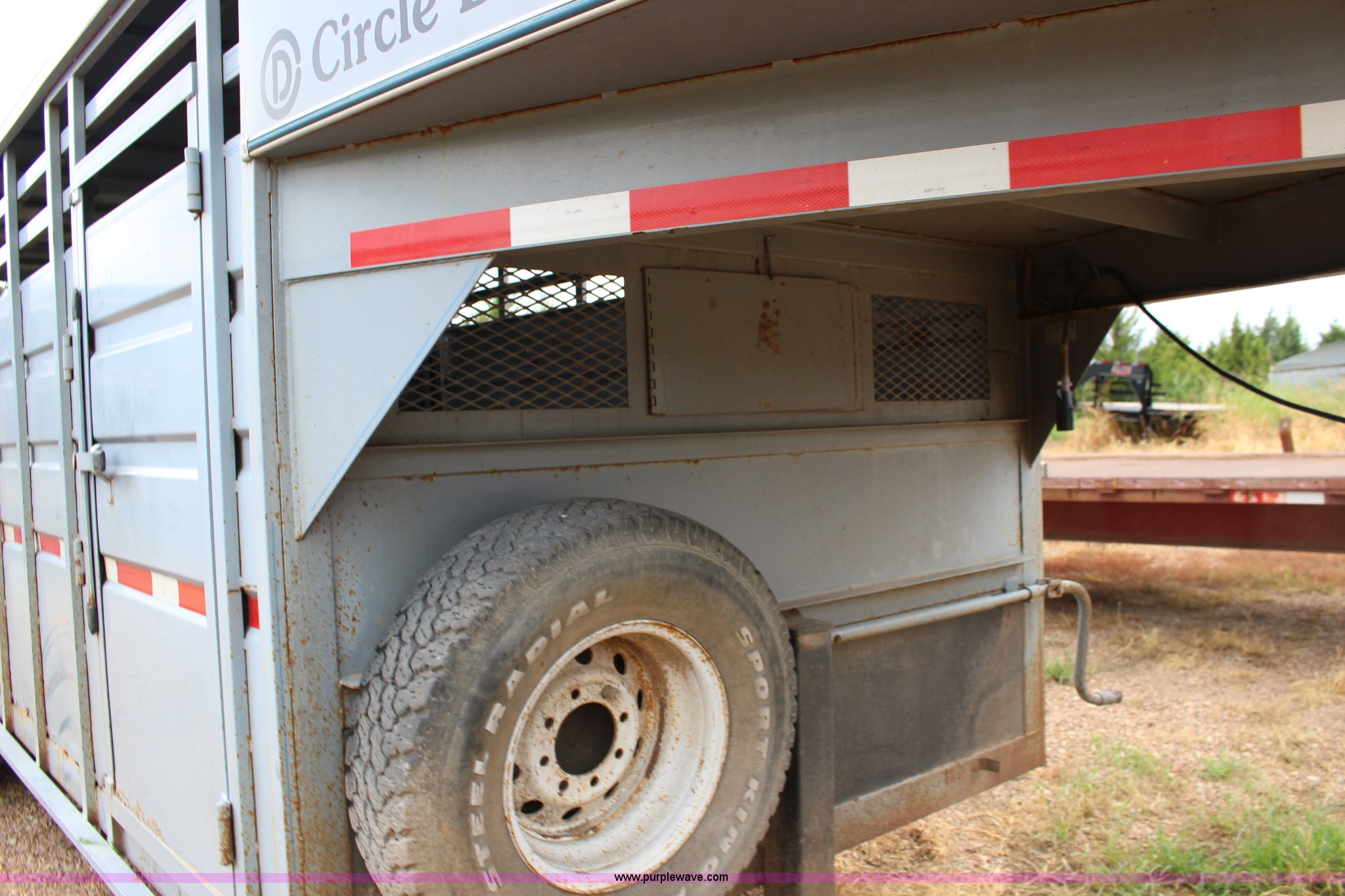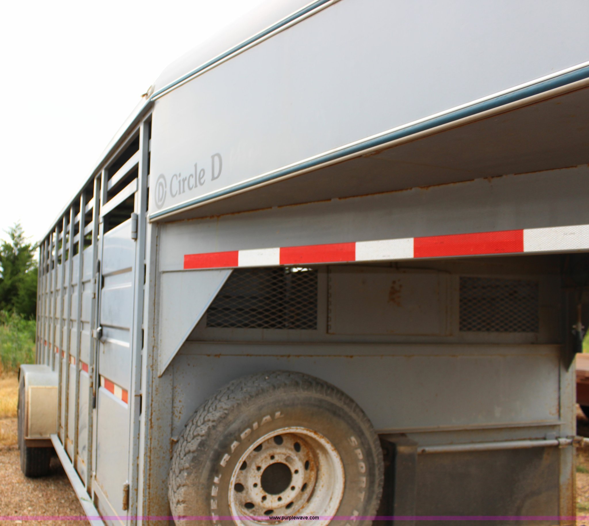 Purple Wave is selling a used Livestock Trailer in Kansas. This item is a 1999 Circle D livestock trailer with the following: 20'L x 7'W, Center divider gate, Wood floor, 16" tires