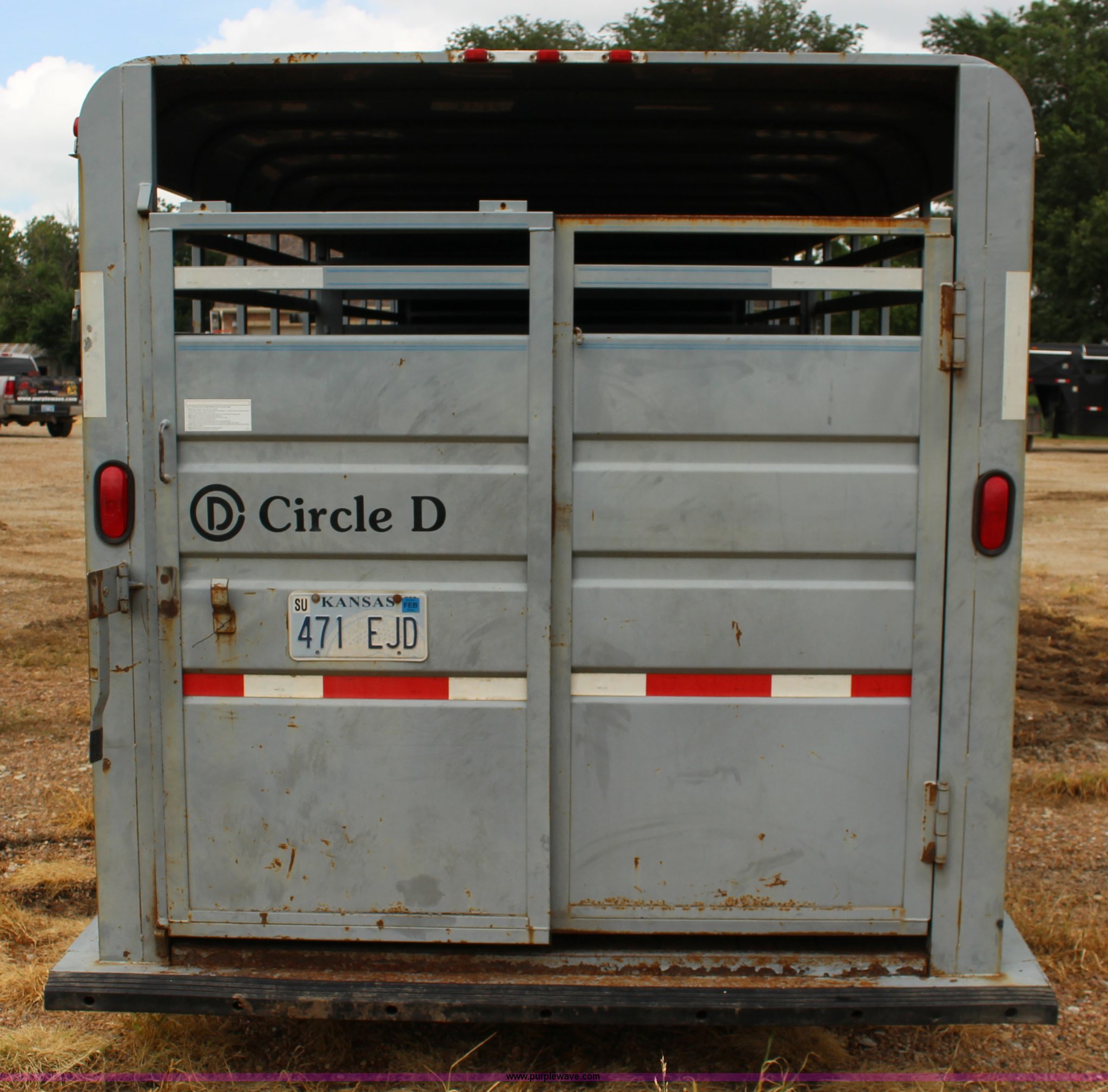 Take a look at this used 1999 Circle D livestock trailer being sold on August 26th, 2015 in the SOLD! August 26 Ag Equipment Auction made by Circle D. Take a look at all of the item information below or take a look at similar auctions for Ag Trailers.