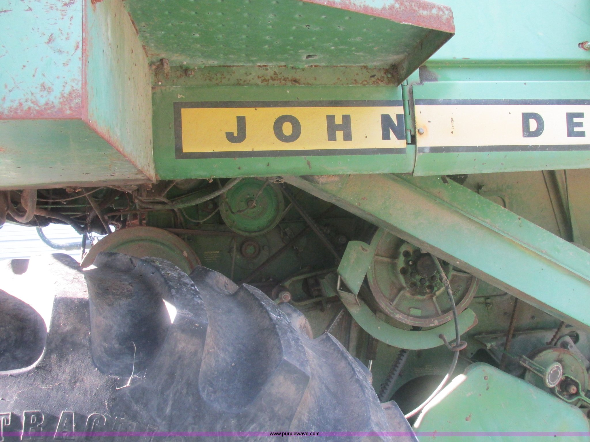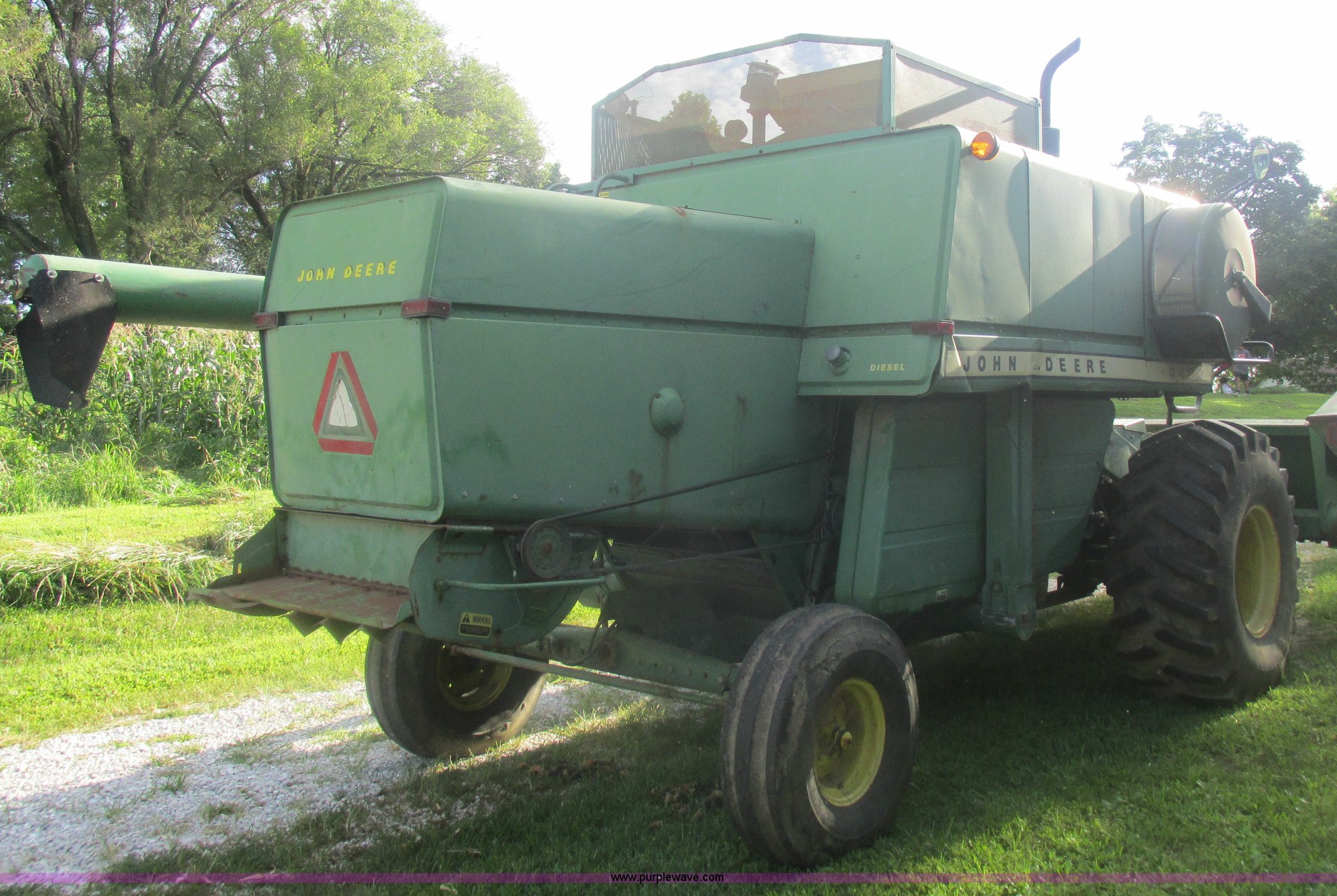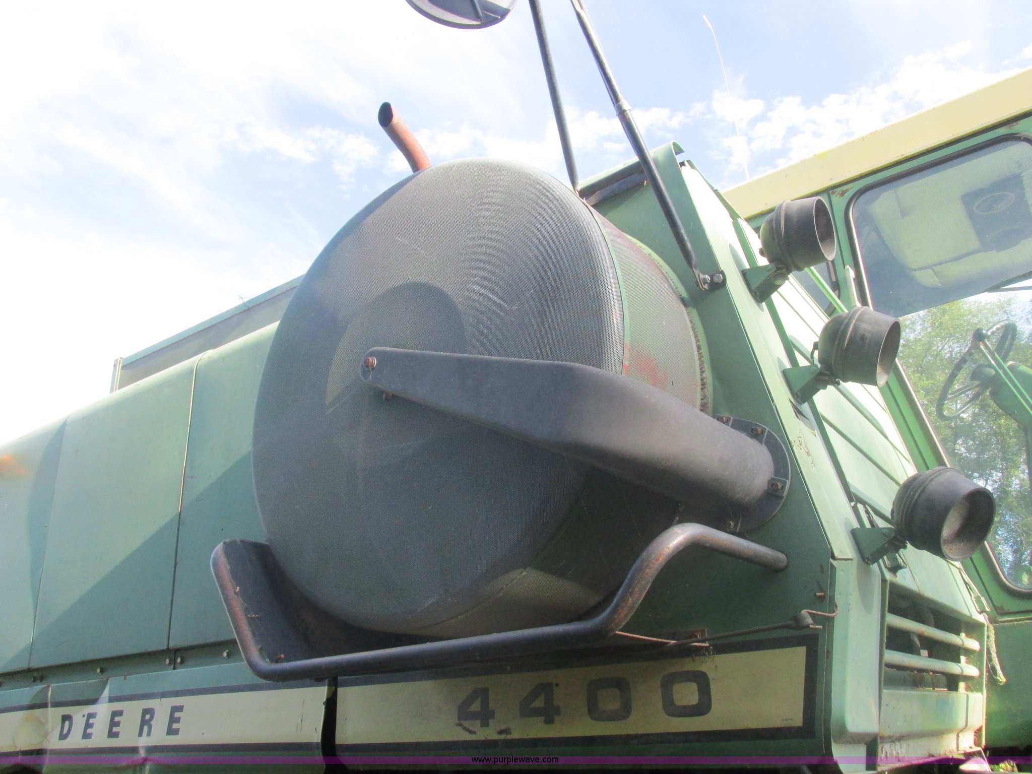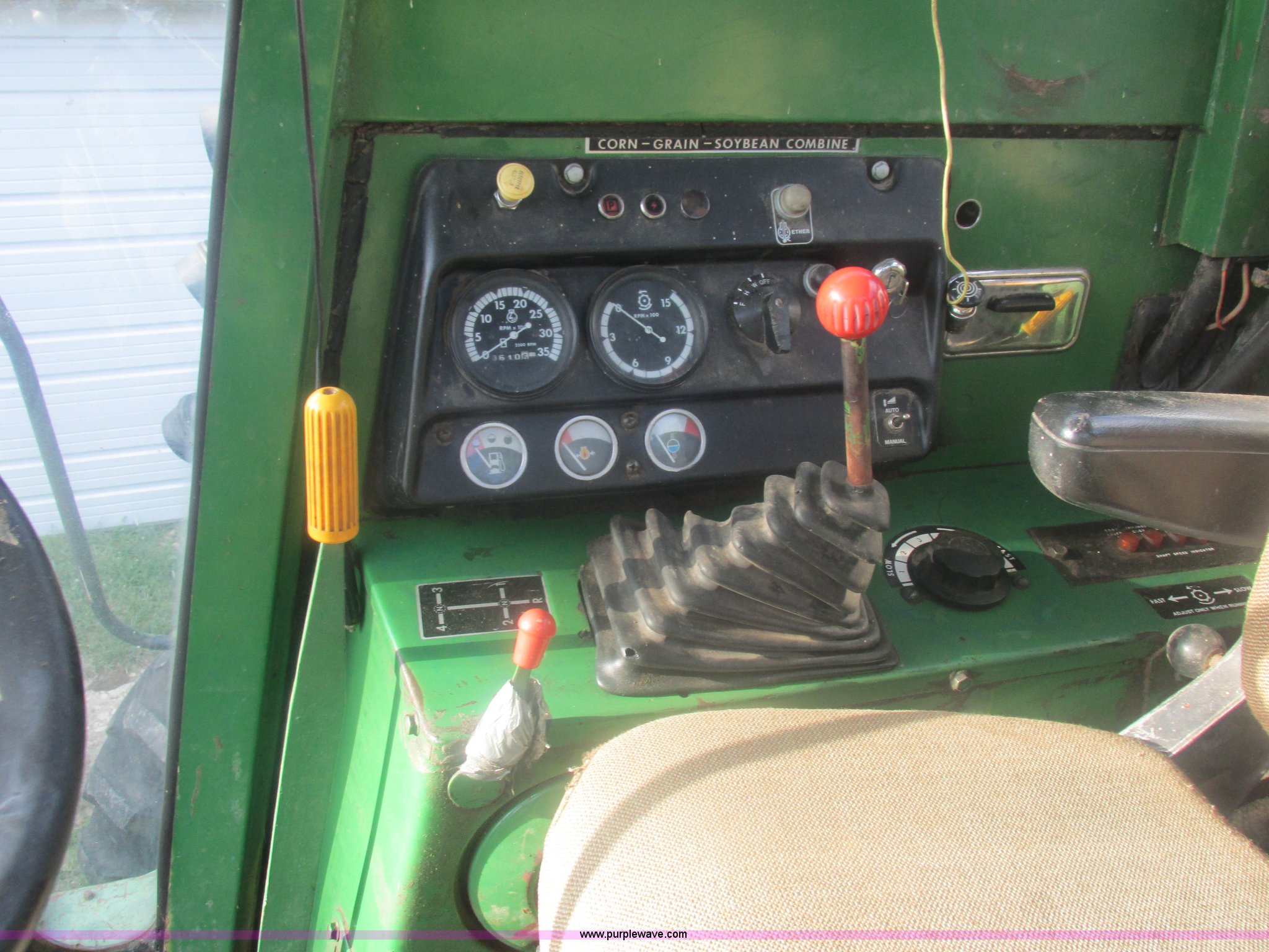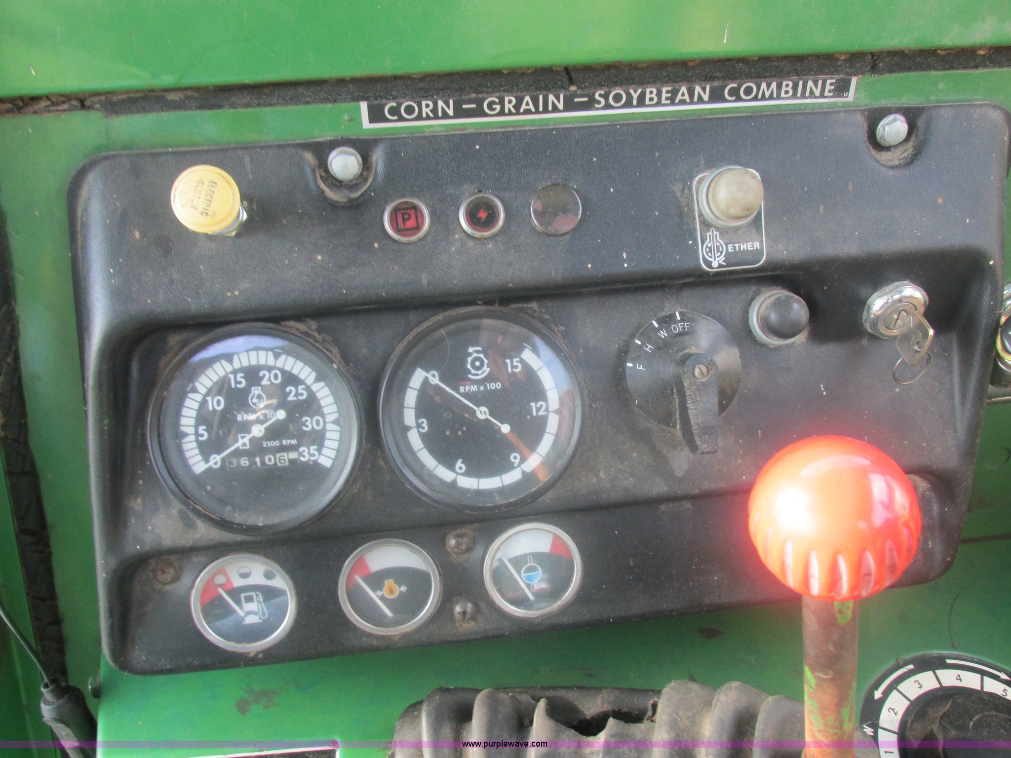 Purple Wave is selling a used Combine in Missouri. This item is a 1976 John Deere 4400 combine with the following: 3,610 engine hours on meter, John Deere six cylinder diesel engine, Manual transmission, 4F gears, AM/FM, Tilt steering wheel, Suspension seat, 23.1-26 front tires, 11-16 rear tires, Non-operational AC, Head not included, Serial 203617