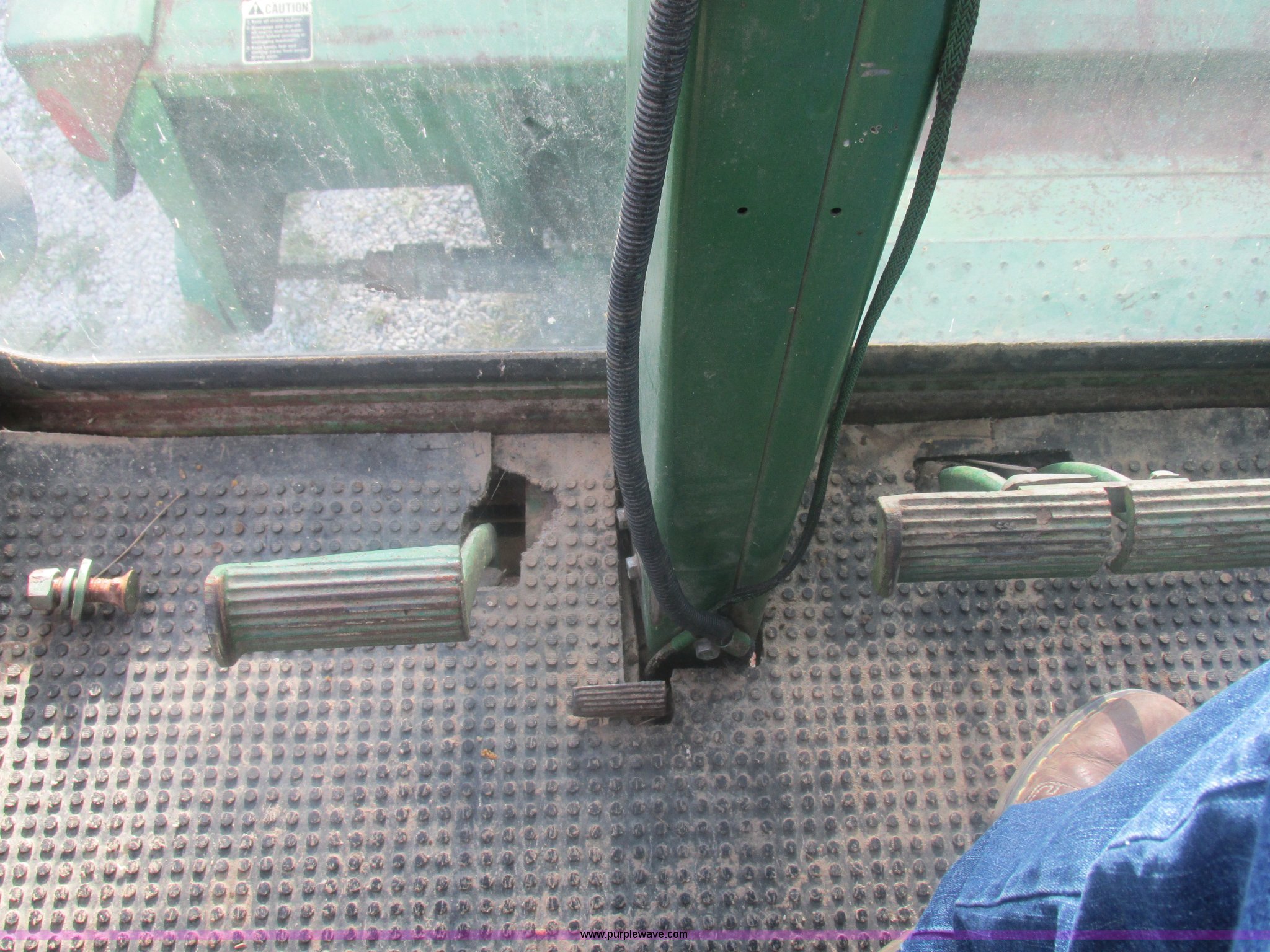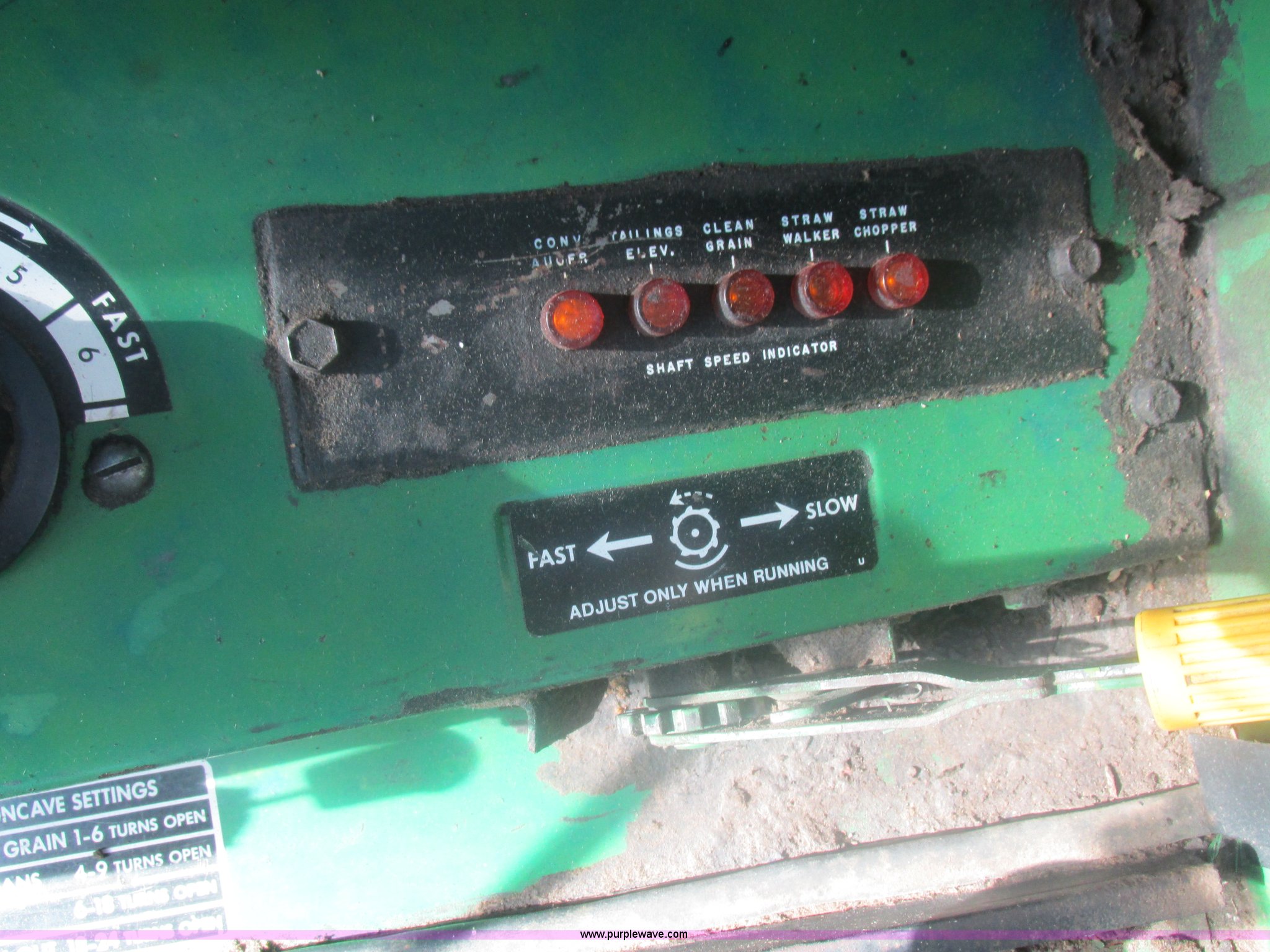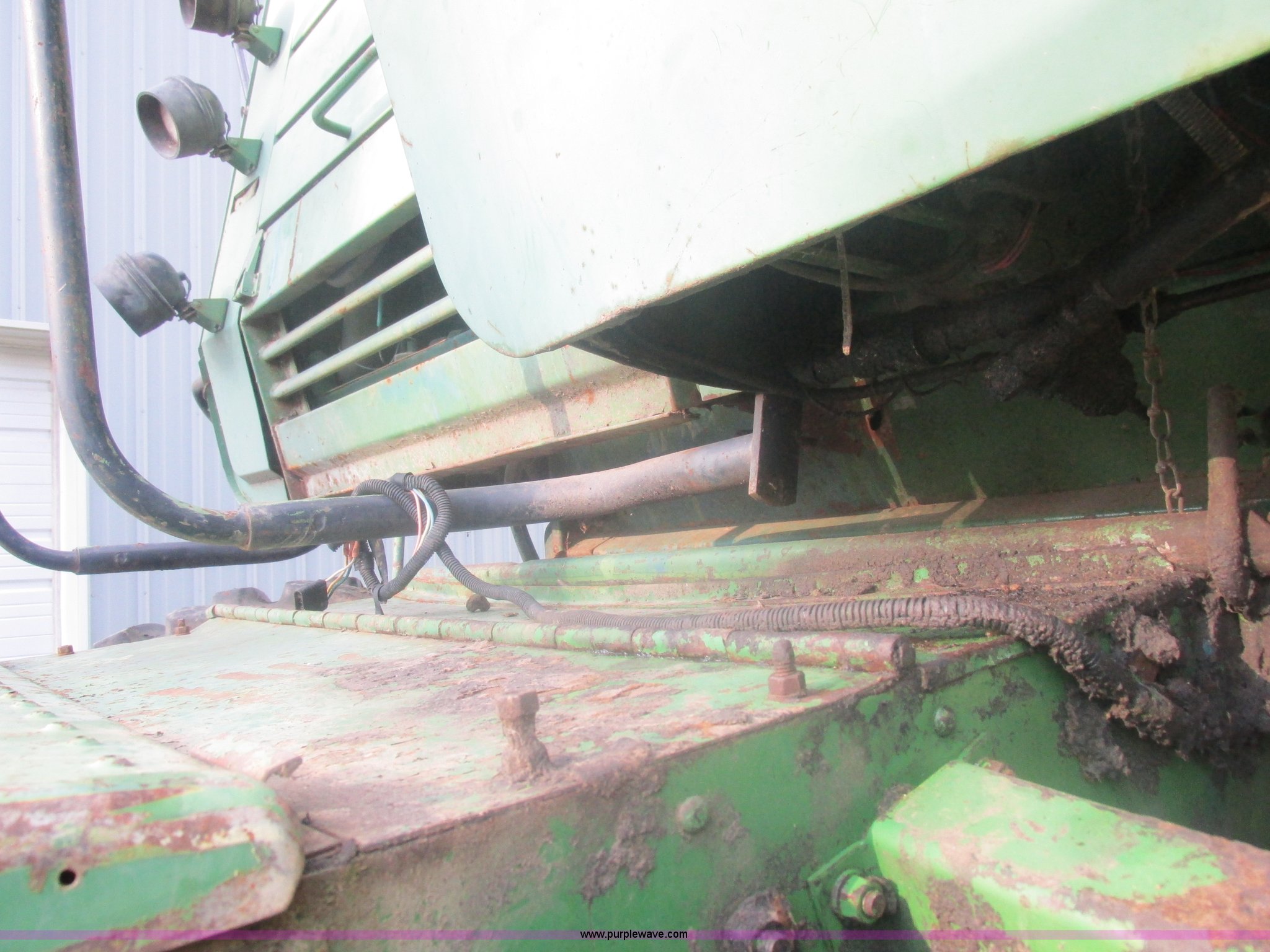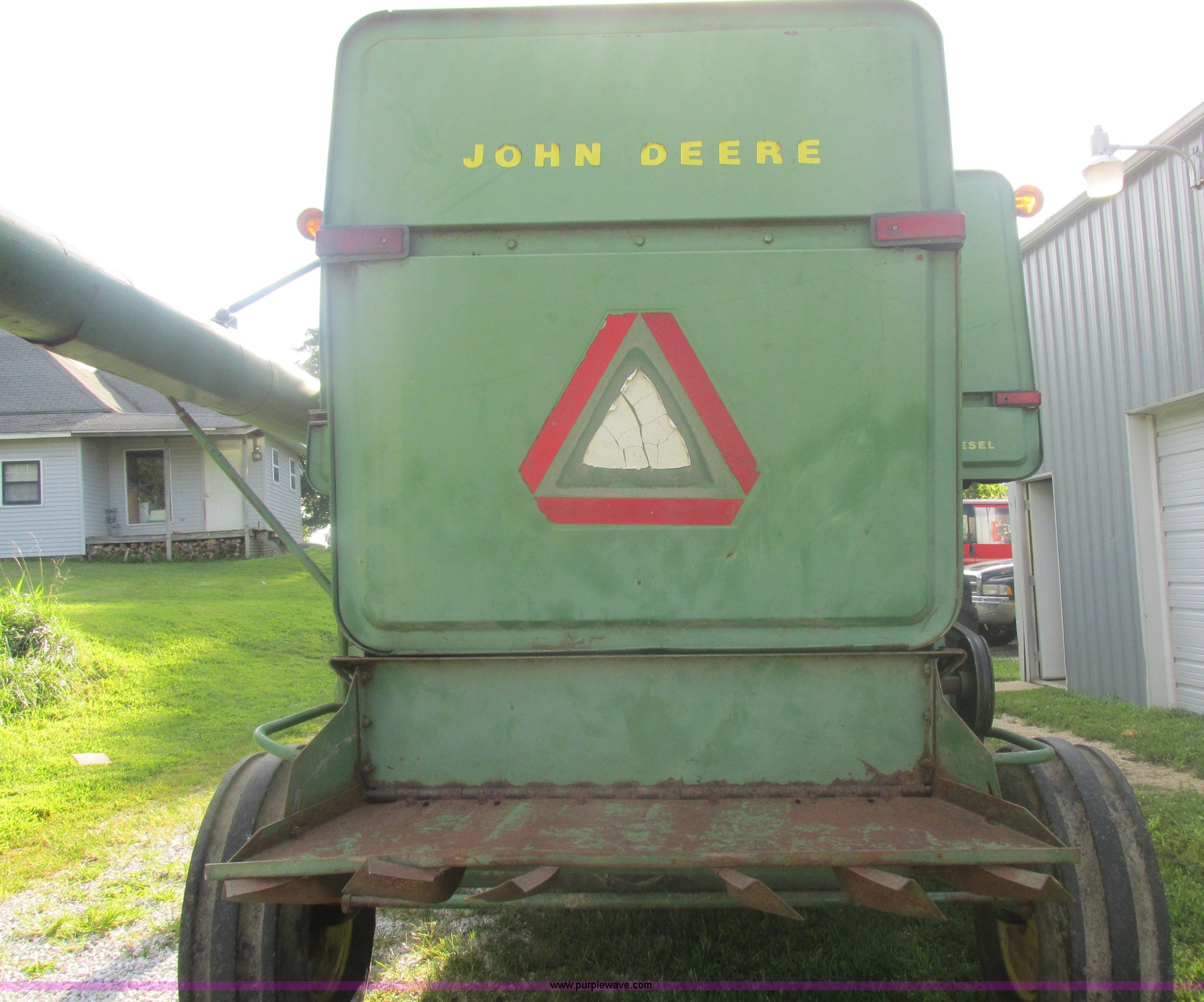 Purple Wave is selling a used Combine in Missouri. This item is a 1976 John Deere 4400 combine with the following: 3,610 engine hours on meter, John Deere six cylinder diesel engine, Manual transmission, 4F gears, AM/FM, Tilt steering wheel, Suspension seat, 23.1-26 front tires, 11-16 rear tires, Non-operational AC, Head not included, Serial 203617