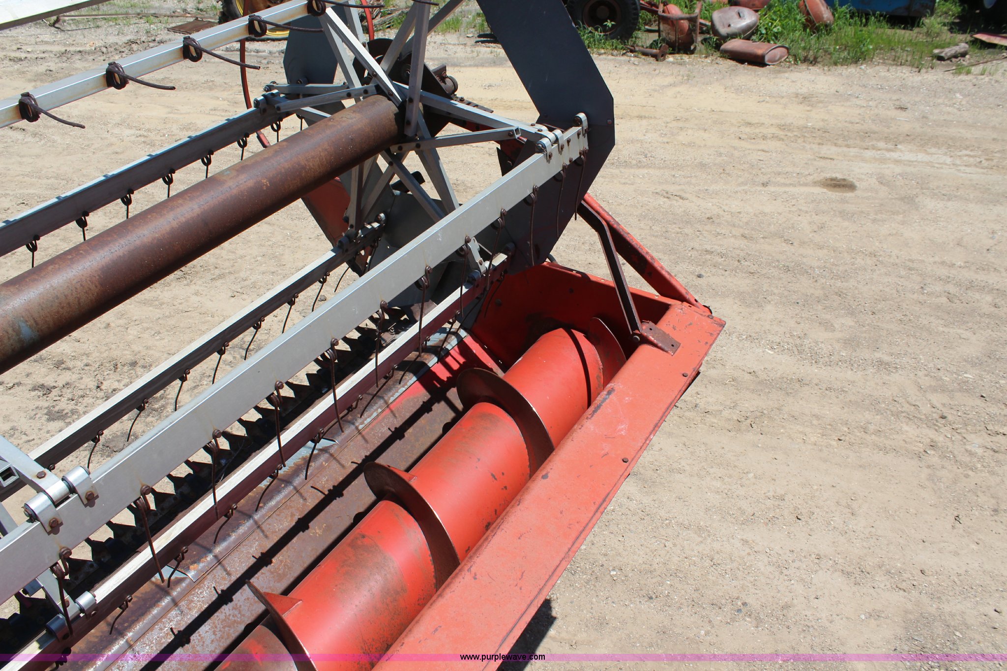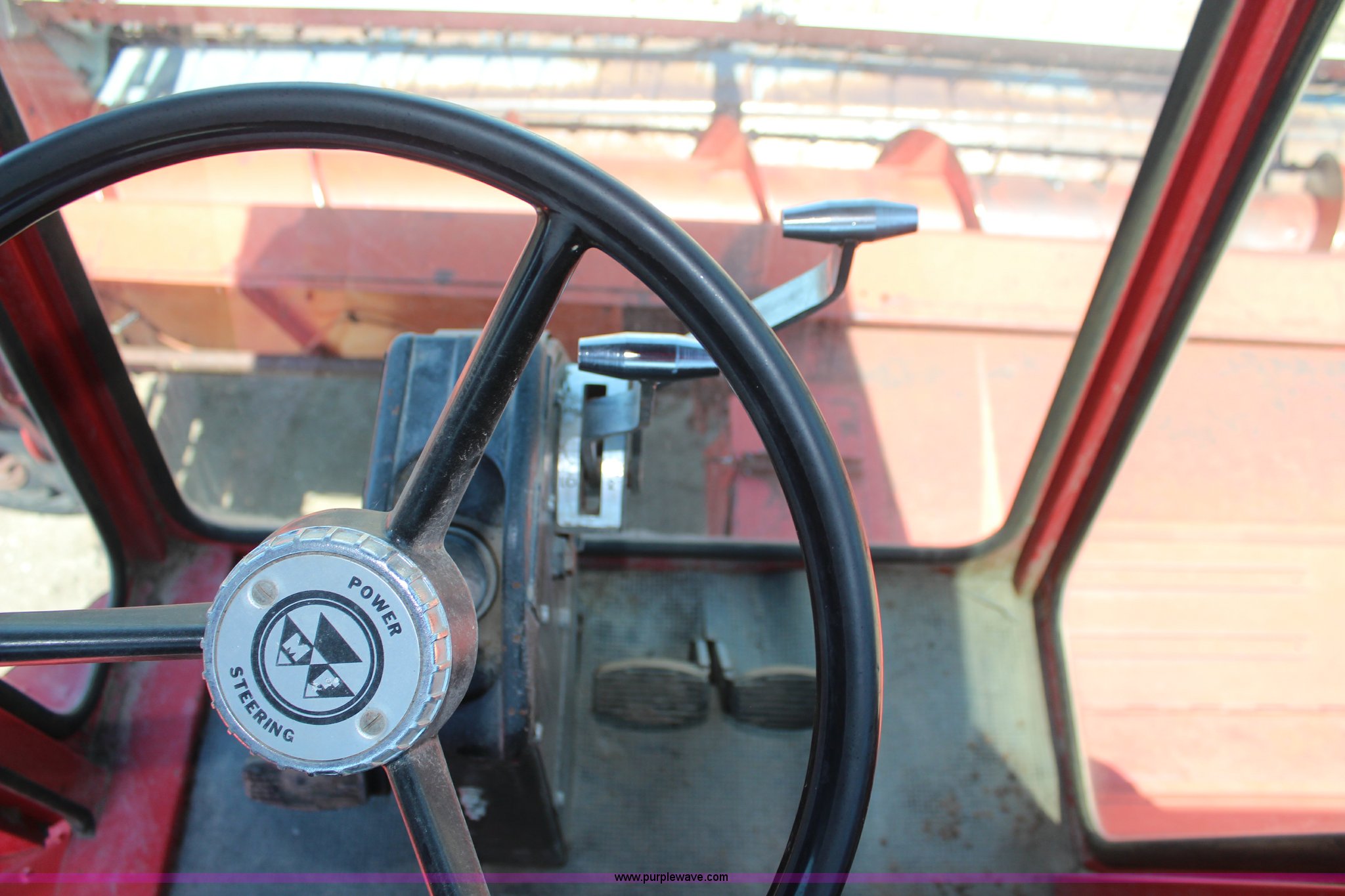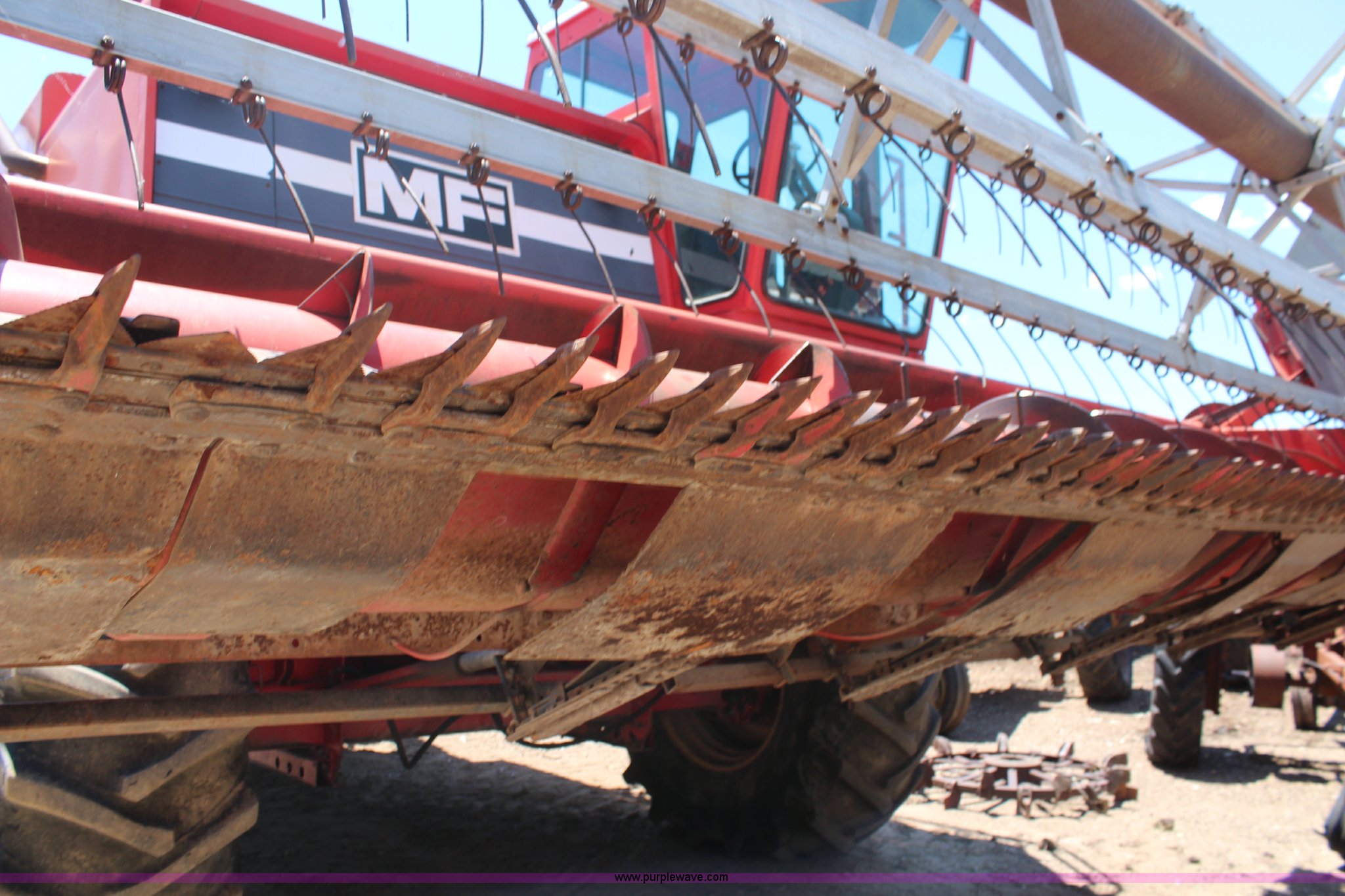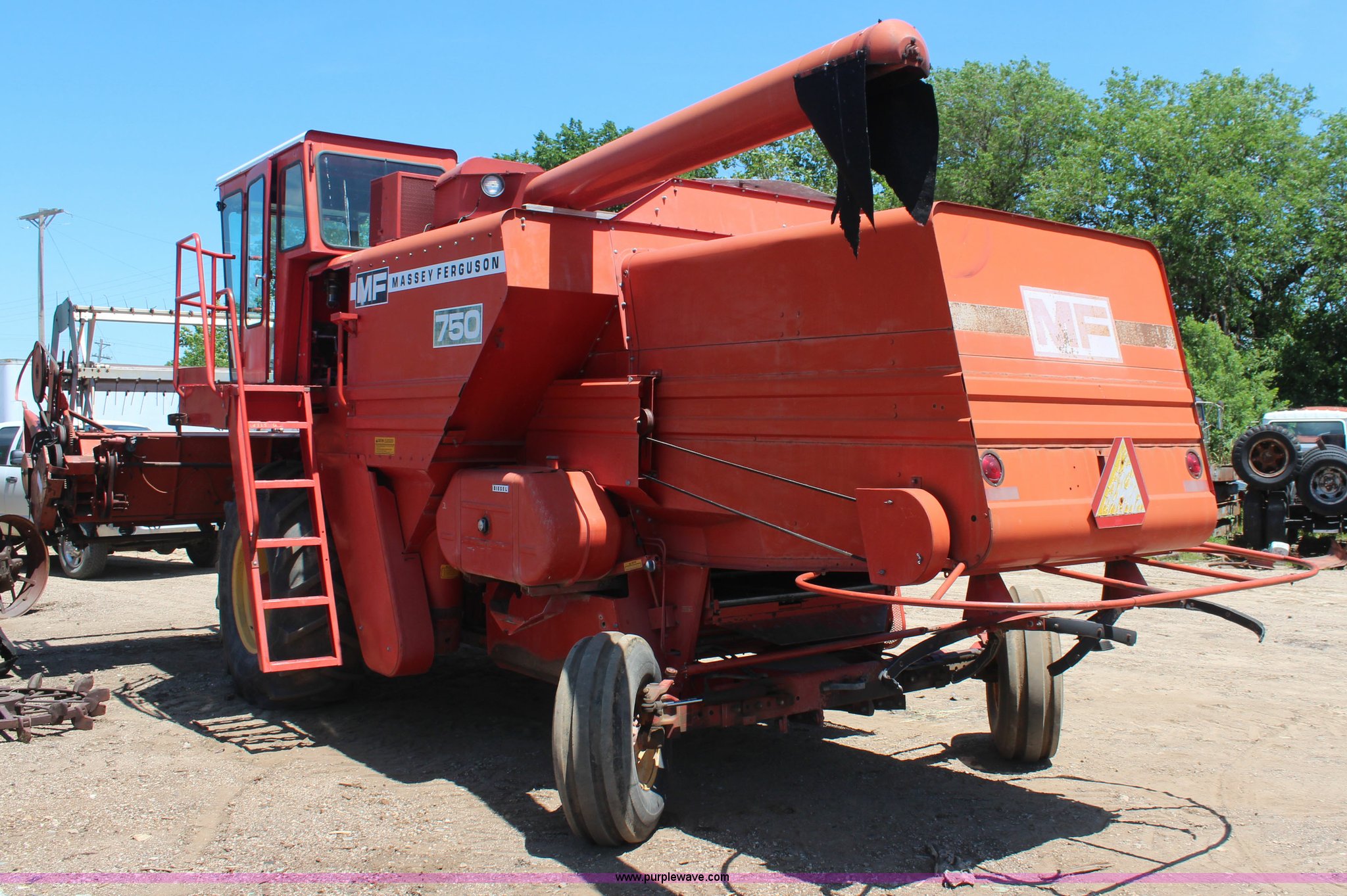 Purple Wave is selling a used Combine in Kansas. This item is a Massey-Ferguson 750 combine with the following: Unknwon hours on meter, Six cylinder diesel engine, Four speed transmission, 16' rigid platform head, 23.1-30 front tires, 11.00-16 rear tires, Serial 1696-13520