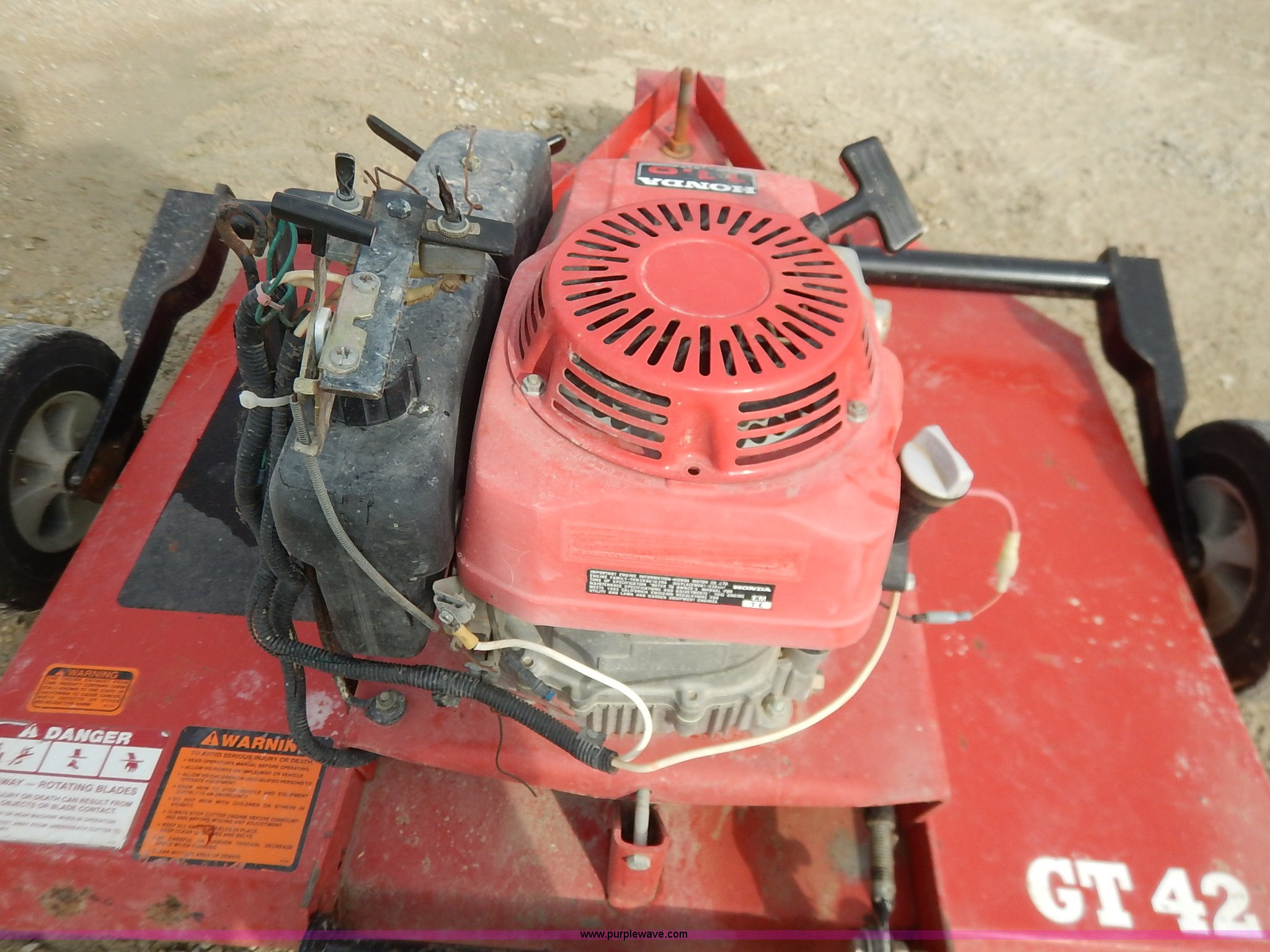 Purple Wave is selling a used Mower, Cutter, Shredder in Kansas. This item is a Bush Hog GT42 rotary mower with the following: Honda OHV engine, 11 HP, Pin hitch