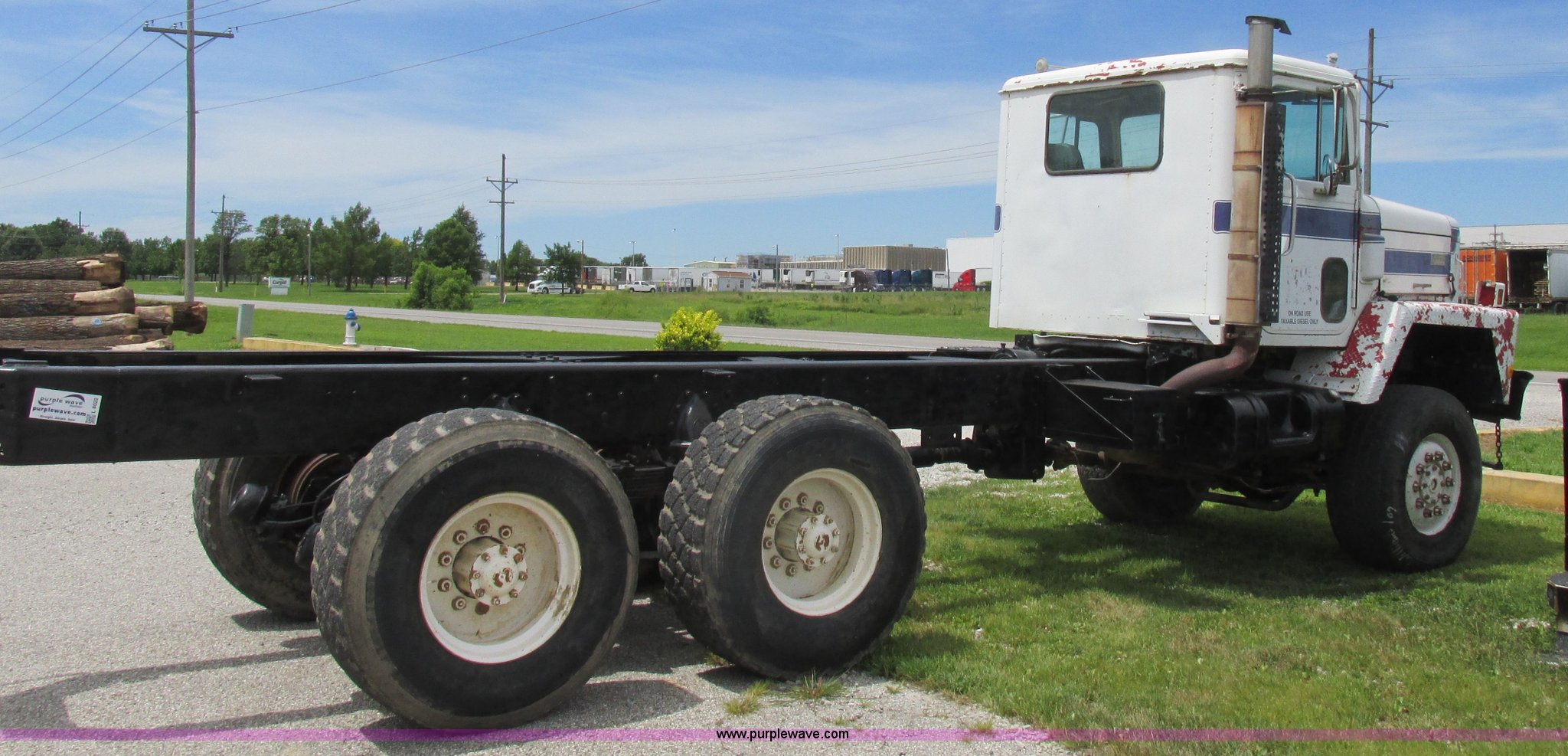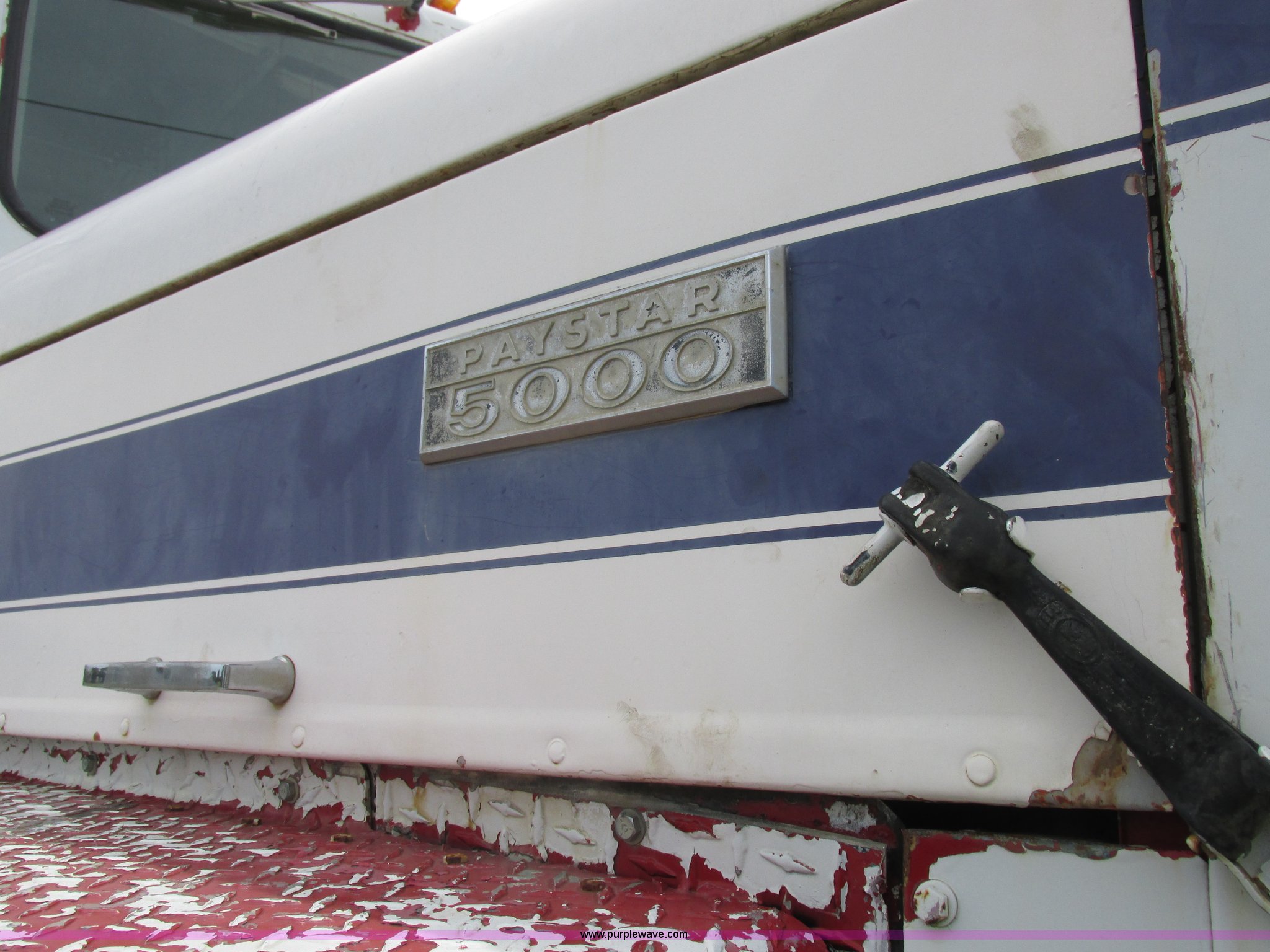 Purple Wave is selling a used Truck Chassis in Missouri. This item is a 1979 International Paystar 5000 truck cab and chassis with the following: 43,638 miles on odometer, 6,021 hours on meter, 5,743 engine hours on meter, Cummins diesel engine, Eaton Fuller 955DLL six speed manual transmission, Tandem axle, Heat, Air suspension seat, PTO, Single exhaust stack, Pintle hitch, Spring suspension, Air brakes, 425/65R22.5 tires