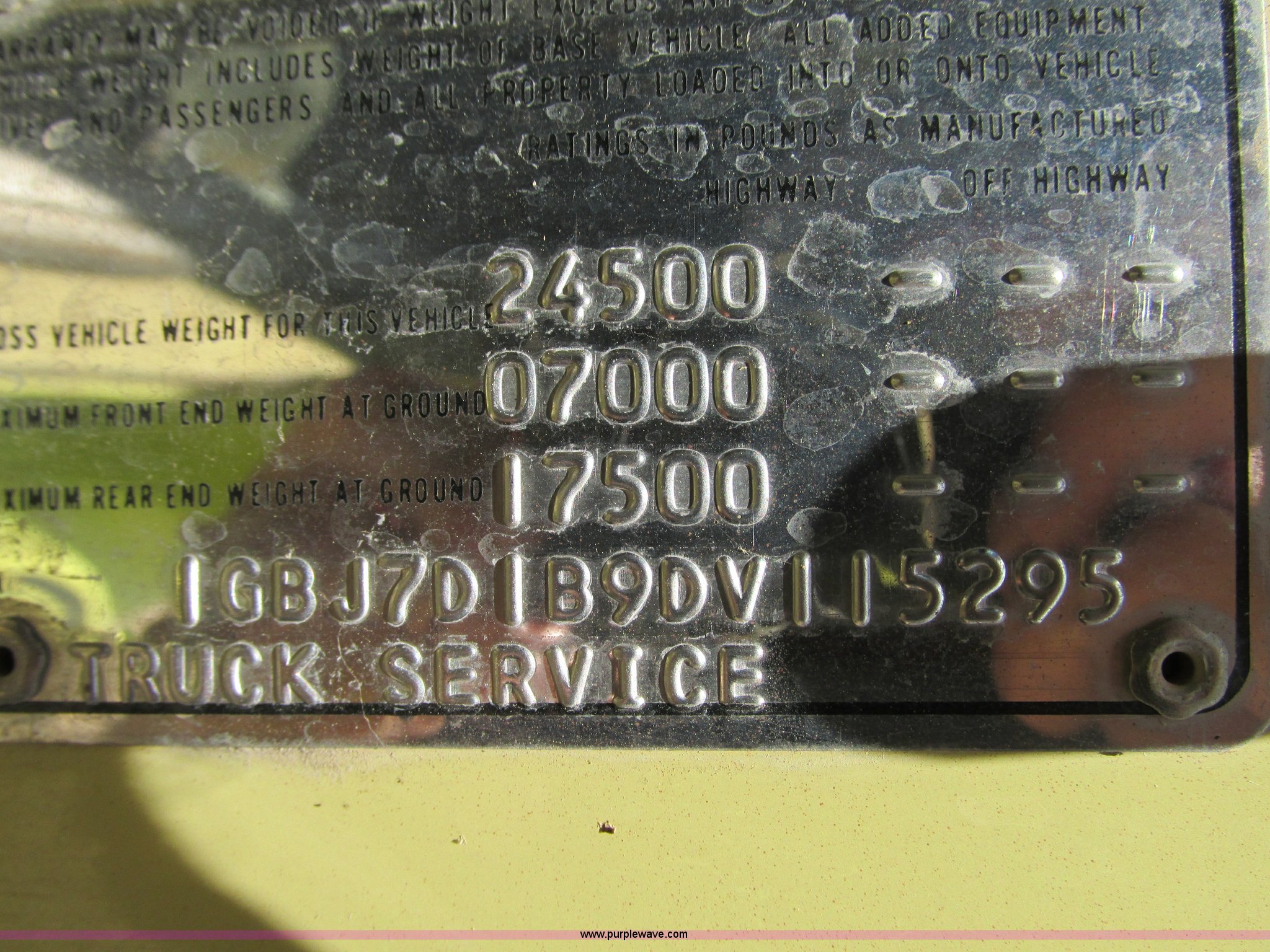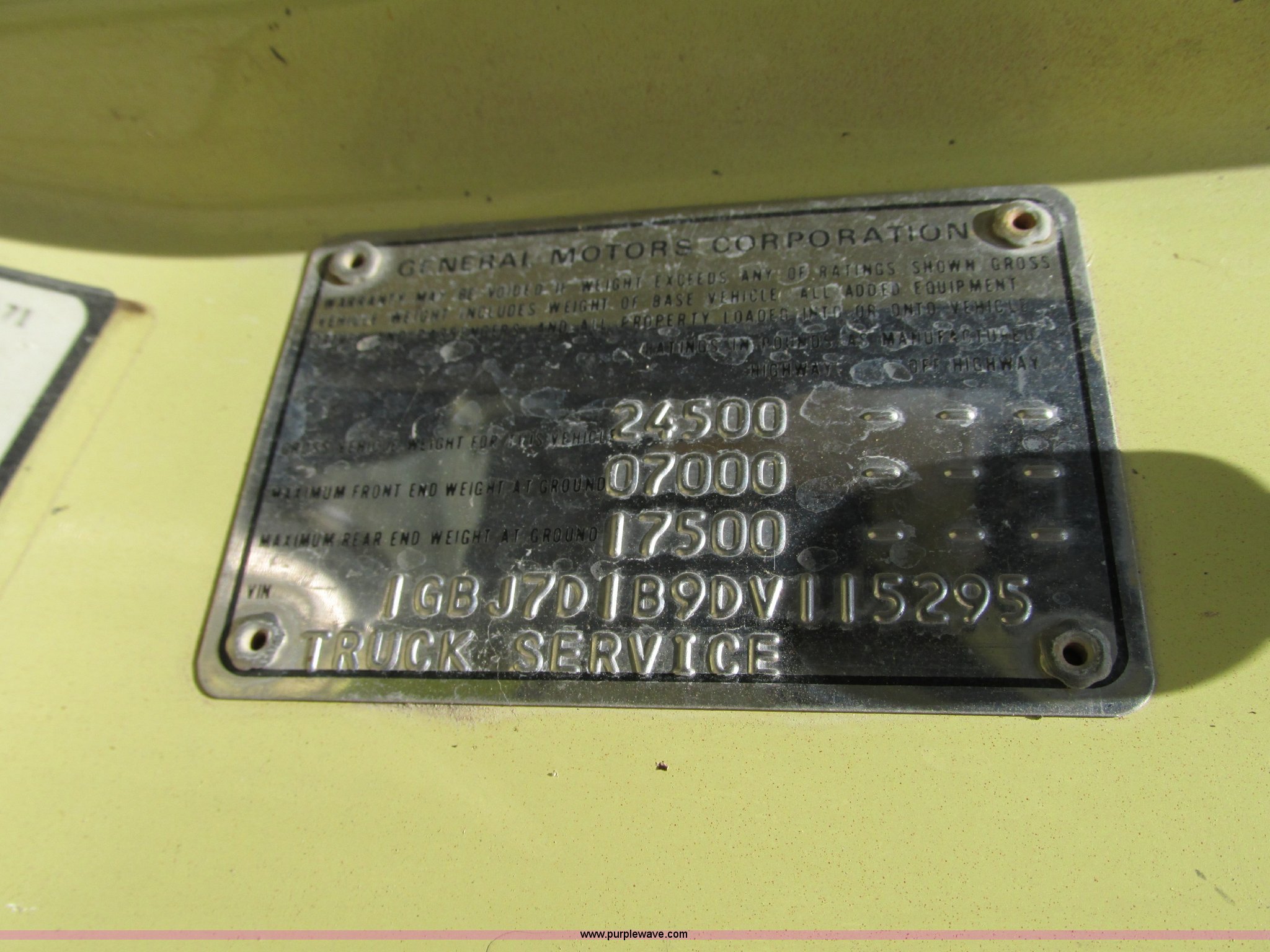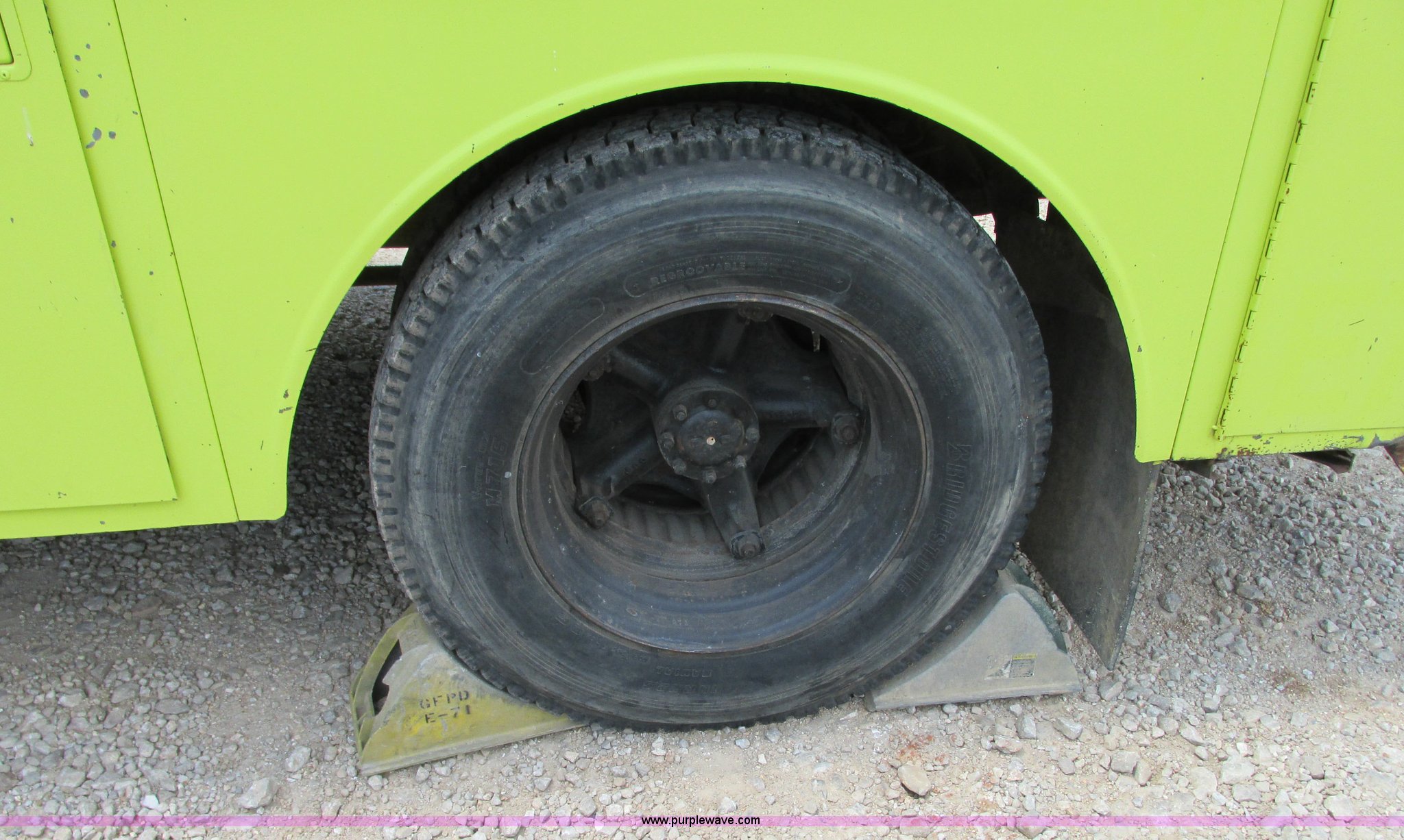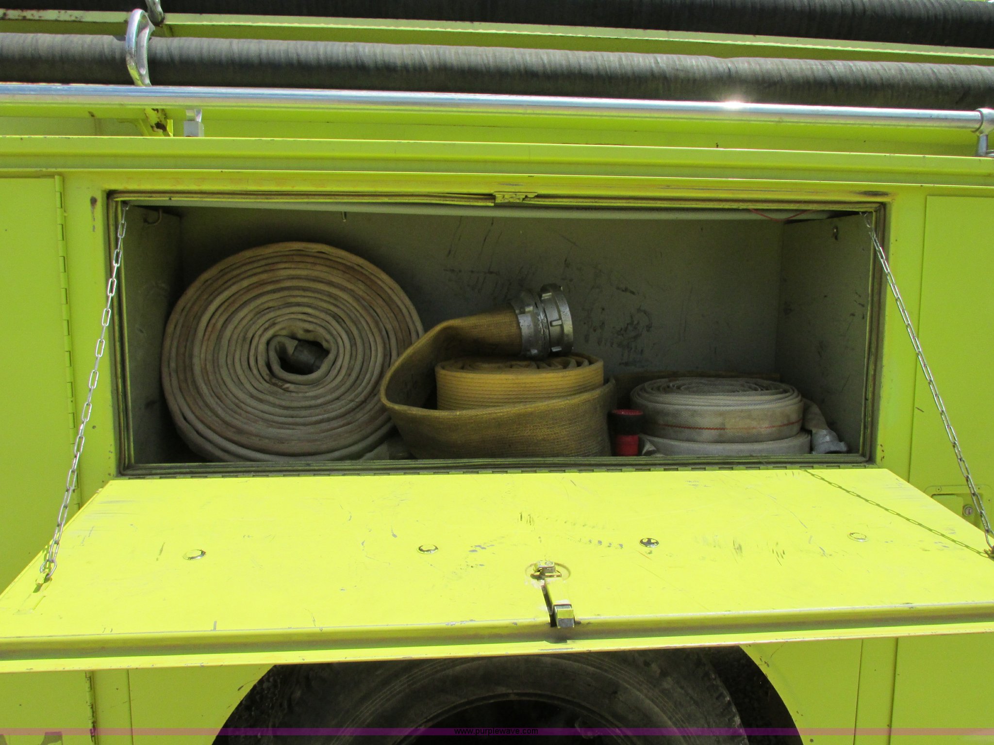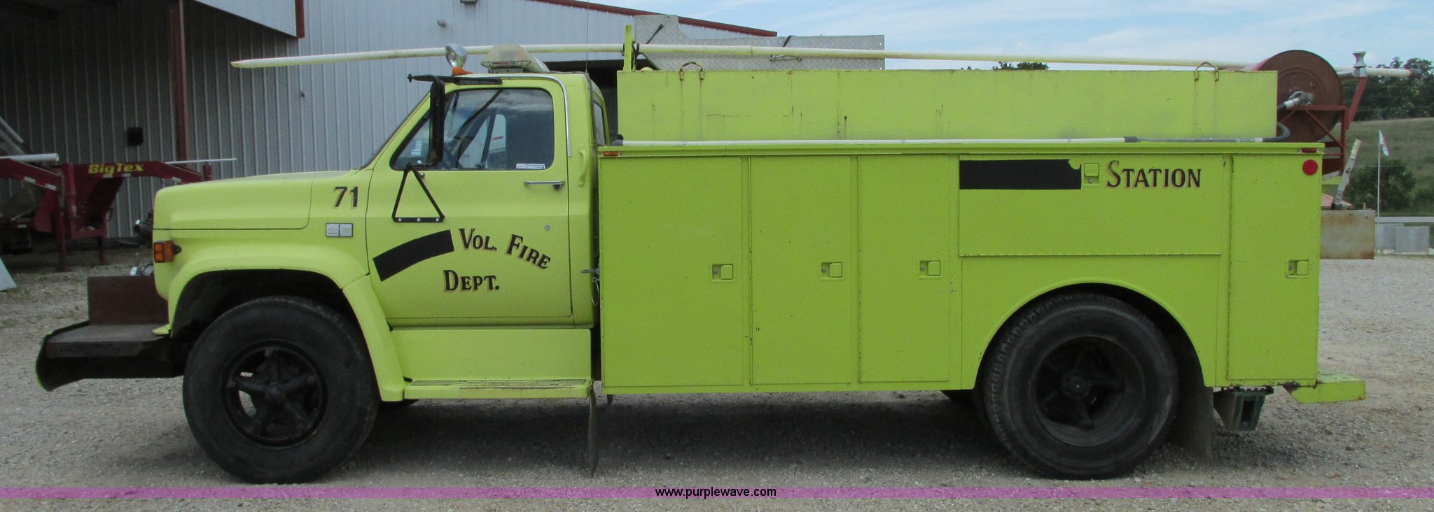Purple Wave is selling a used Fire Truck or Emergency Vehicle in Missouri. This item is a 1983 Chevrolet Kodiak C70 fire truck with the following: 108,596 miles on odometer, 6.0L V8 gas engine, Five speed manual transmission, Two speed rear end, Heat, Manual windows and locks, Vinyl interior, Rubber floor, Knapheide 6147H utility bed, 1,500 gallon water tank, Front mount Durley water pump, 500 gpm, Rear dump chute, 12V electric hose reel, (2) 10'L 4" diameter suction hose, 2.5" diameter hose, 1.5" diameter hose