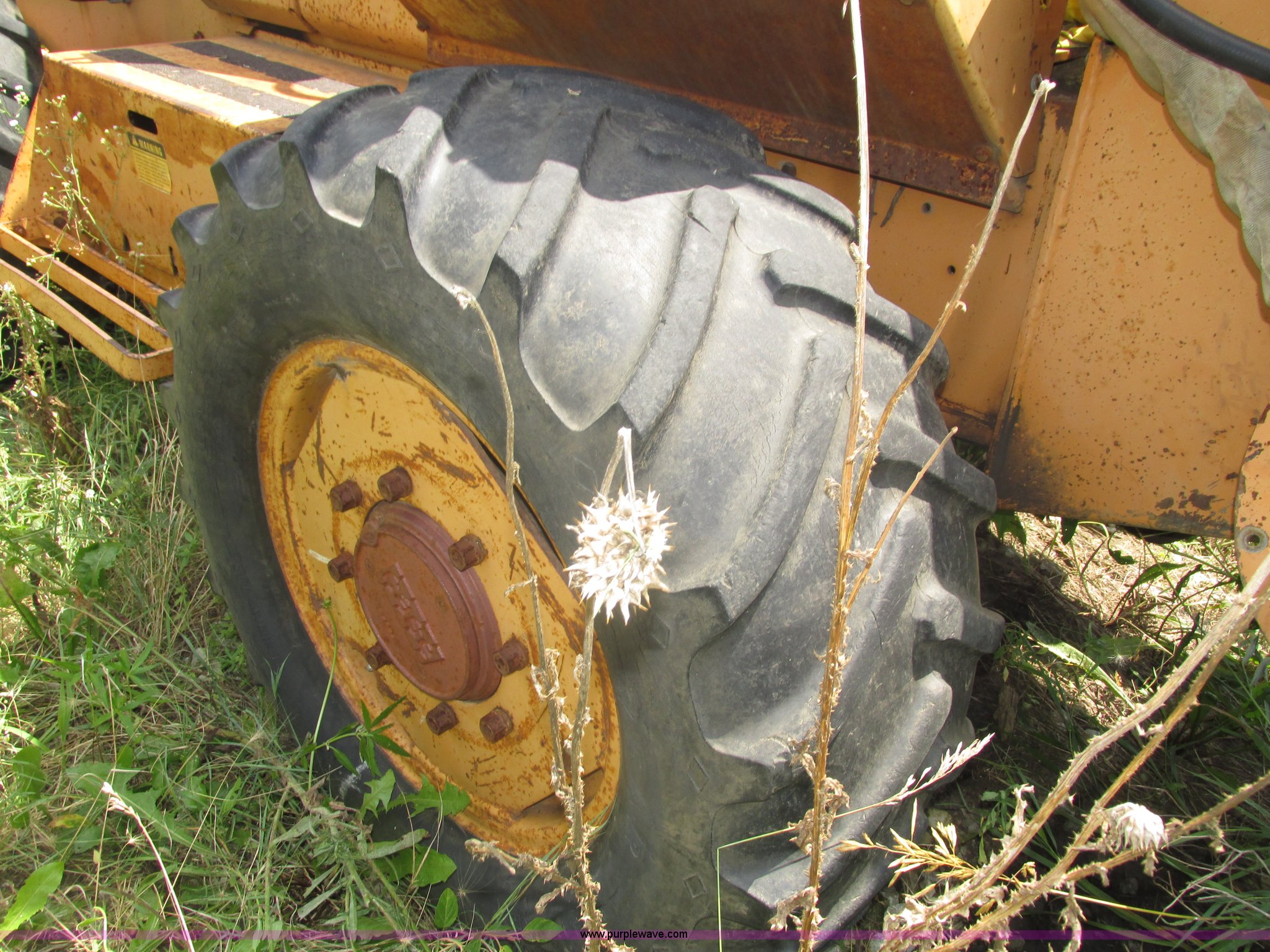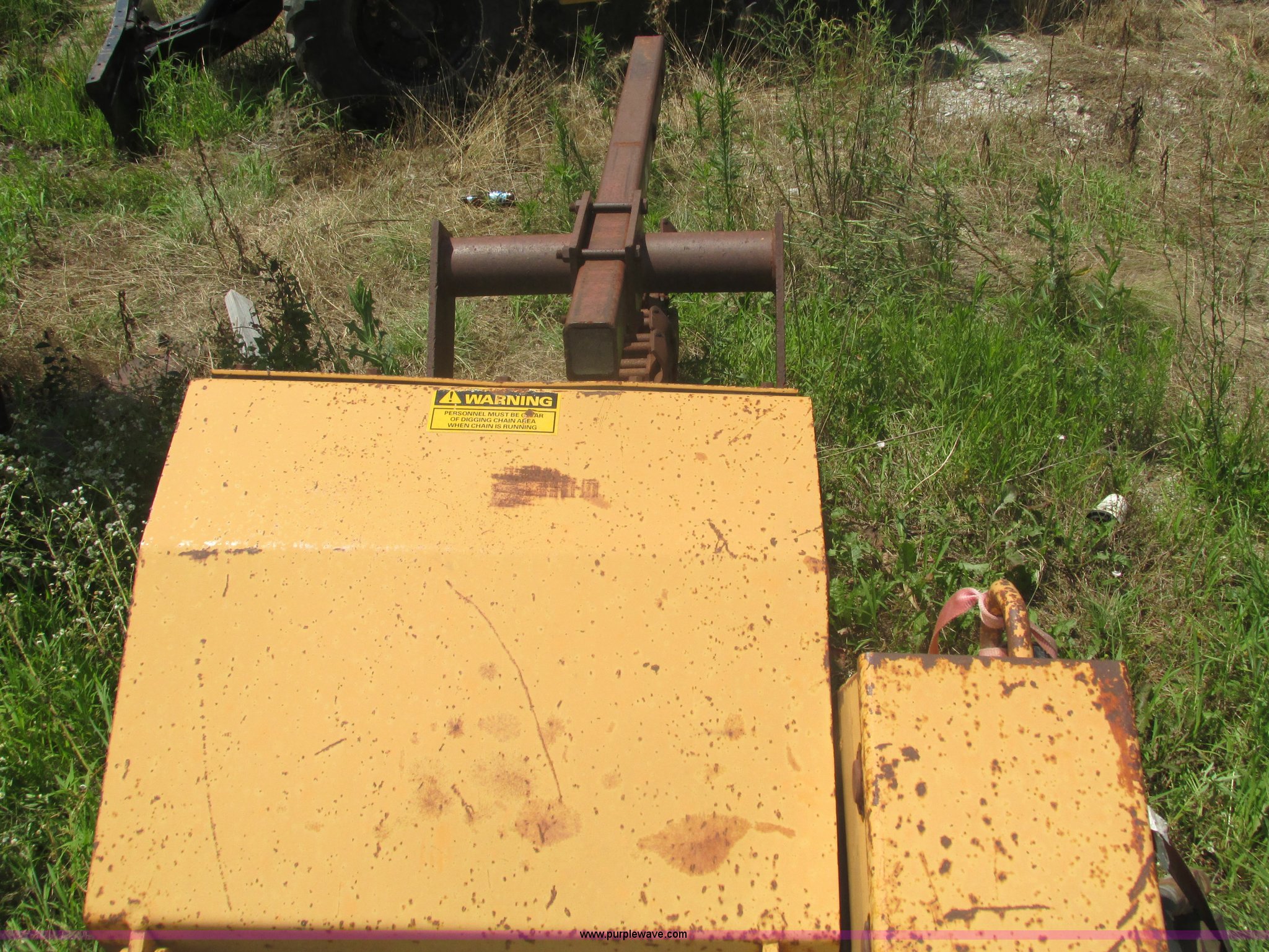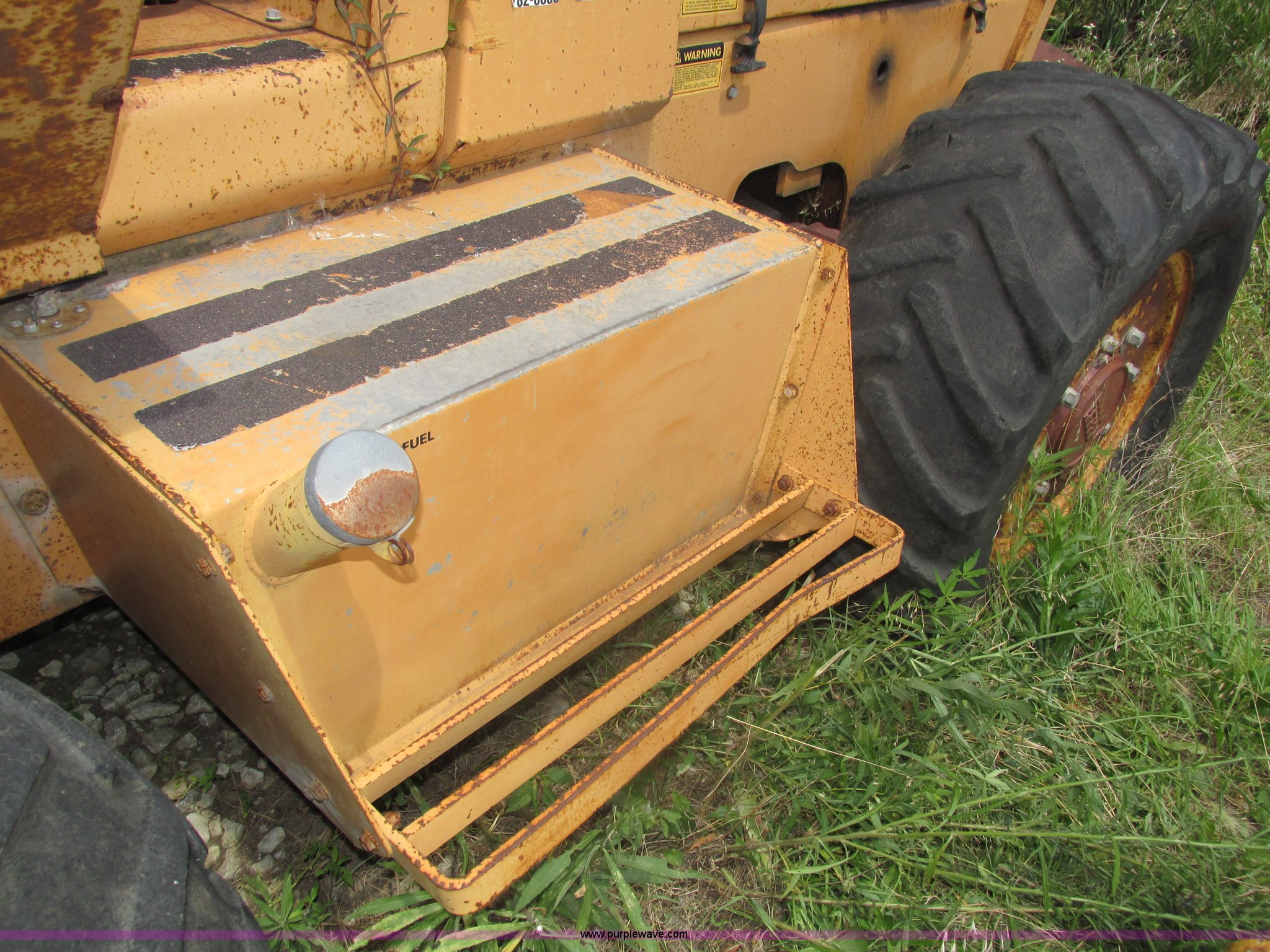 Purple Wave is selling a used Trencher or Rock Saw in Nebraska. This item is a 1988 Case 760 trencher with the following: 2,596 hours on meter, Four cylinder diesel engine, Block heater, 8' trenching boom, Model H6714R, Serial JAF0005733, Approximately 7' digging depth, Recently replaced chain, Safety bar, Dual discharge augers, Six-way back fill blade, 81"W x 18"H, 38 x 14.00-20 tires, Unit will not move, Non-operational hydraulics, Serial JAF0003051