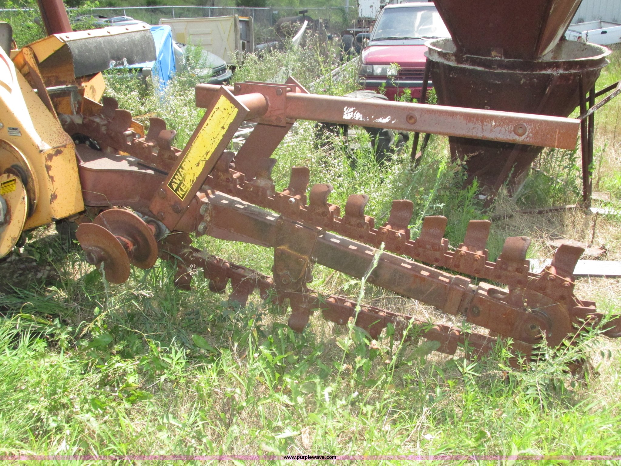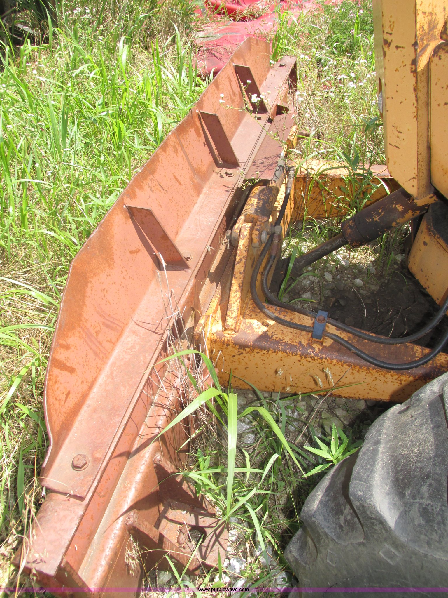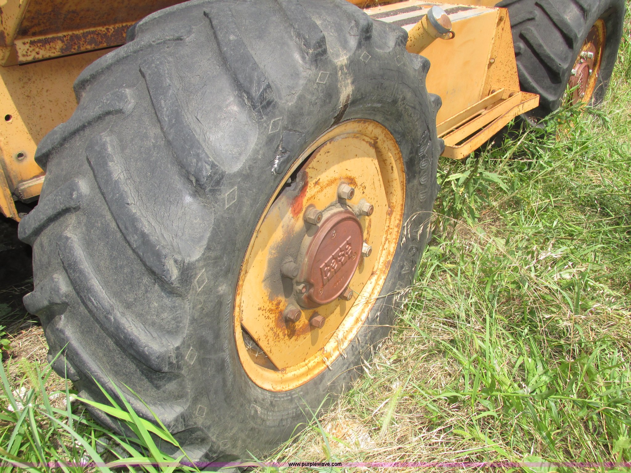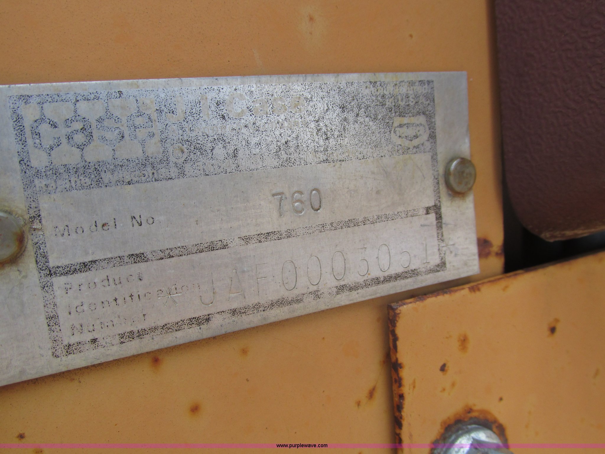 Purple Wave is selling a used Trencher or Rock Saw in Nebraska. This item is a 1988 Case 760 trencher with the following: 2,596 hours on meter, Four cylinder diesel engine, Block heater, 8' trenching boom, Model H6714R, Serial JAF0005733, Approximately 7' digging depth, Recently replaced chain, Safety bar, Dual discharge augers, Six-way back fill blade, 81"W x 18"H, 38 x 14.00-20 tires, Unit will not move, Non-operational hydraulics, Serial JAF0003051