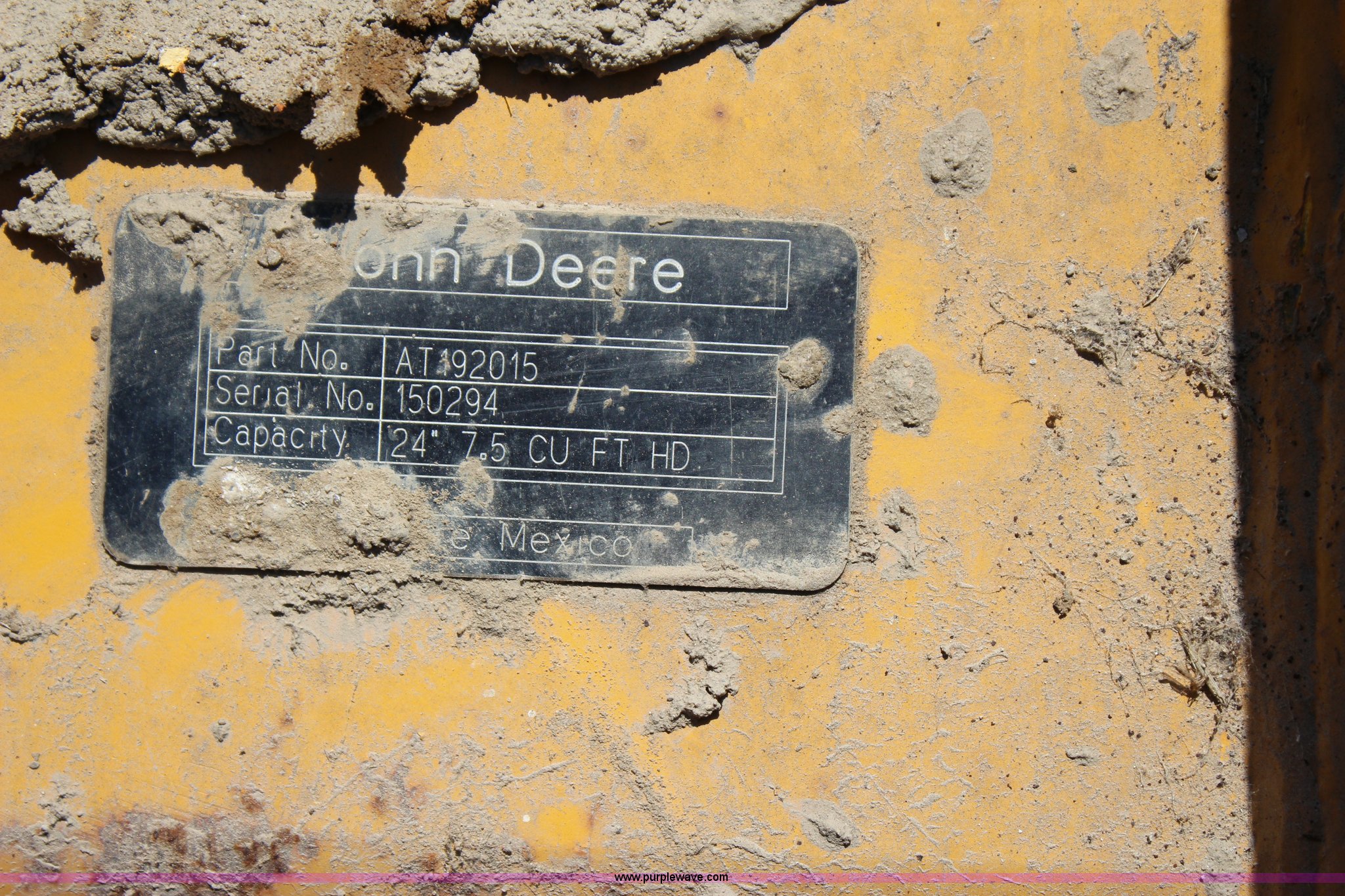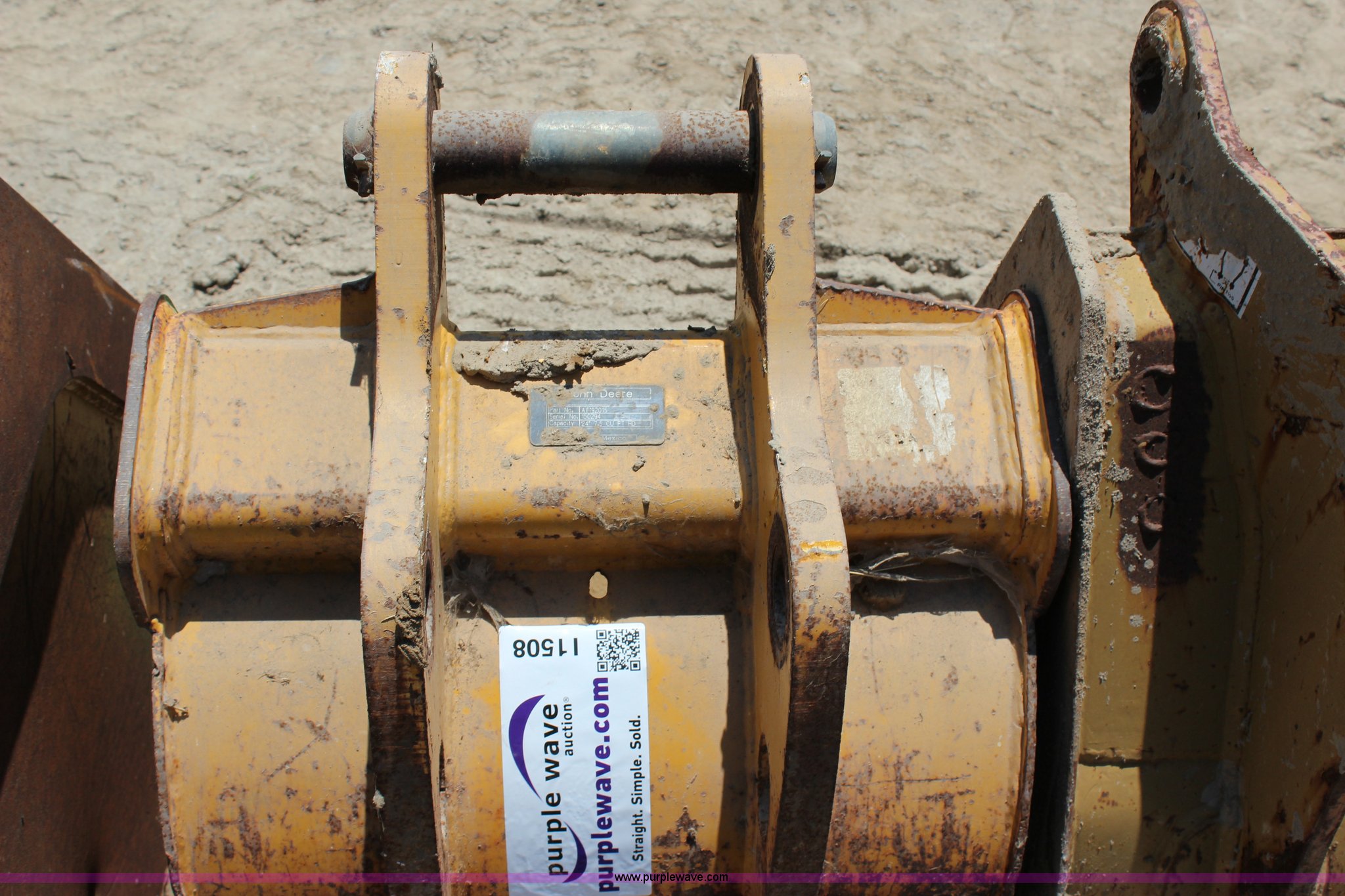 Purple Wave is selling a used Backhoe Attach. in Oklahoma. This item is a John Deere AT92015 backhoe bucket with the following: 24"W, 7.5 cubic foot capacity, (5) cutting teeth, 2" pins, Serial 150294
