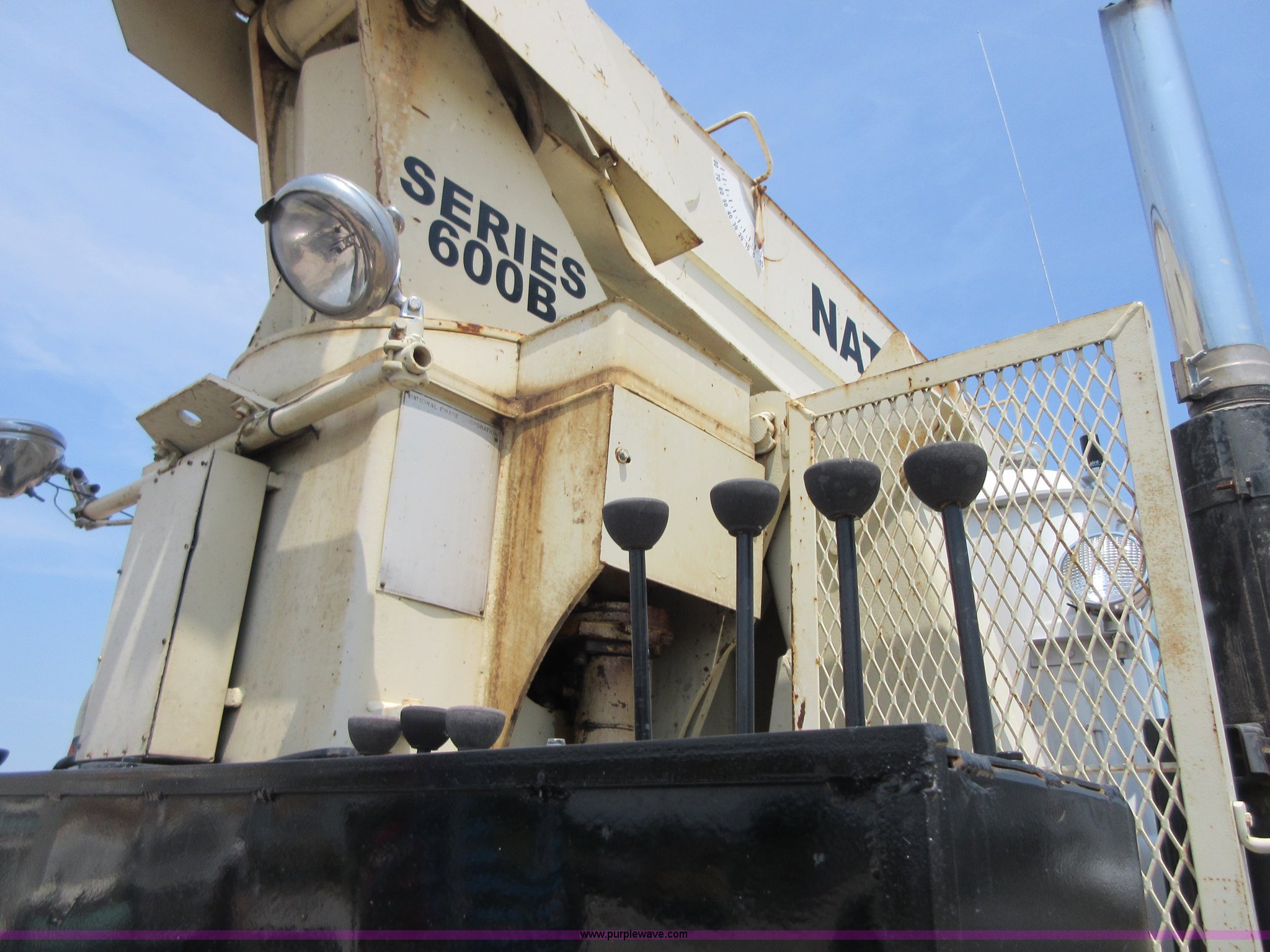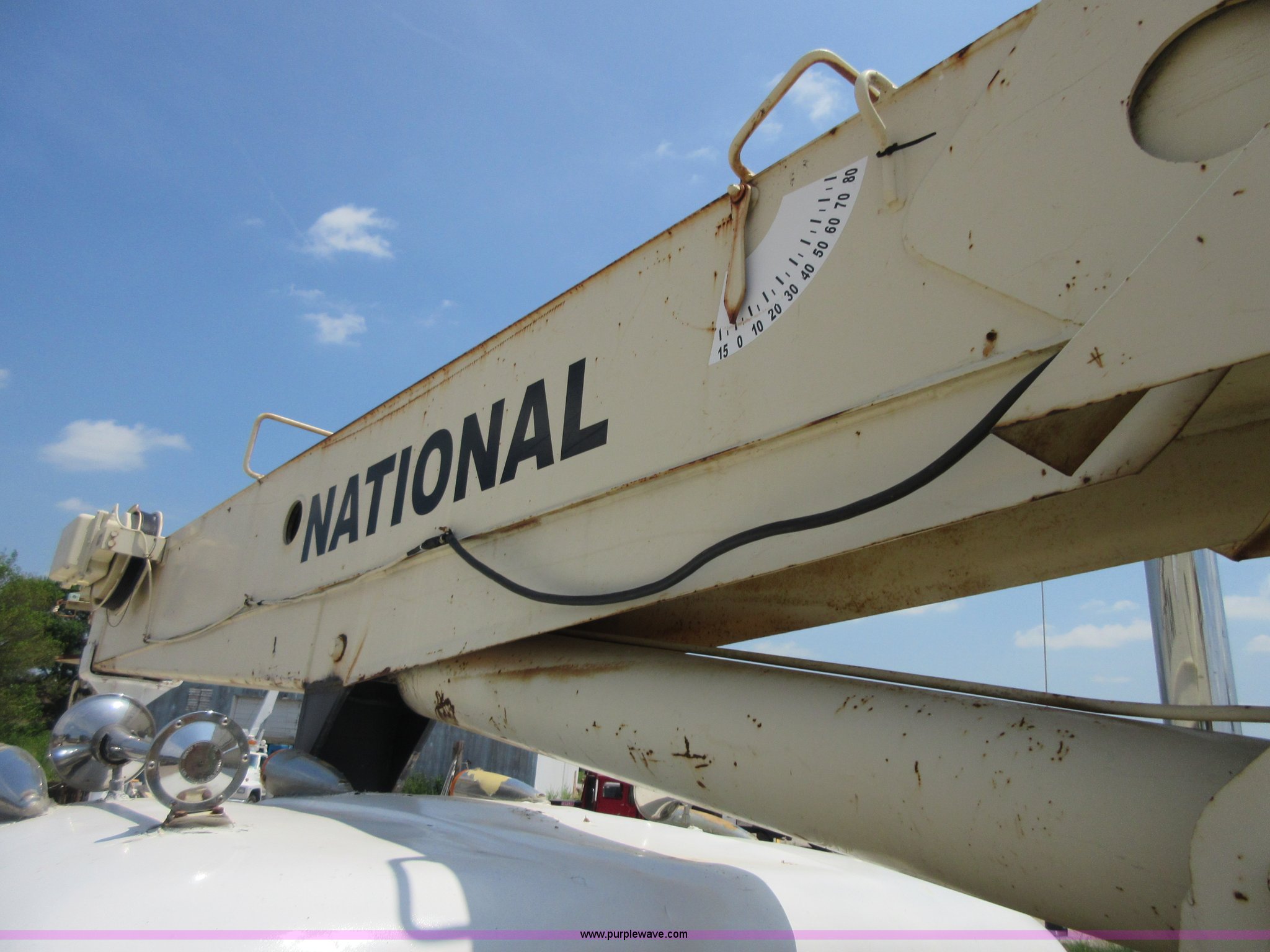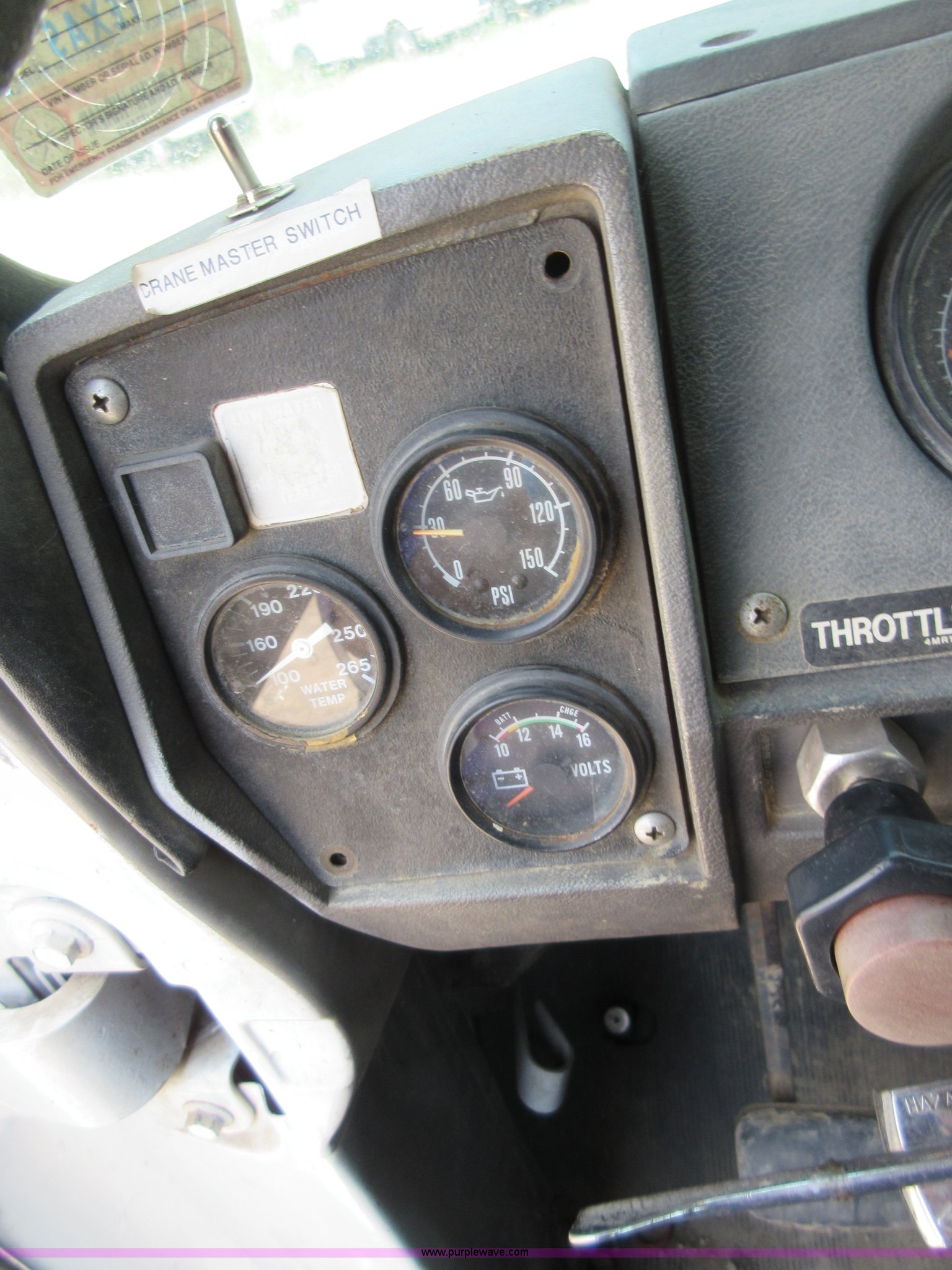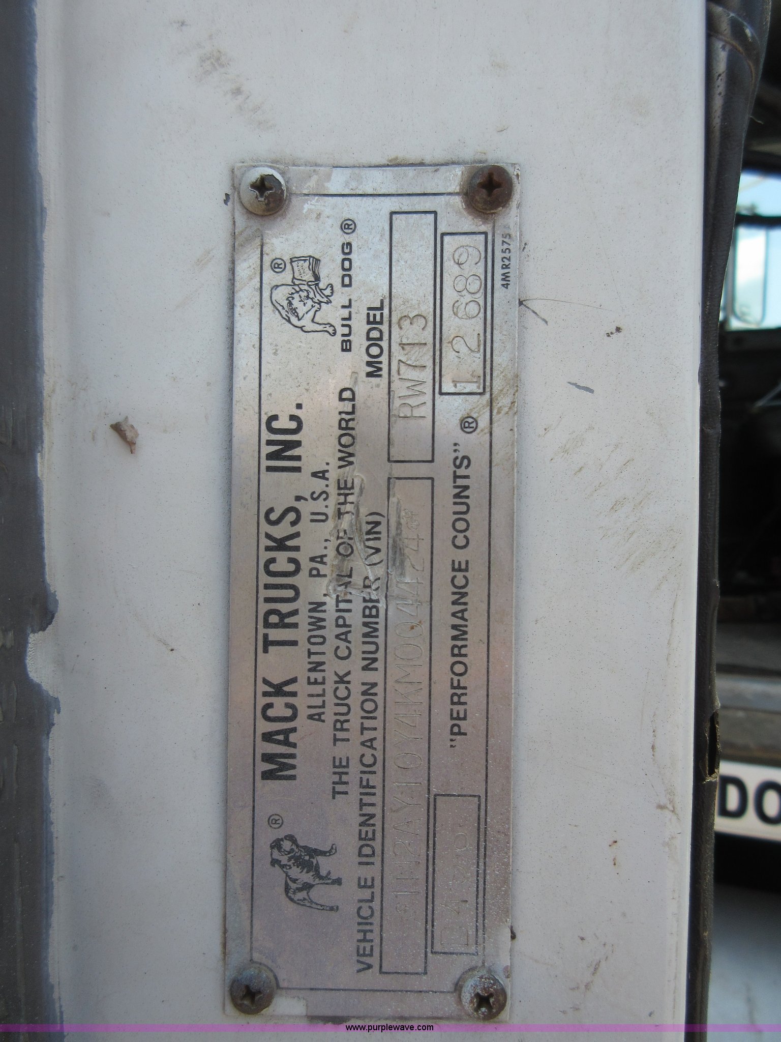 Purple Wave is selling a used Crane Truck in Oklahoma. This item is a 1989 Mack RW713 crane truck with the following: 688,062 miles on odometer, Mack E6 11.0L L6 turbo diesel engine, Manual transmission, Tandem axle, AC and heat, Air suspension seat, Trailer brake controller, PTO, National 638B crane, Serial 20374, 49' maximum lift height, 28,000 lbs maximum lift capacity, Outriggers, Boom rotation, Telescopic boom type, Dual fuel tanks, Single exhaust stack, Camelback spring suspension, Air brakes, Engine brake, 225" wheelbase, 425/65R22.5 front tires, 11R24.5 rear tires, GVWR 64,000 lbs, FAWR 20,000 lbs, IAWR 22,000 lbs, RAWR 22,000 lbs