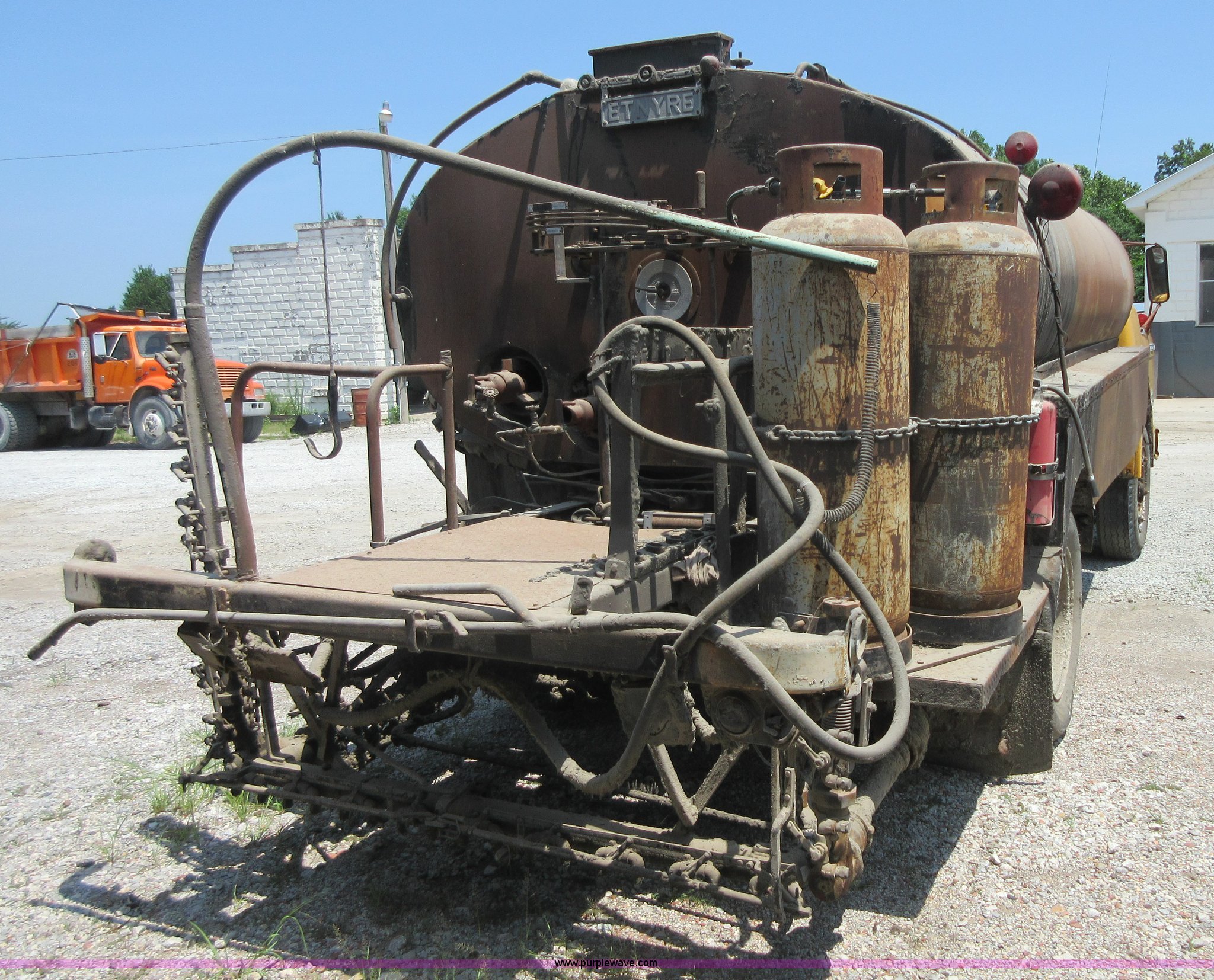 Purple Wave is selling a used Oil Distributor Truck in Kansas. This item is a 1968 Ford G612 oil distributor truck with the following: 84,096 miles on odometer, Five speed manual transmission, Two speed rear end, Single axle, Heat, Suspension seat, PTO, Etnyre Black-Topper oil distributor bed, Model DBT-HS, 2,050 gallon tank, (2) propane burners, Rear controls for lift and shift, Serial J-2553, Spring suspension, Hydraulic brakes, 9.00-20 tires, GVWR 23,000 lbs, Unit# 235