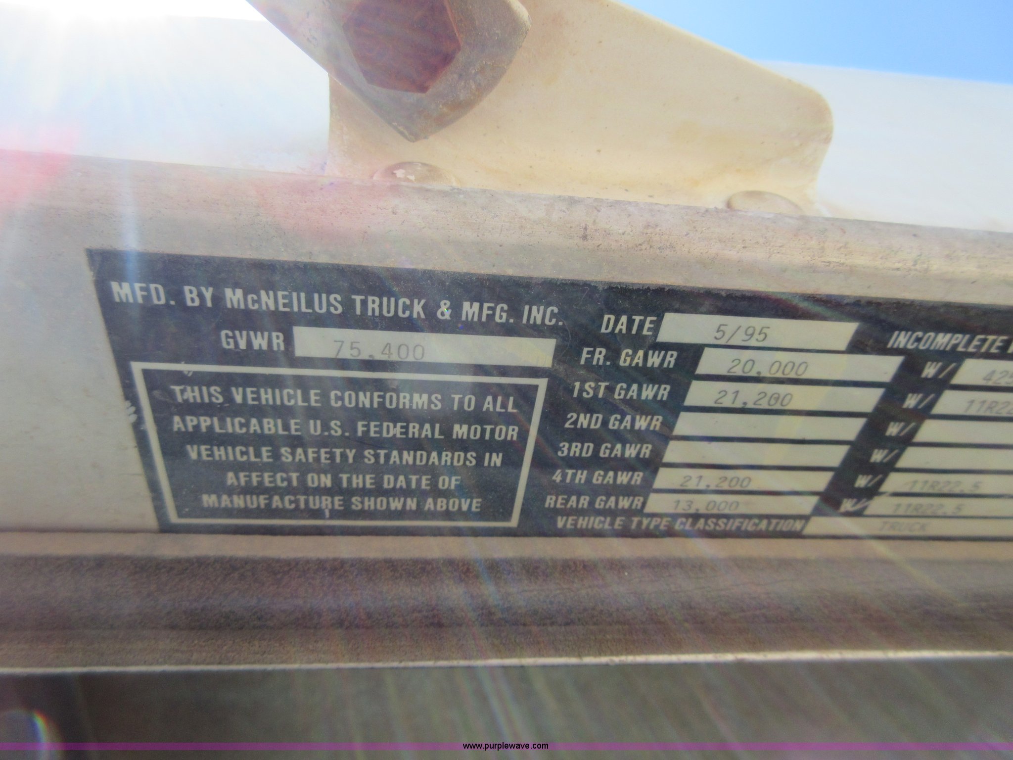 Purple Wave is selling a used Ready Mix or Pump Truck in Kansas. This item is a 1995 Kenworth W900B mixer truck with the following: 231,770 miles on odometer, 6,096 hours on meter, Miles and hours may vary, still in use, Cummins M11 10.8L L6 turbo diesel engine, 330 HP, Serial 34764019, Eaton Fuller RTO14709MLL 11 speed manual transmission, Tandem axle, Heat, Cruise, Air suspension seat, Live PTO, McNeilus mixer bed, 10.5 cu. yd. capacity, (3) 4' chute extensions, Left side ladder, 150 gallon water tank, Single rear exhaust stack, Mud flaps, Walking beam suspension, Air brakes, 249" wheelbase, 35'8"L with tag axle down, Bridgemaster steerable tag axle, 425/65R22.5 front tires, 11R22.5 rear tires, GVWR 75,400 lbs, FAWR 20,000 lbs, IAWR 21,200 lbs, RAWR 21,200 lbs, 13,000 lbs tag axle, Unit# 144