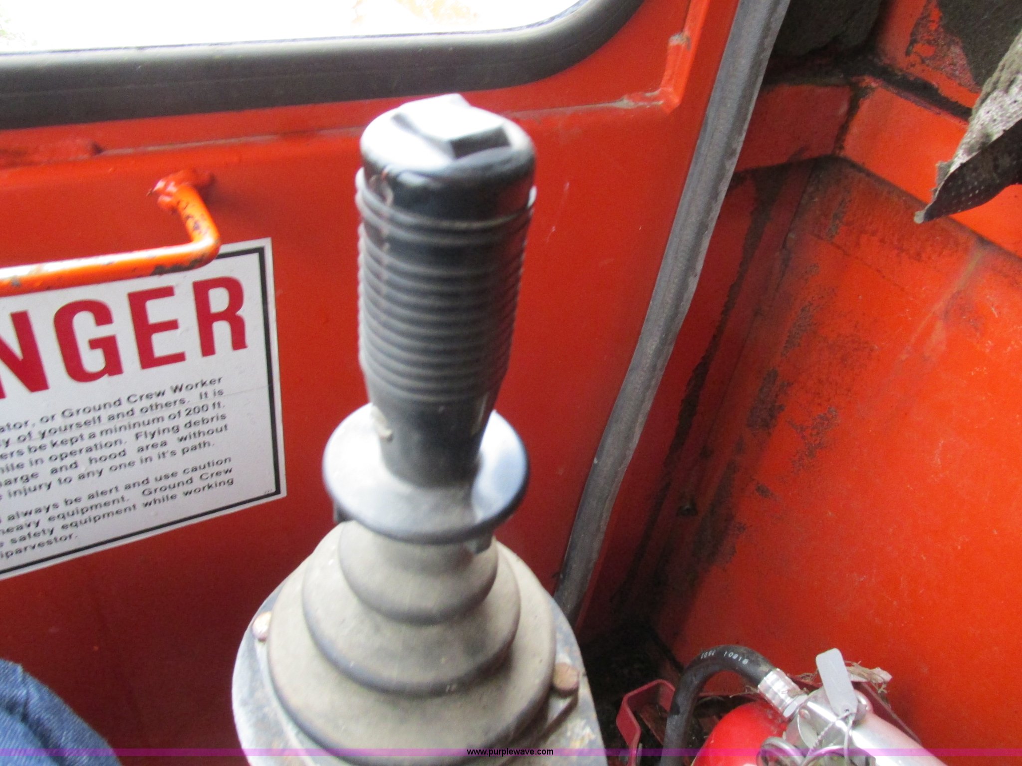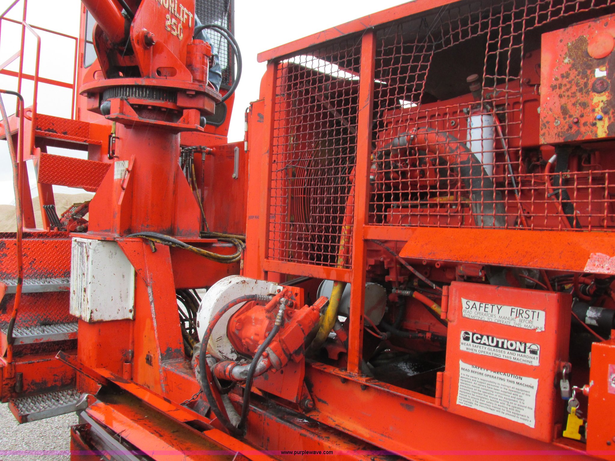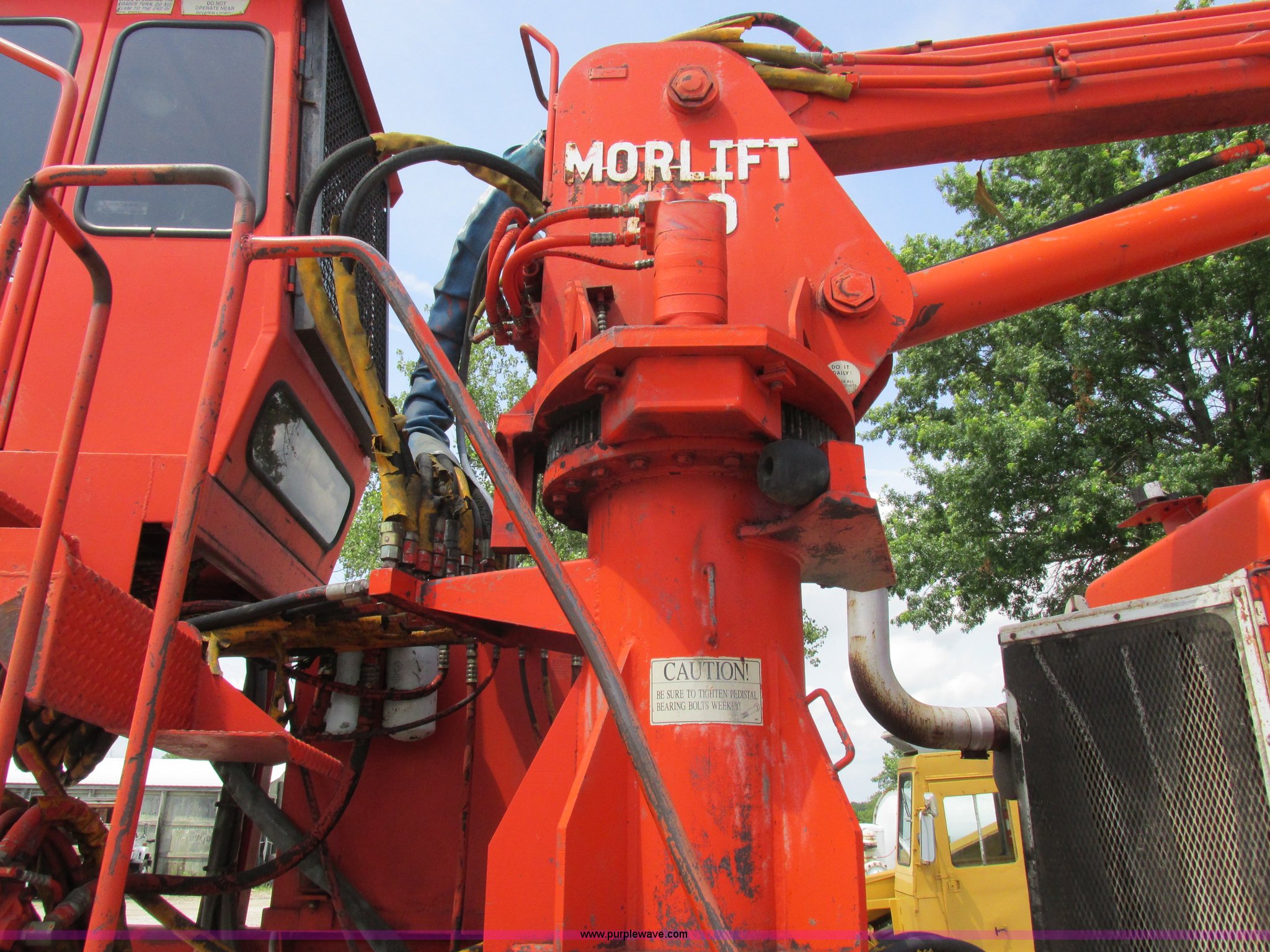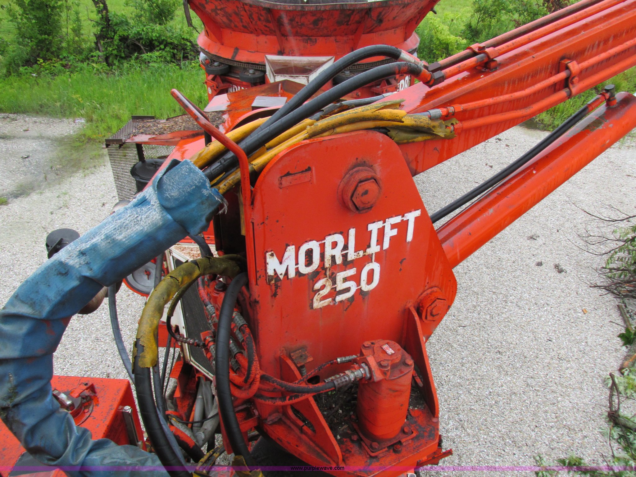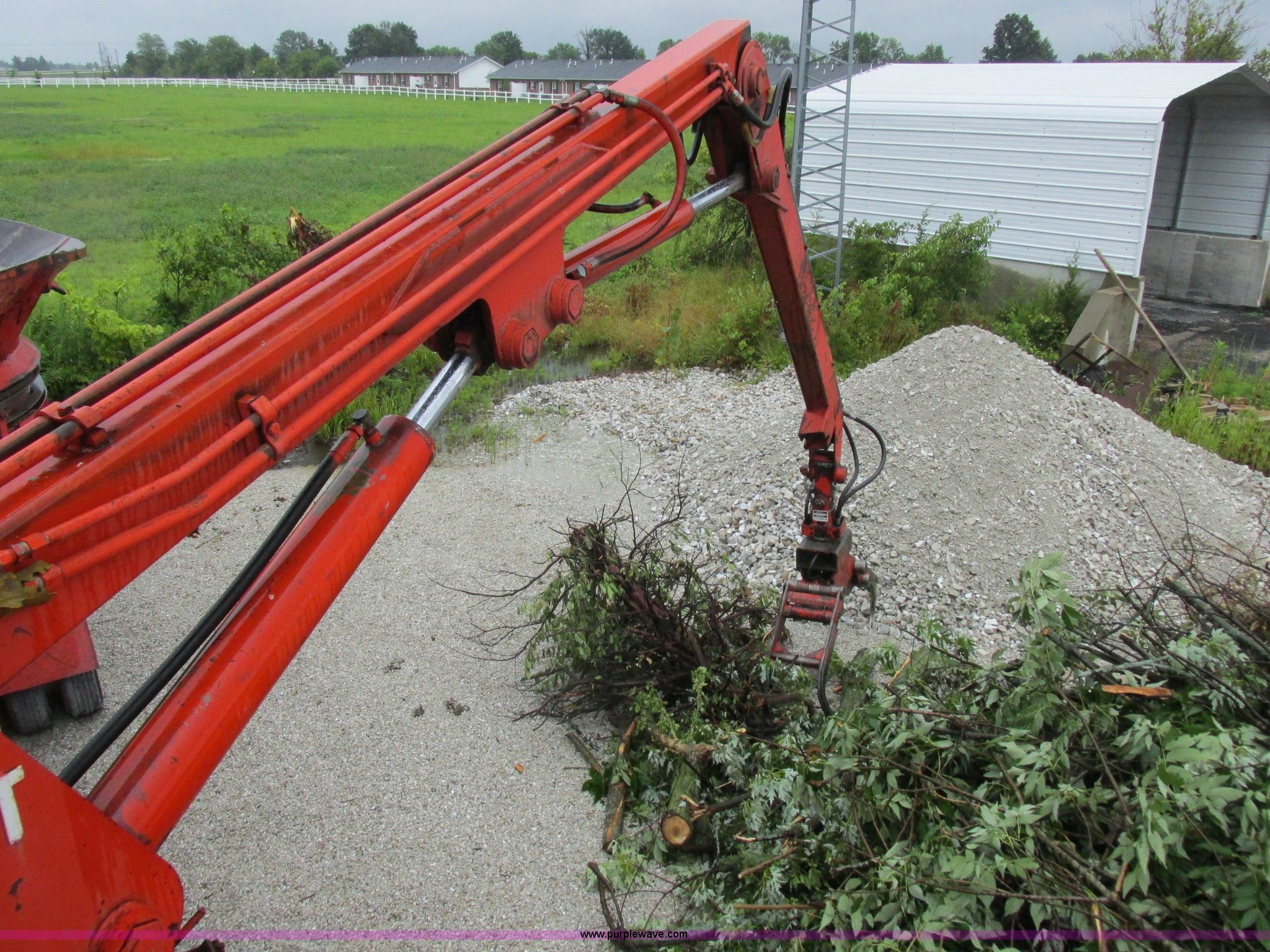 Purple Wave is selling a used Shredder in Missouri. This item is a 1994 Morbark 1050 tub grinder with the following: 2,182 hours on meter, Caterpillar 3406B six cylinder diesel engine, Serial 6TB1057, 10.5' diameter tub, Lever grinder controls, Auger discharge, 24'L x 28"W conveyor belt, Morelift 250 knuckle boom loader, Serial 869-186, Joystick loader controls, Grapple hooks, Stabilizer legs, Approximately 38'L x 8.5'W x 13'4"H transport dimensions, Fifth wheel plate, Tandem axle, 215/75R17.5 tires