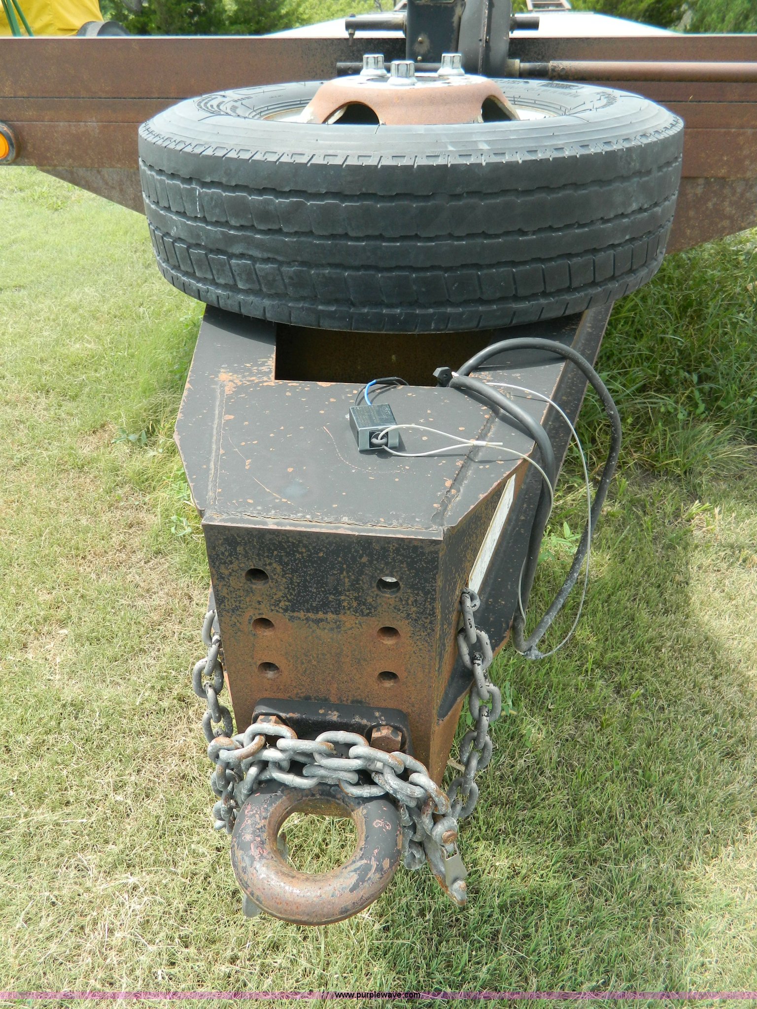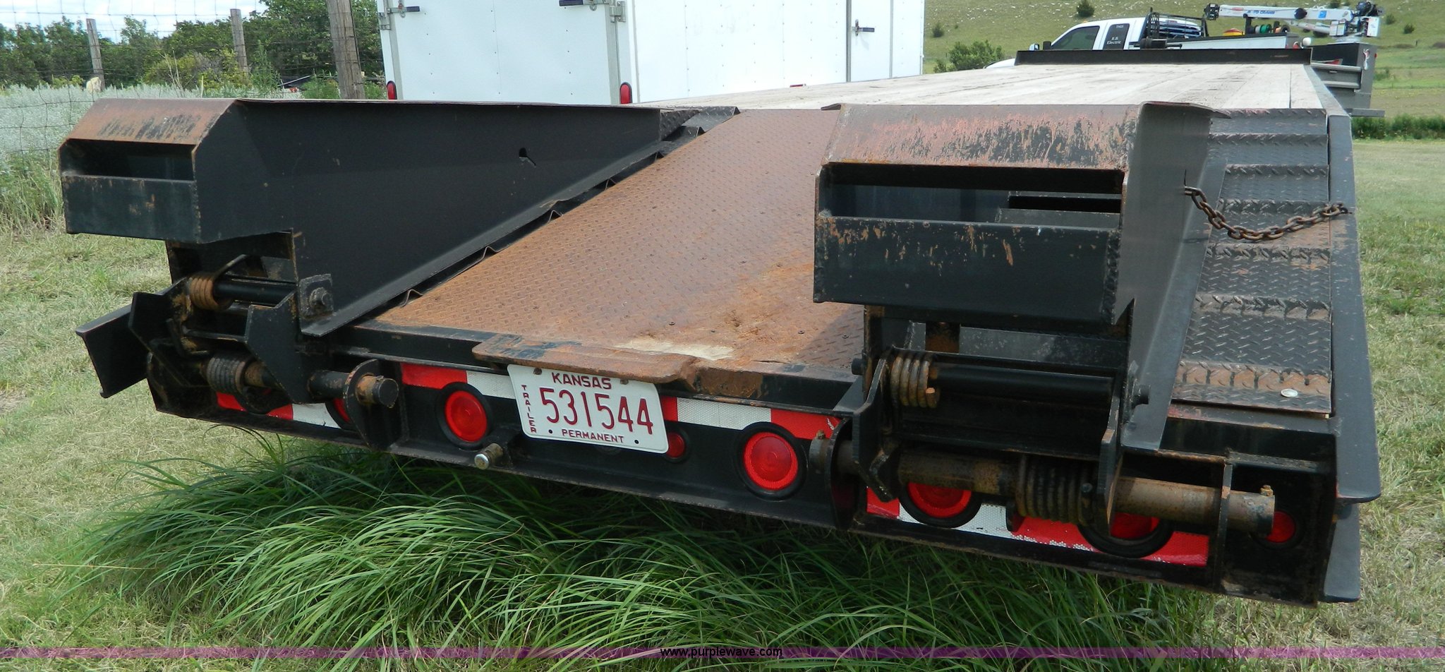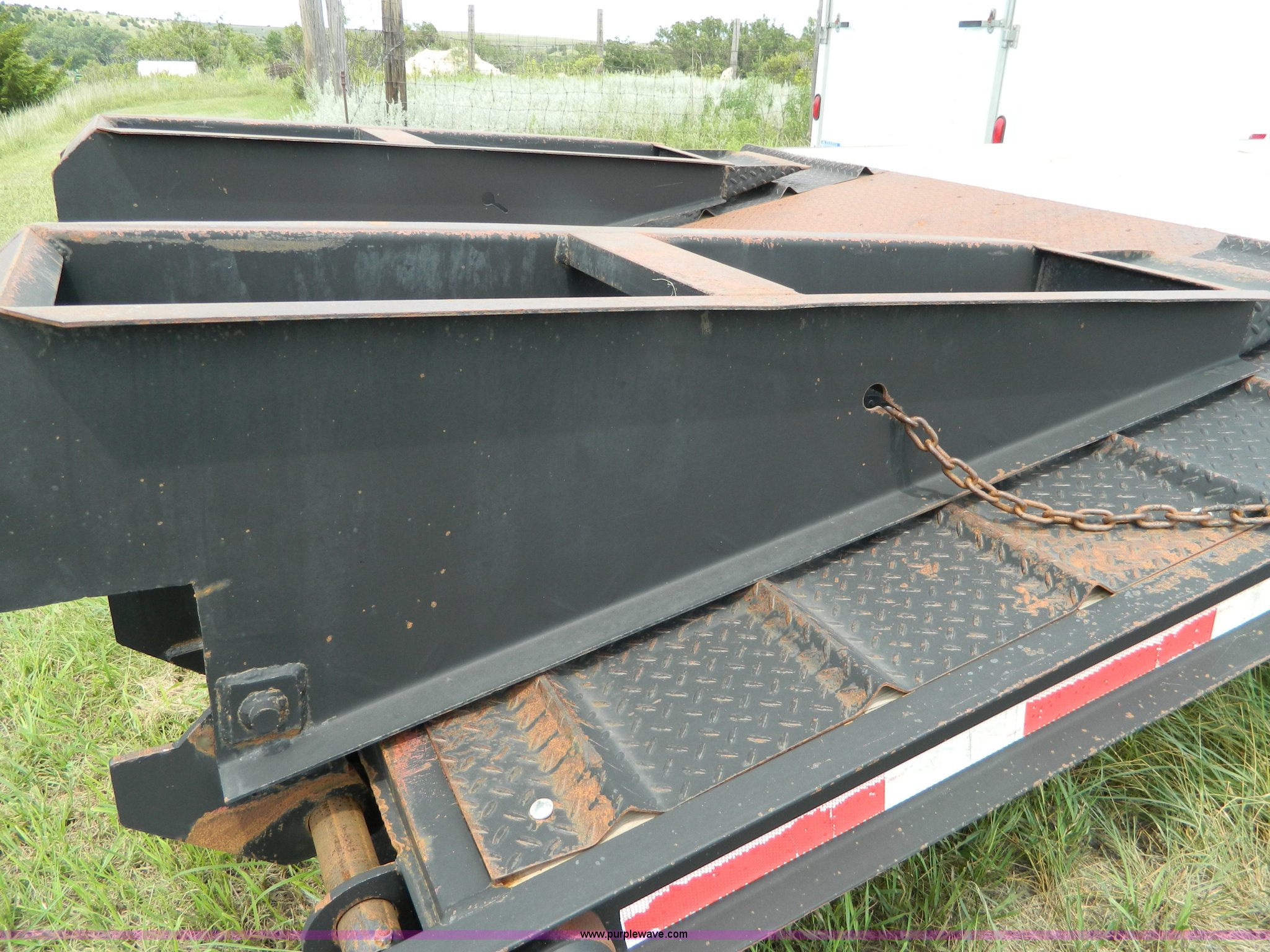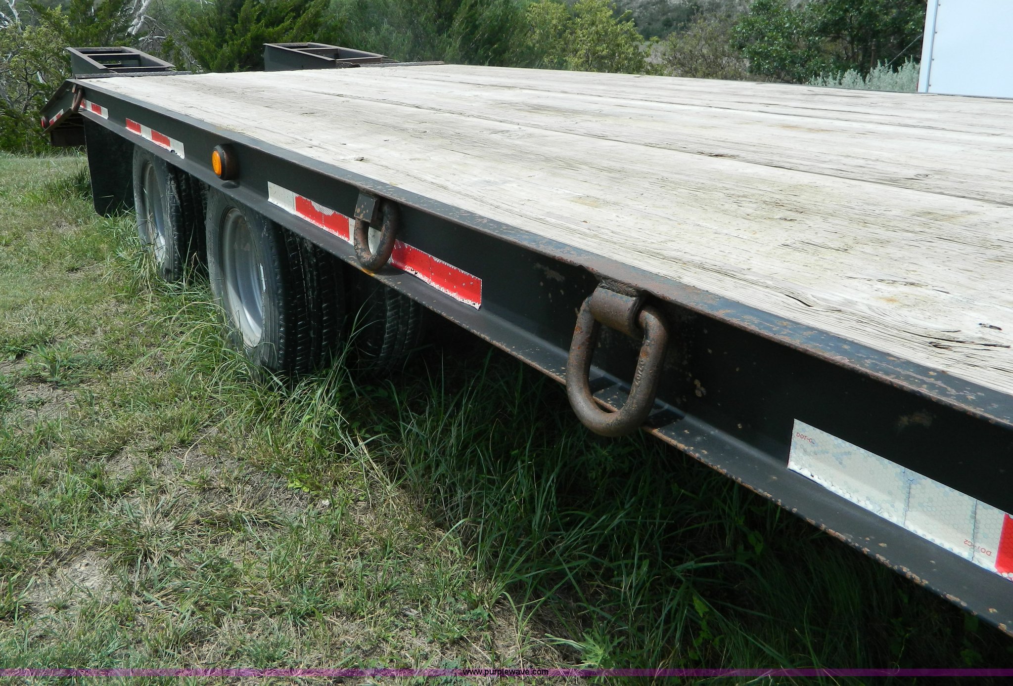 Purple Wave is selling a used Equip. Trailer in Kansas. This item is a 2010 Belshe equipment trailer with the following: 24'L x 8'W wood deck, 6.5'L dovetail, 6'L ramps, (8) D-ring tie downs, Single leg landing gear, Spring suspension, Electric brakes, Tandem axle, 235/85R16 tires, GVWR 22,000 lbs