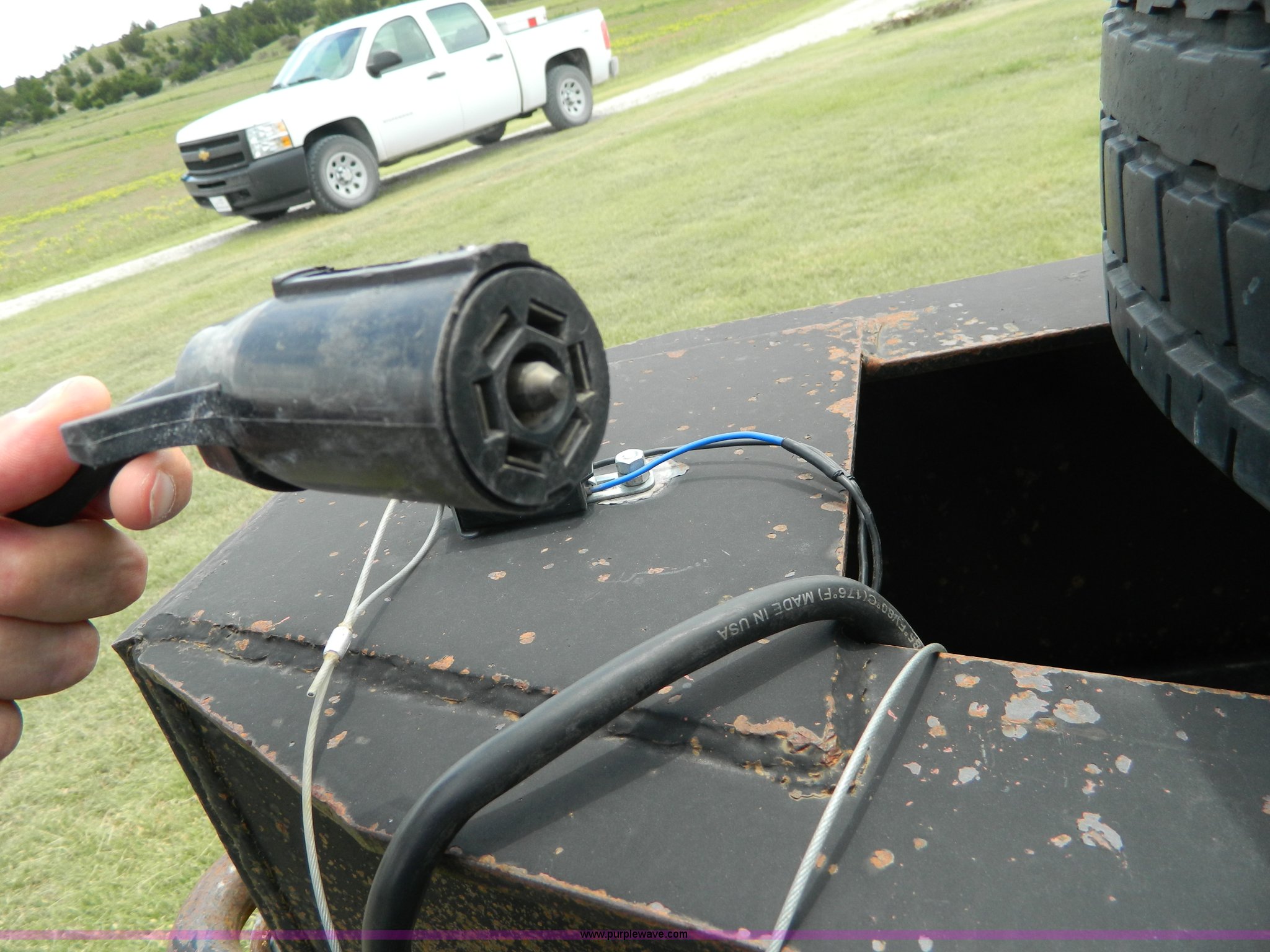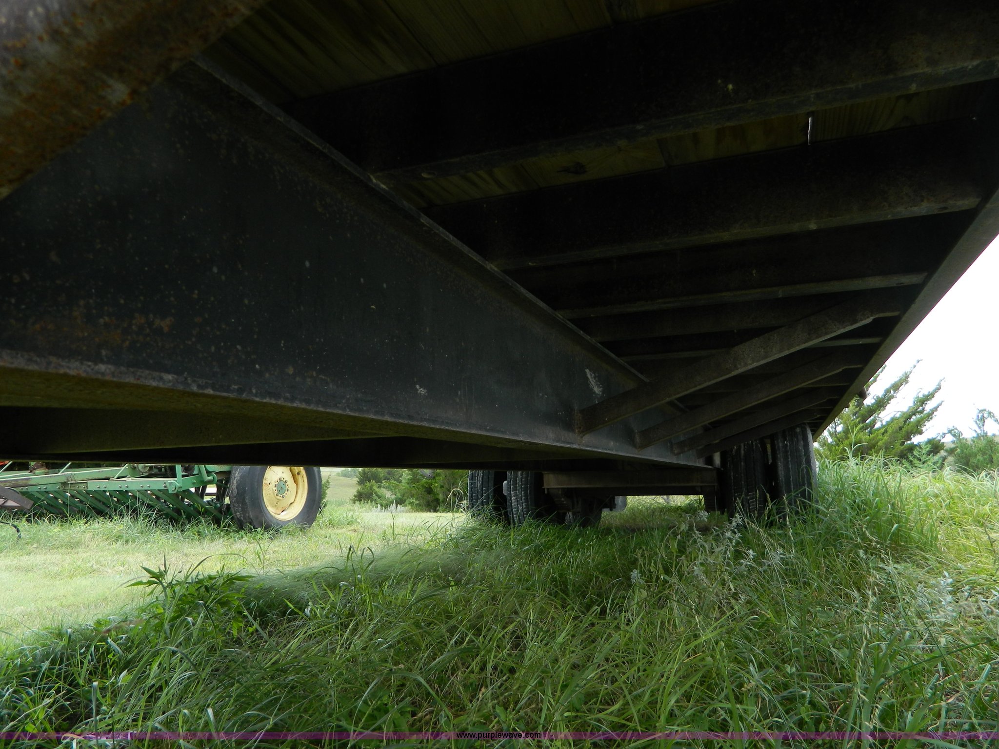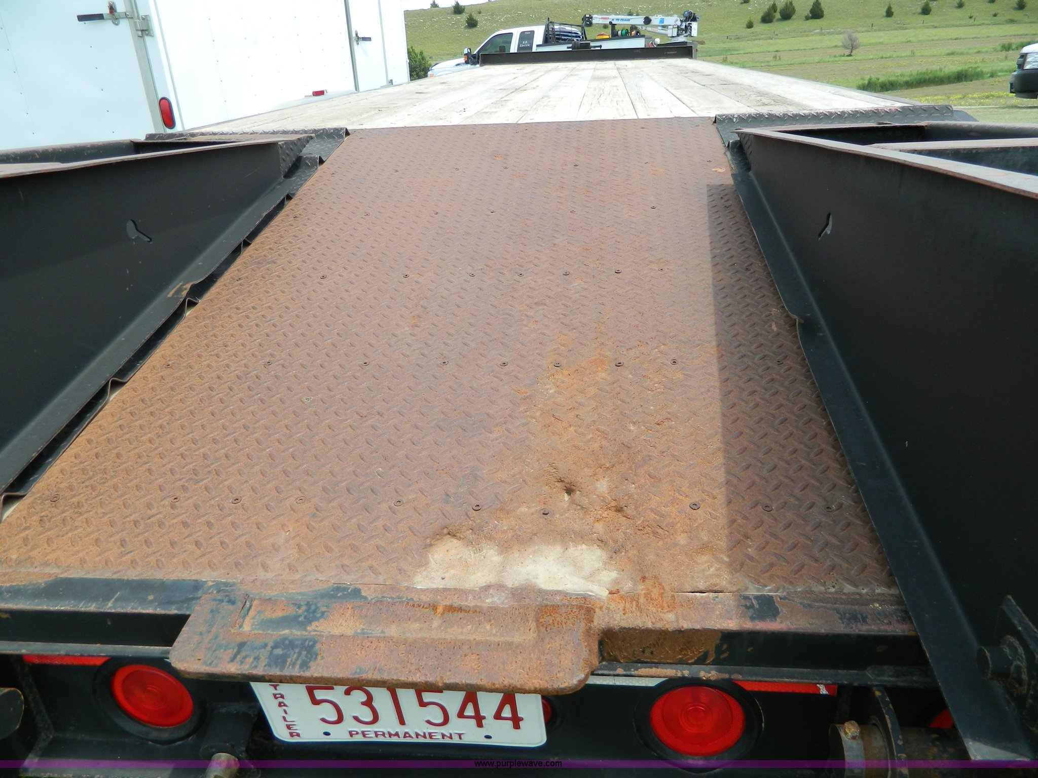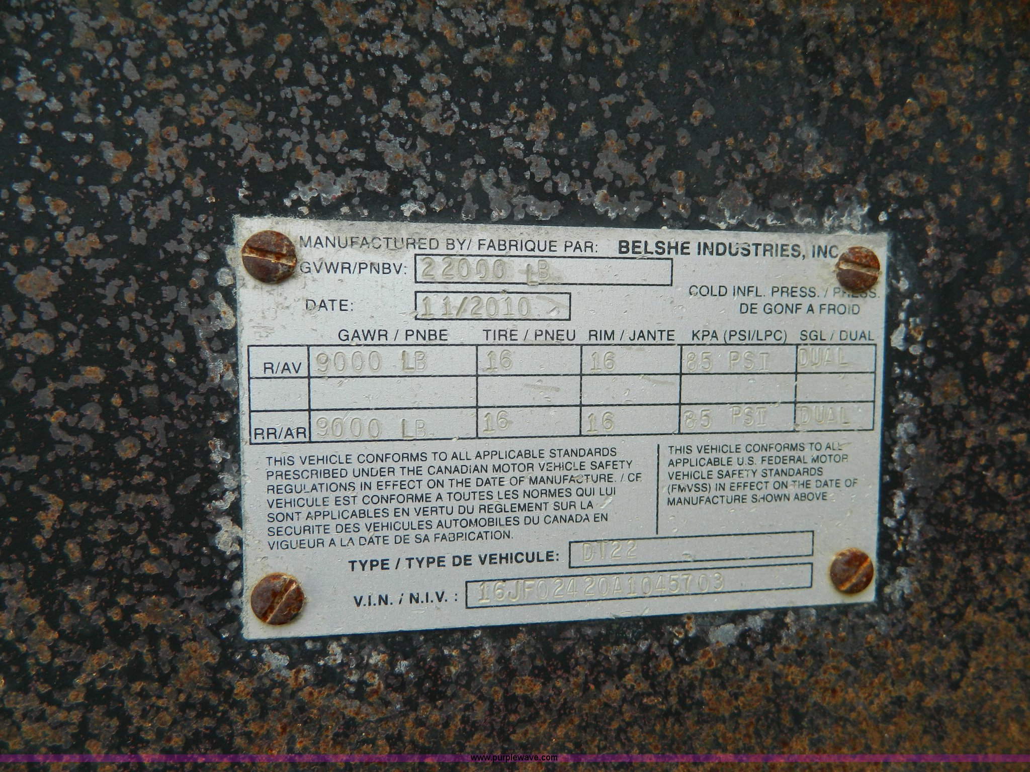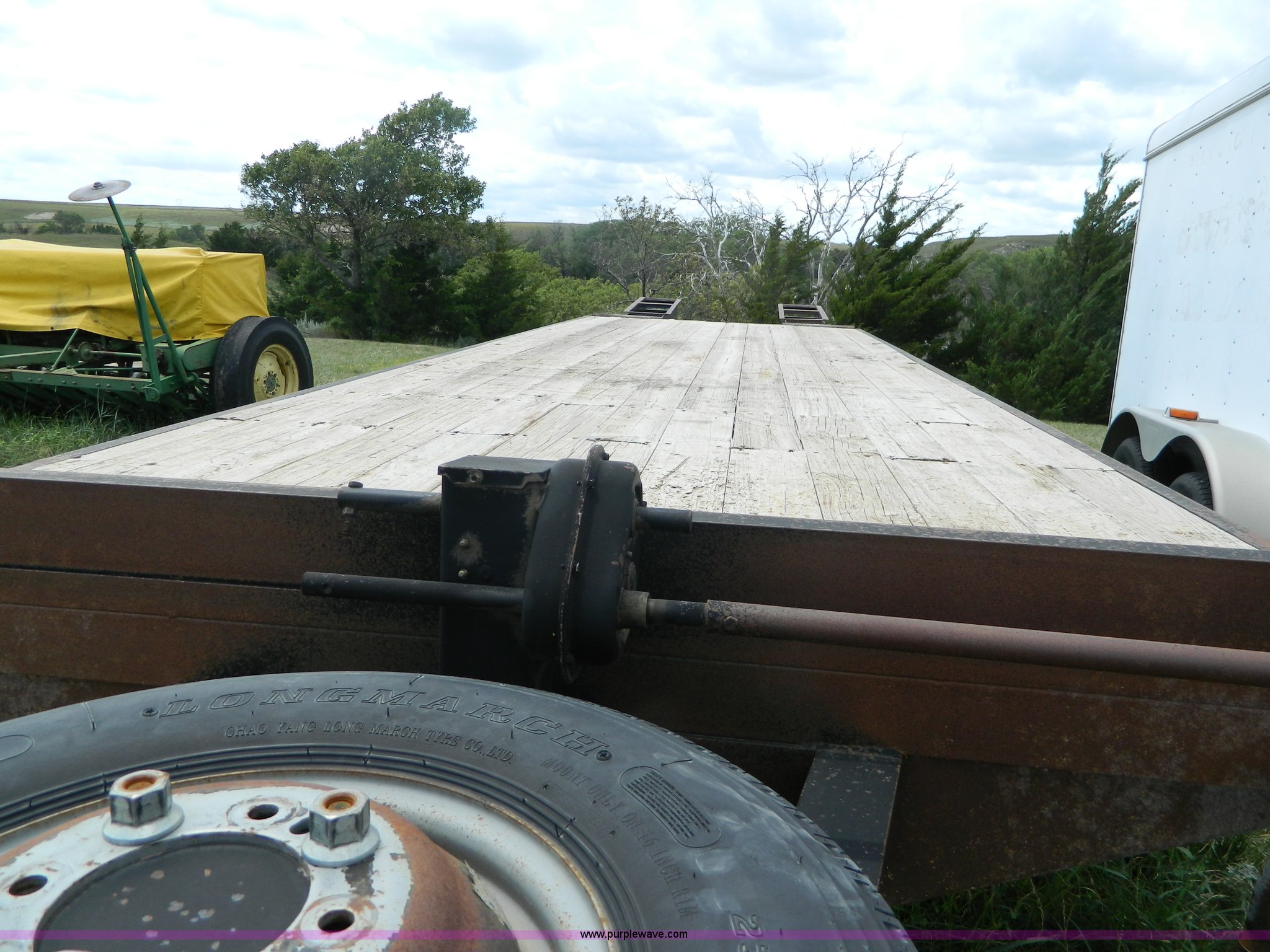 Purple Wave is selling a used Equip. Trailer in Kansas. This item is a 2010 Belshe equipment trailer with the following: 24'L x 8'W wood deck, 6.5'L dovetail, 6'L ramps, (8) D-ring tie downs, Single leg landing gear, Spring suspension, Electric brakes, Tandem axle, 235/85R16 tires, GVWR 22,000 lbs