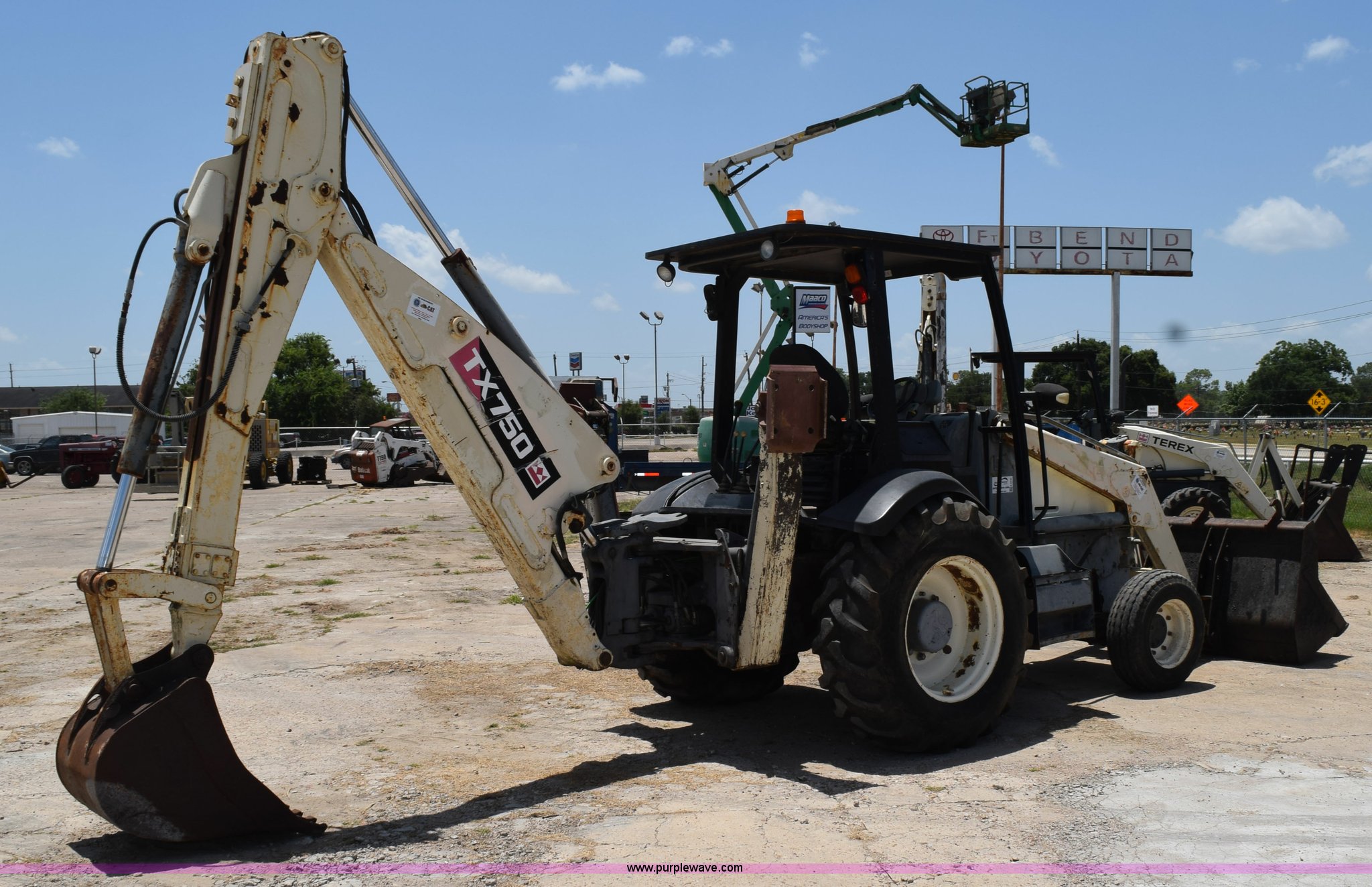 Purple Wave is selling a used Tractor Loader Backhoe in Texas. This item is a 2003 Terex 750 backhoe with the following: 2,876 hours on meter, Perkins four cylinder diesel engine, 58.5 kW, Shuttle shift transmission, 4F-4R gears, Four wheel drive, Canopy, Wobble stick backhoe controls, Front and rear work lights, 90"W loader bucket, Bolt-on cutting edge, E-stick, 23"W backhoe bucket, (5) teeth, 11-16 front tires, 16.9-28 rear tires, Serial SMFB42TR037BM8507