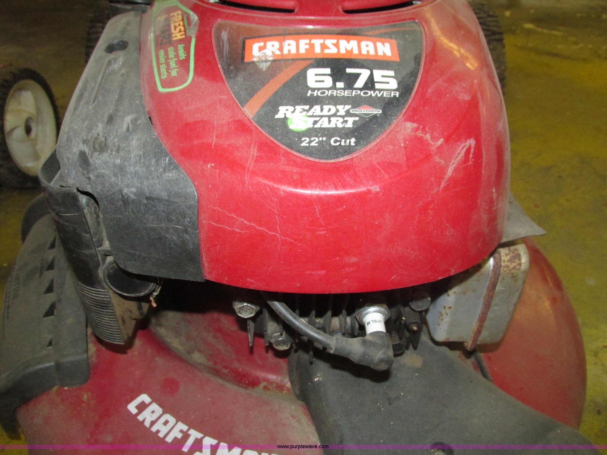 Purple Wave is selling a used Lawn Mower in Nebraska. This item is a (2) Craftsman lawn mowers with the following: Craftsman 22" self-propelled lawn mower, Briggs & Stratton 6.25 HP gas engine, Serial 041407M011559, Craftsman 22" self-propelled lawn mower, Briggs & Stratton 6.75 HP gas engine, Front wheel missing, Serial 032205M007214
