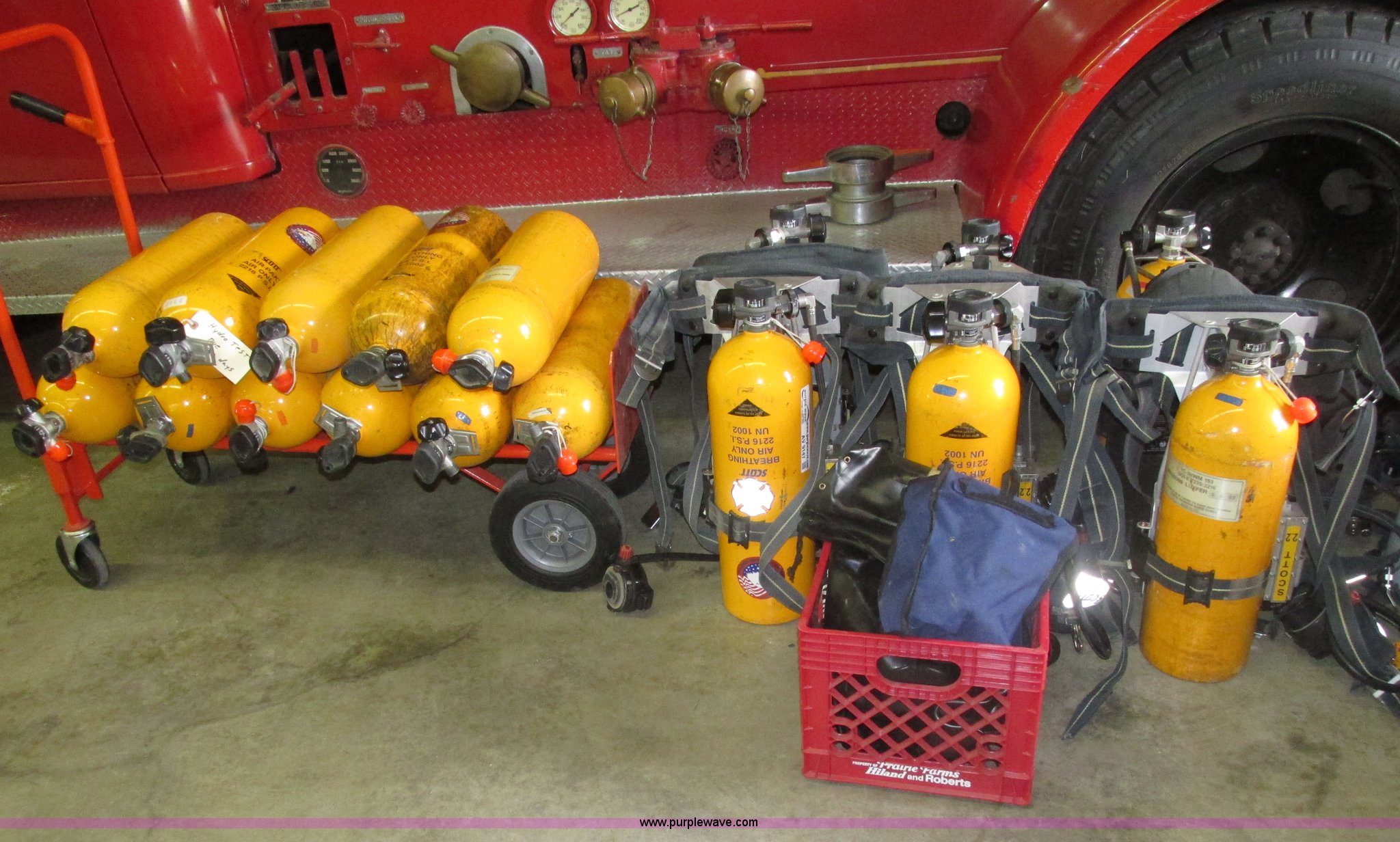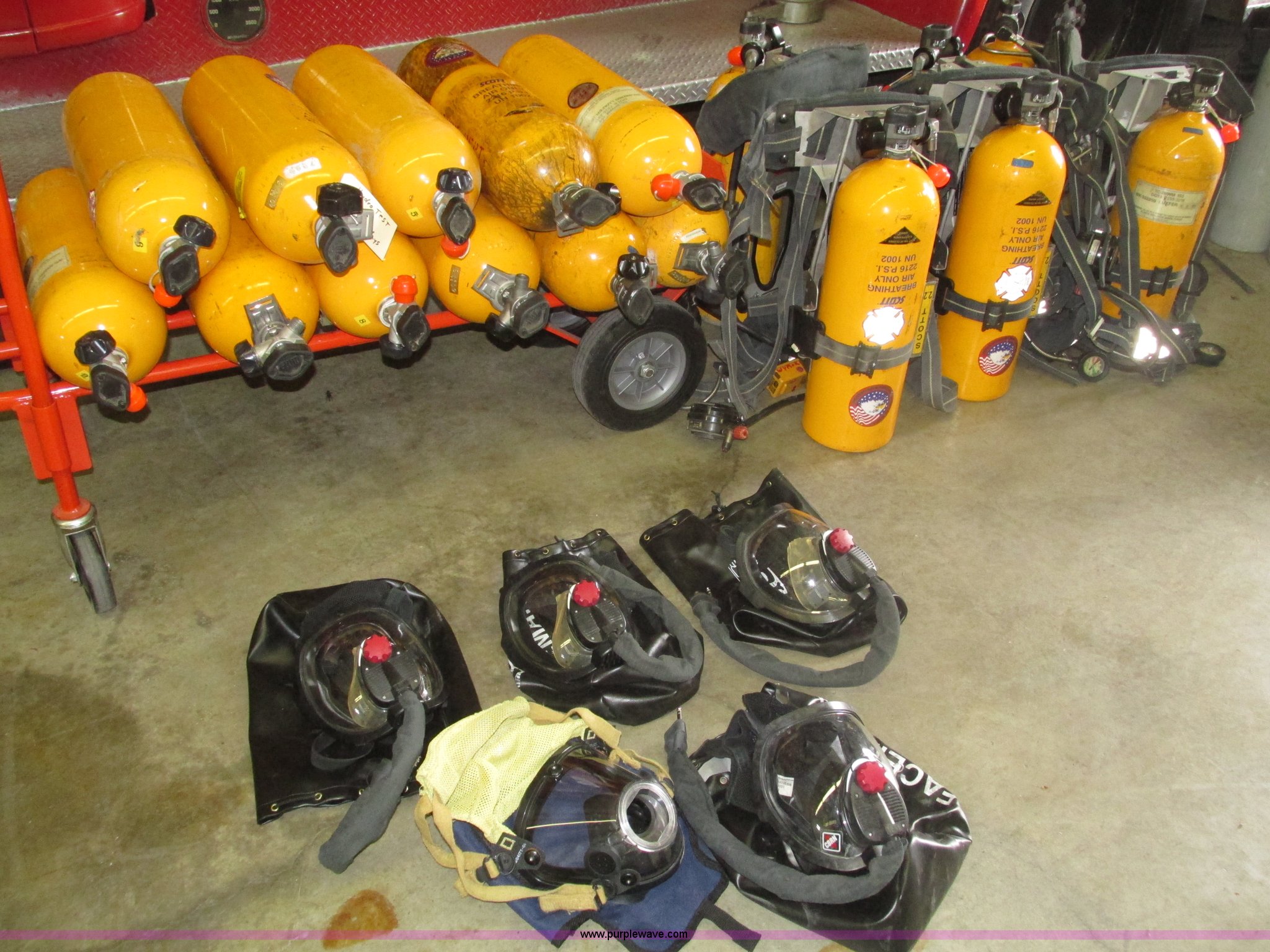 Purple Wave is selling a used Tools in Nebraska. This item is a (6) Scott SCBA backpacks with tanks with the following: (5) face masks and hookup accessories, (11) additional tanks, Cart not included