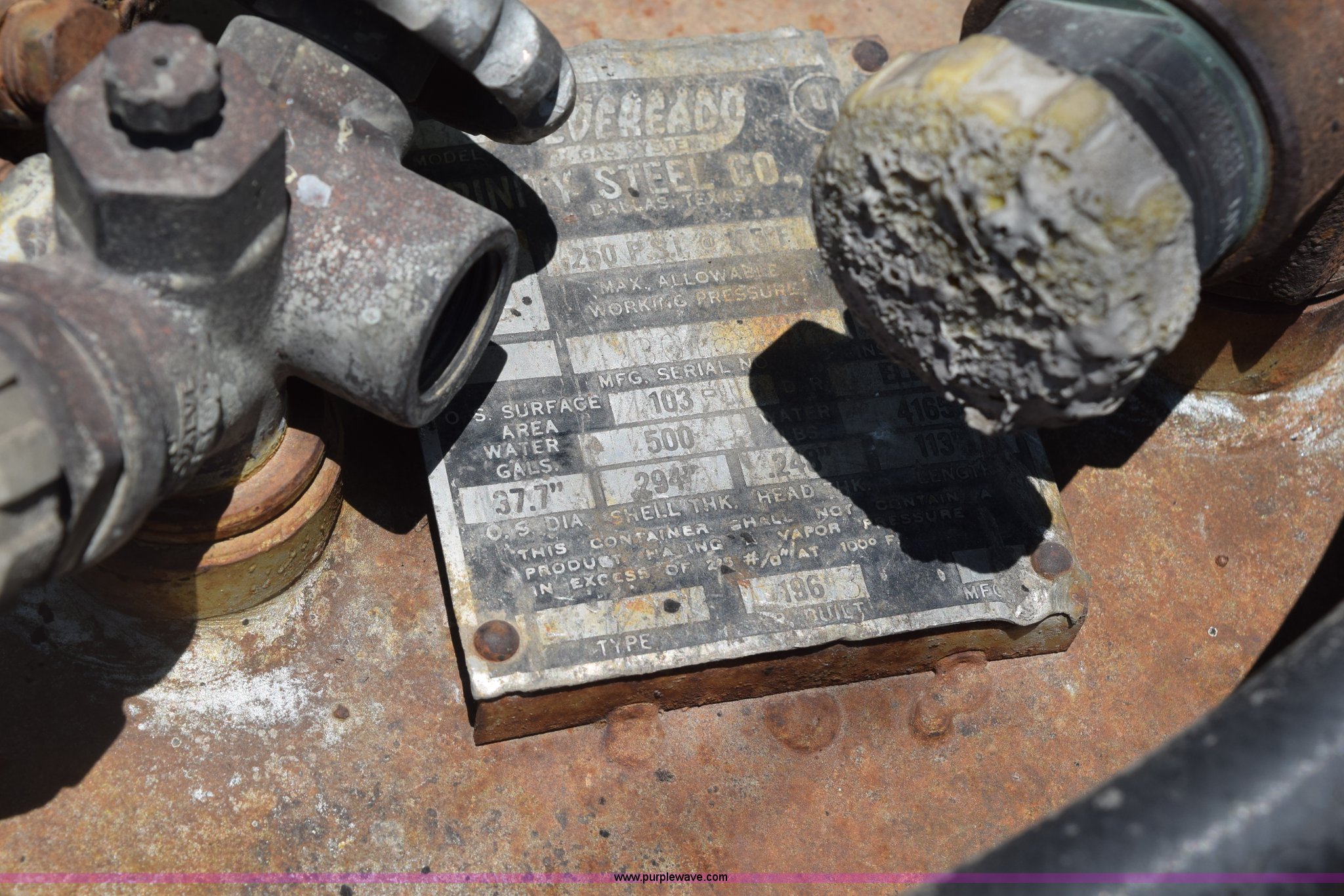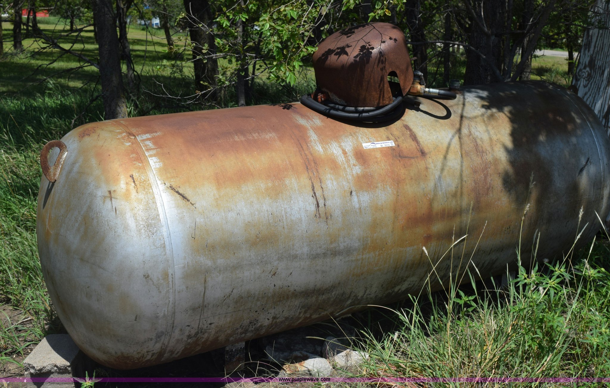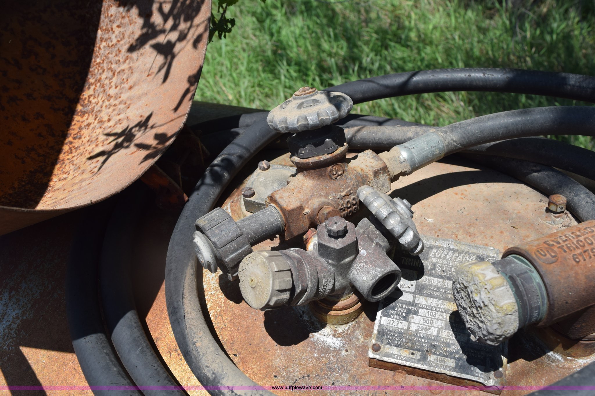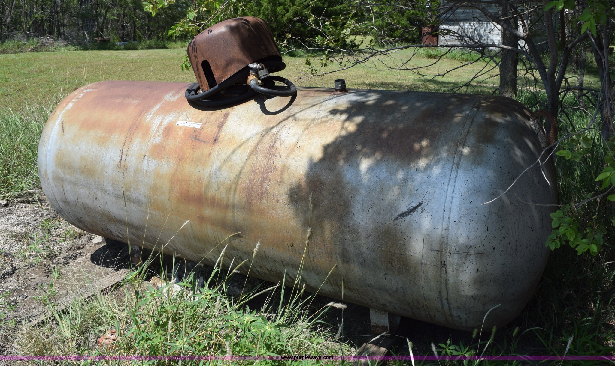 Purple Wave is selling a used Fuel and Lube in Kansas. This item is a Trinity steel propane tank with the following: 500 gallon capacity, Last used five years ago