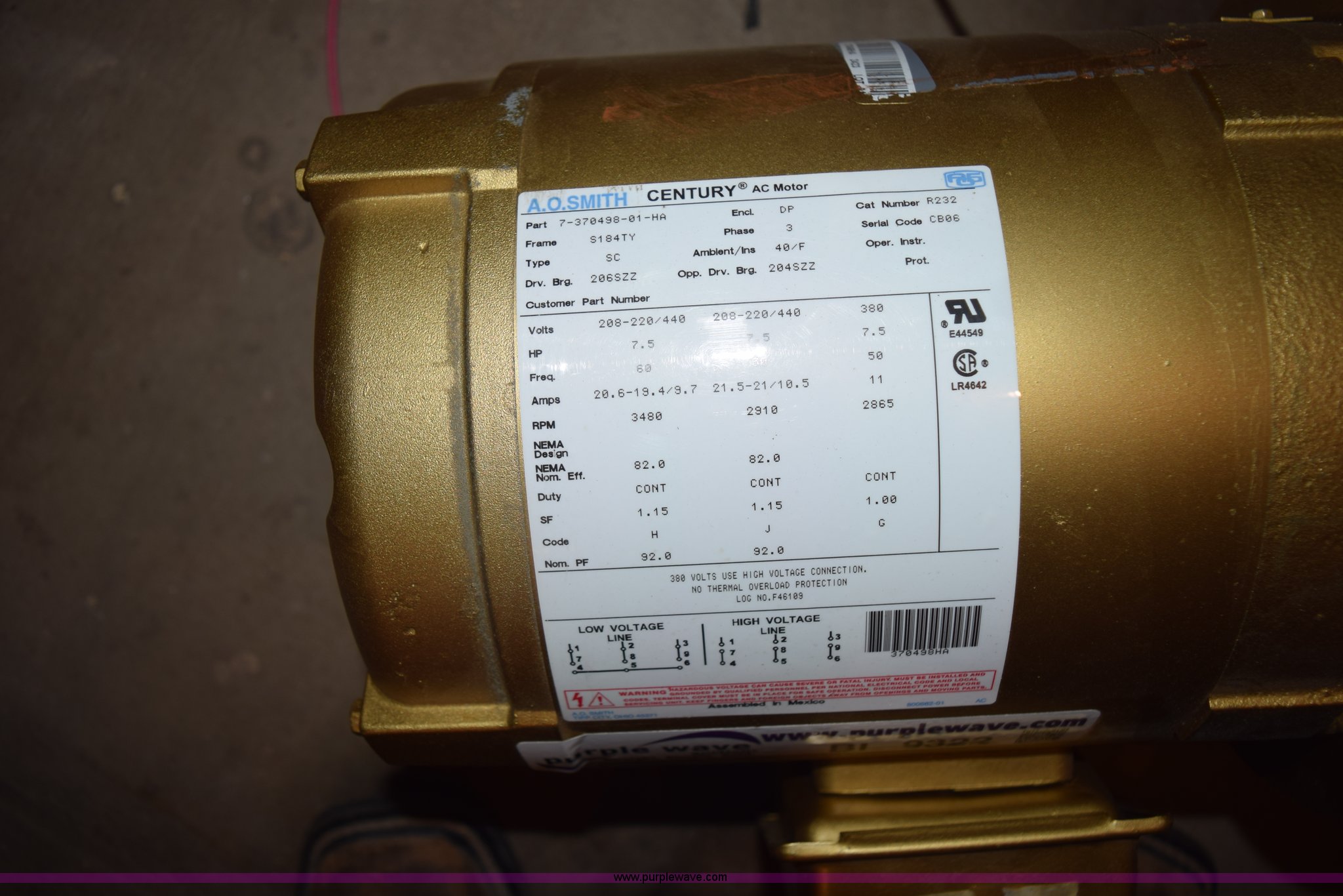 Purple Wave is selling a used Electric Motor in Kansas. This item is a A.O. Smith Century AC motor with the following: 7.5 HP, 208-220/440V, Three phase