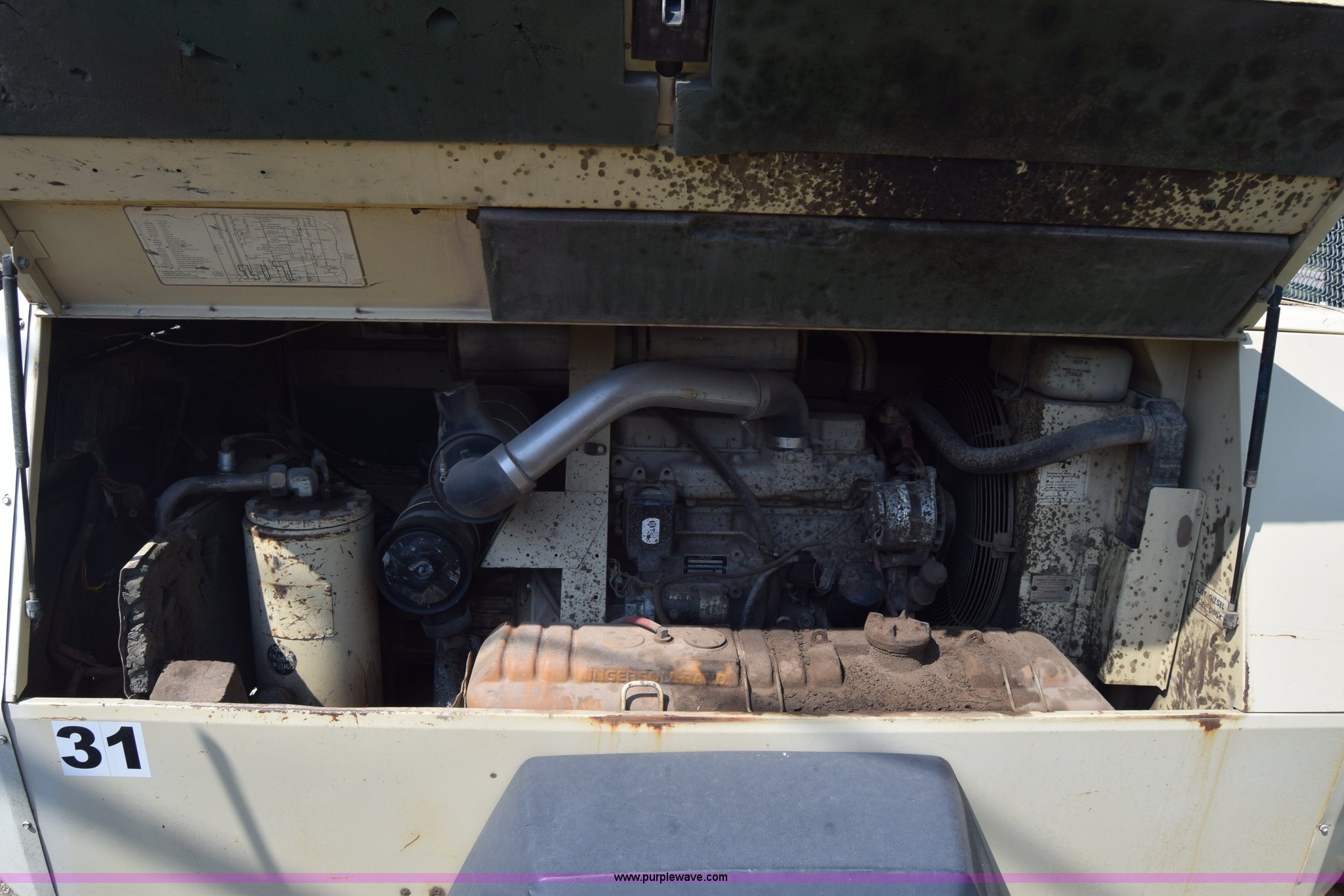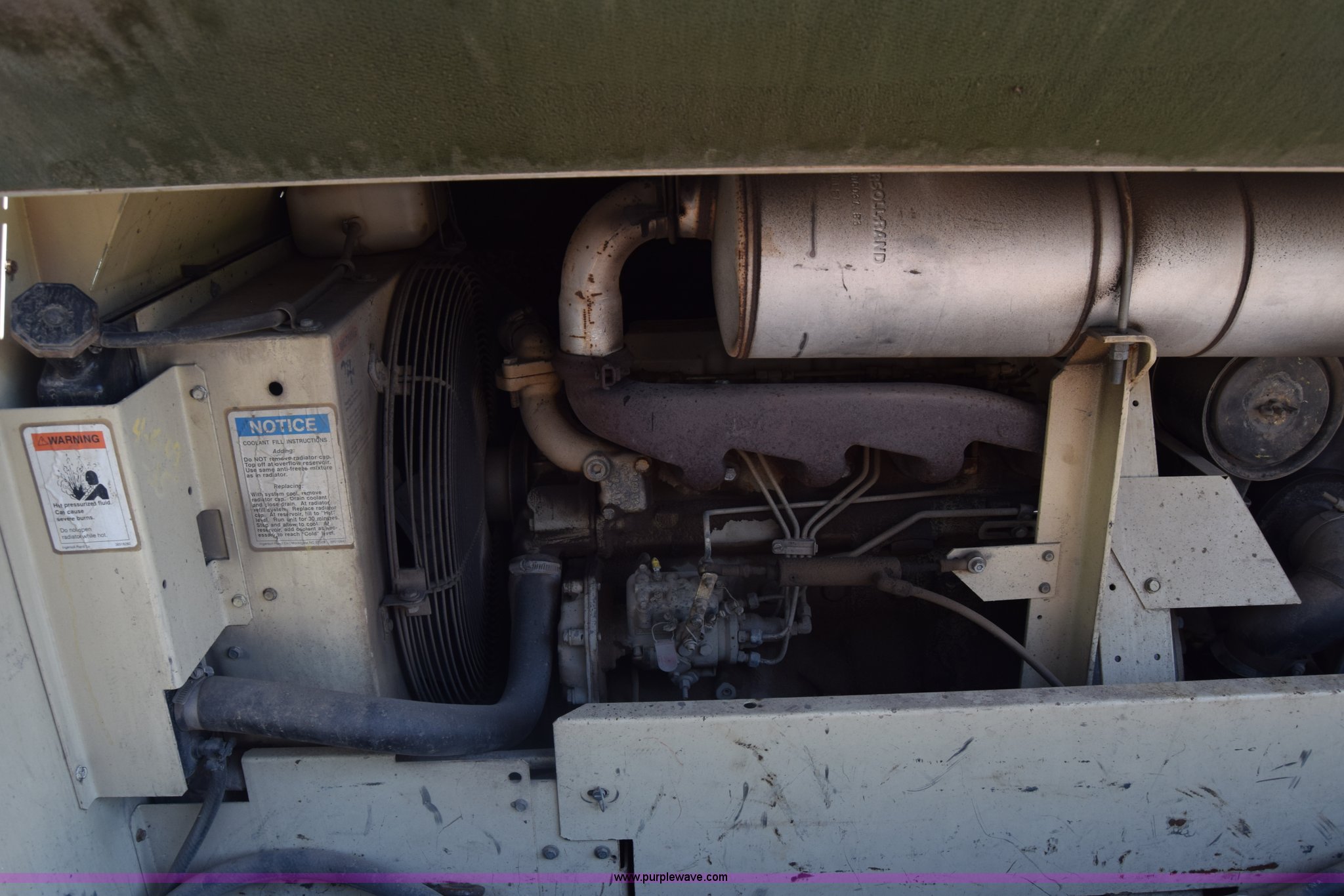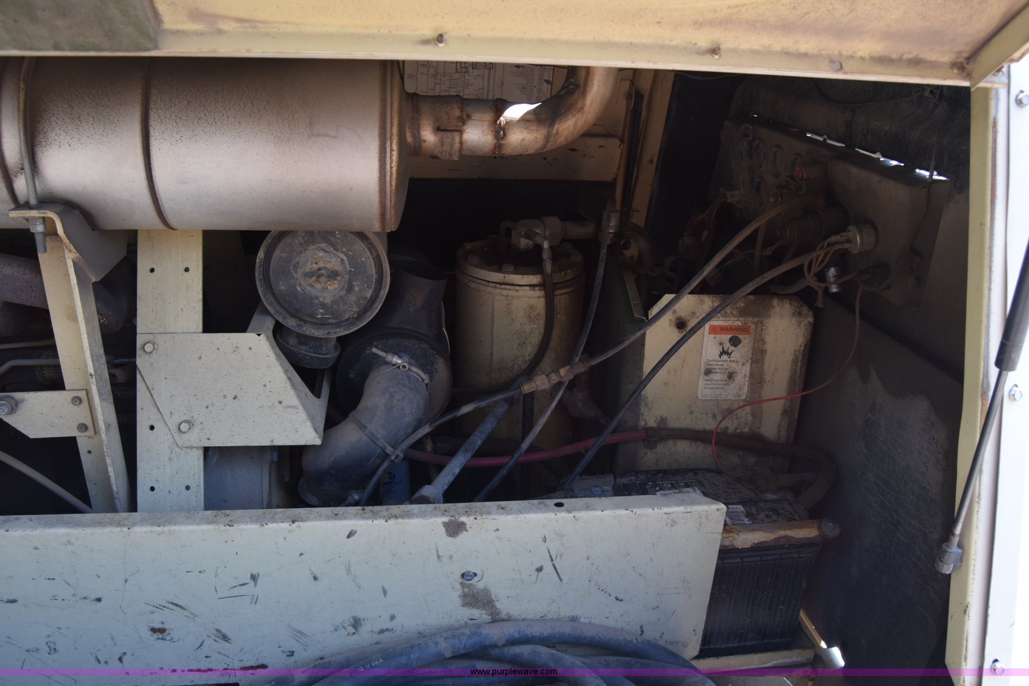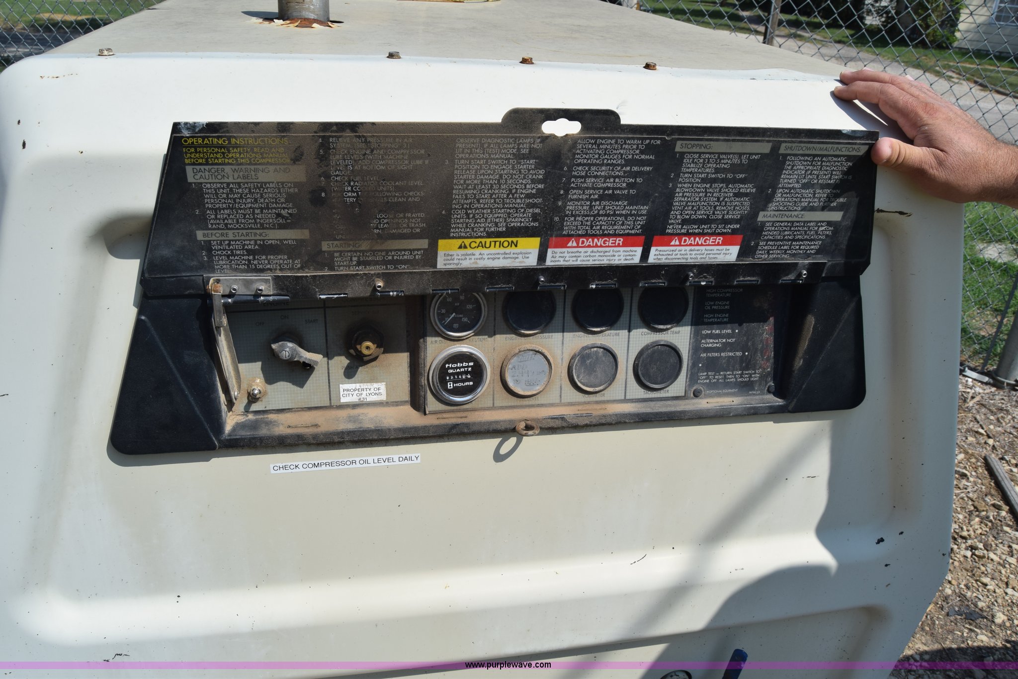 Purple Wave is selling a used Air Compressor in Kansas. This item is a Ingersoll Rand 185 air compressor with the following: 3,149 hours on meter, John Deere 4.5L four cylinder diesel engine, 185 cfm, Ball hitch, Manual jack