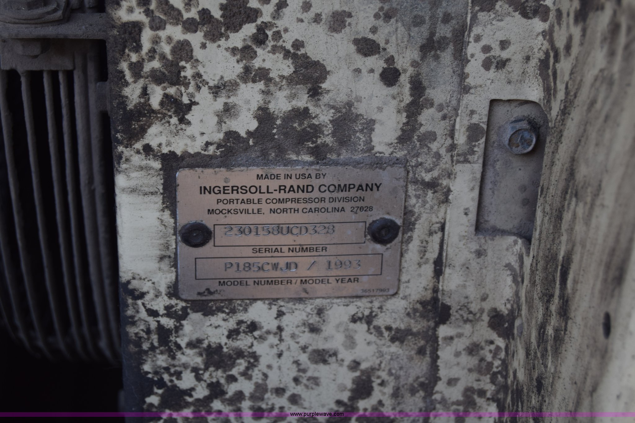 Ingersoll Rand 185 air compressor. 3,149 hours on meter, John Deere 4.5L four cylinder diesel engine, 185 cfm, Ball hitch, Manual jack. 324 W Ave North. Lyons, KS 67554