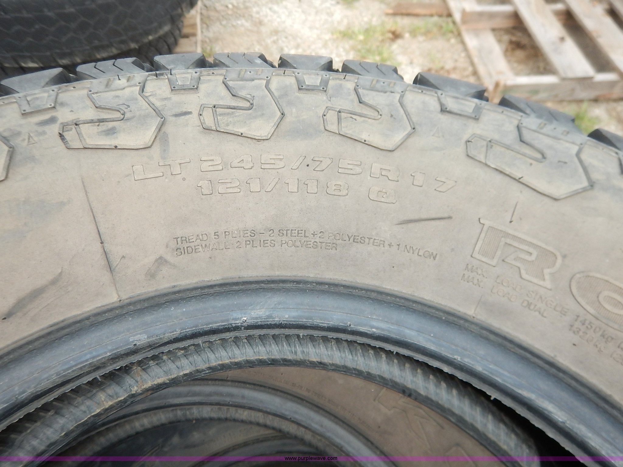 Purple Wave is selling a used Fleet Tires in Kansas. This item is a (5) 245/75R17 tires with the following: (5) 245/75R17 tires. City of Baldwin. 609 High St. Baldwin City, KS 66006