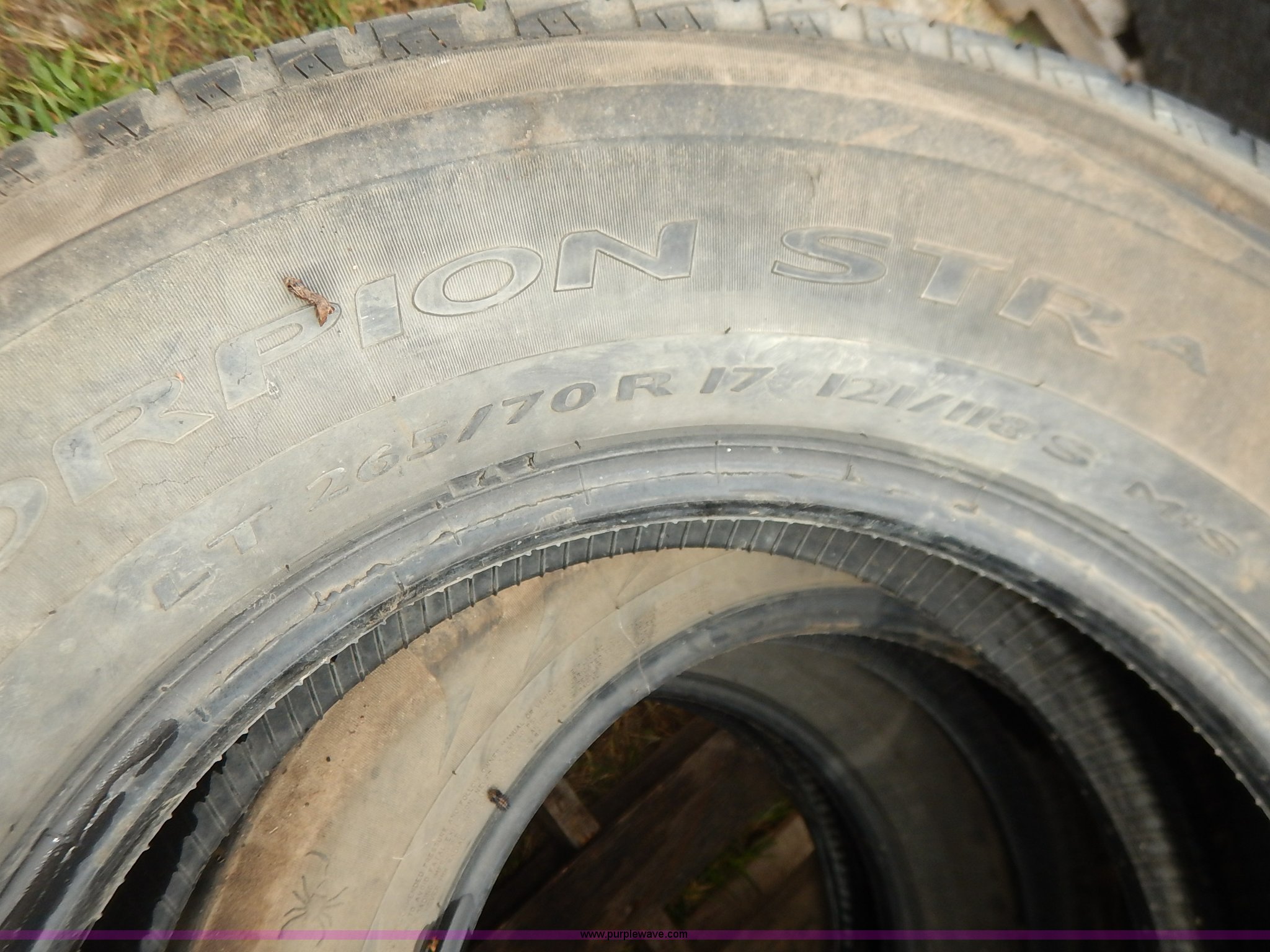 Purple Wave is selling a used Fleet Tires in Kansas. This item is a (8) 265/70R17 tires with the following: (8) 265/70R17 tires. City of Baldwin. 609 High St. Baldwin City, KS 66006