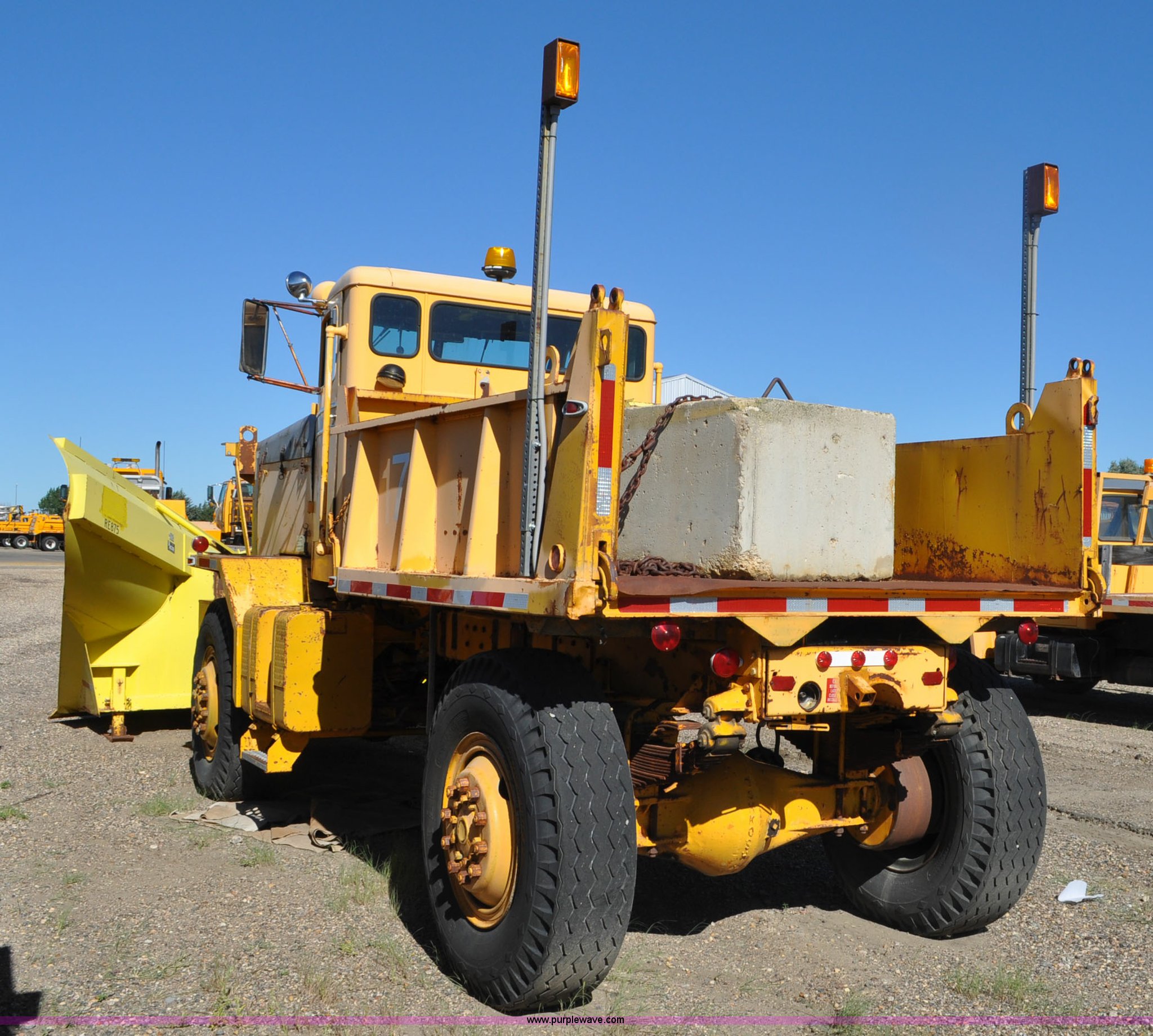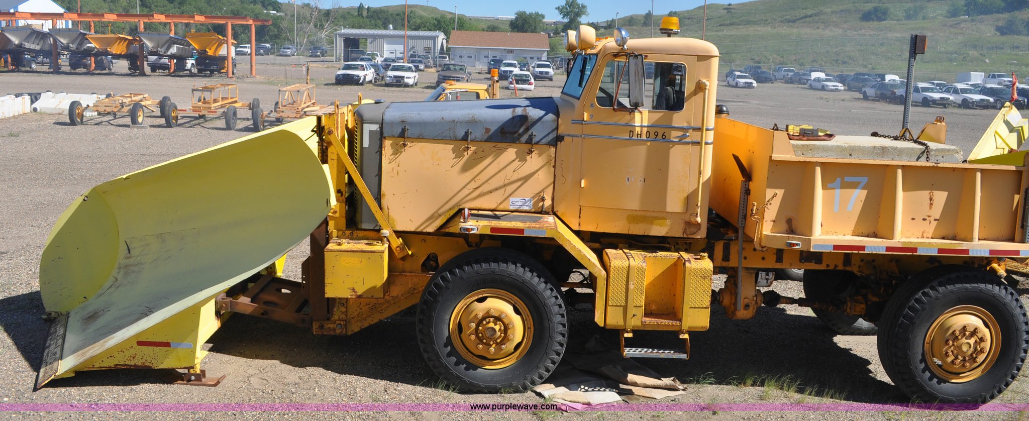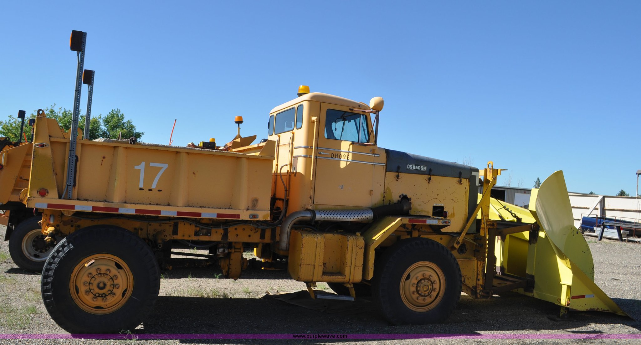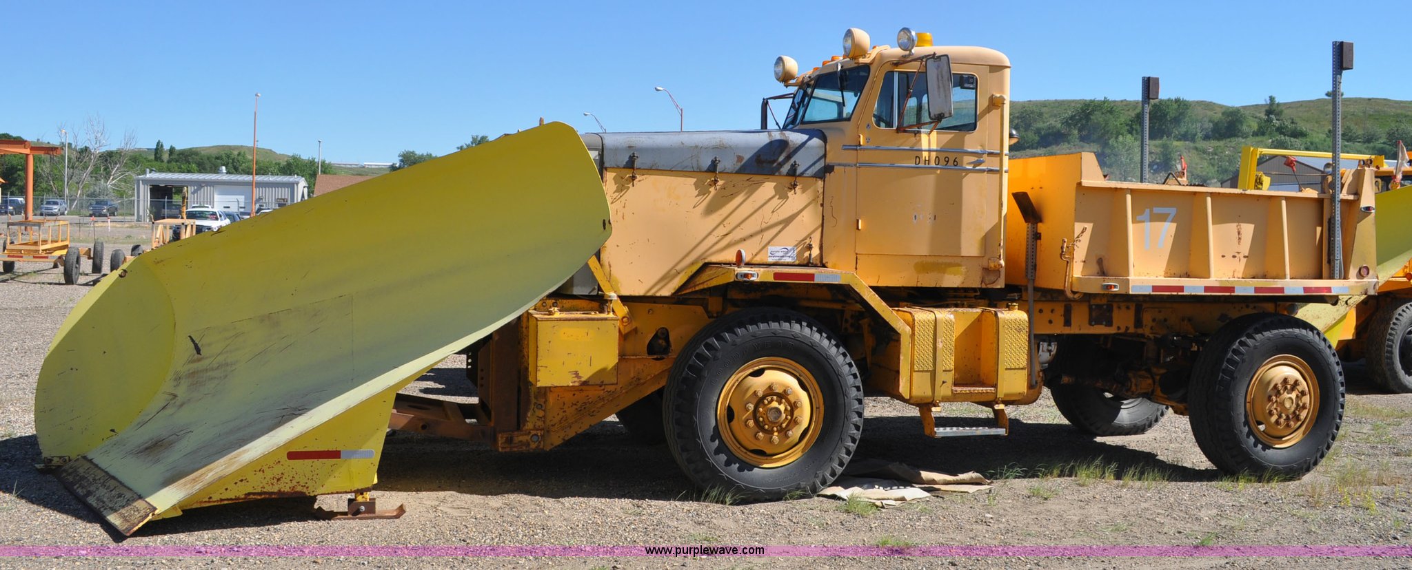 Purple Wave is selling a used Construction Dump Truck in South Dakota. This item is a 1982 Oshkosh WT2206 remanufactured dump truck with the following: 70,537 miles on odometer, 6,416 hours on meter, Caterpillar 3406 diesel engine, Automatic transmission, Four wheel drive, Manual windows and locks, Warning beacon lights, 9' dump bed, No tailgate, Rylind VP-10 V snow plow, 10'W, Unit# RE875, Dual fuel tanks, Air brakes, 14.00-24 tires, GVWR 54,000 lbs, Asset# 327337, Unit# DH096