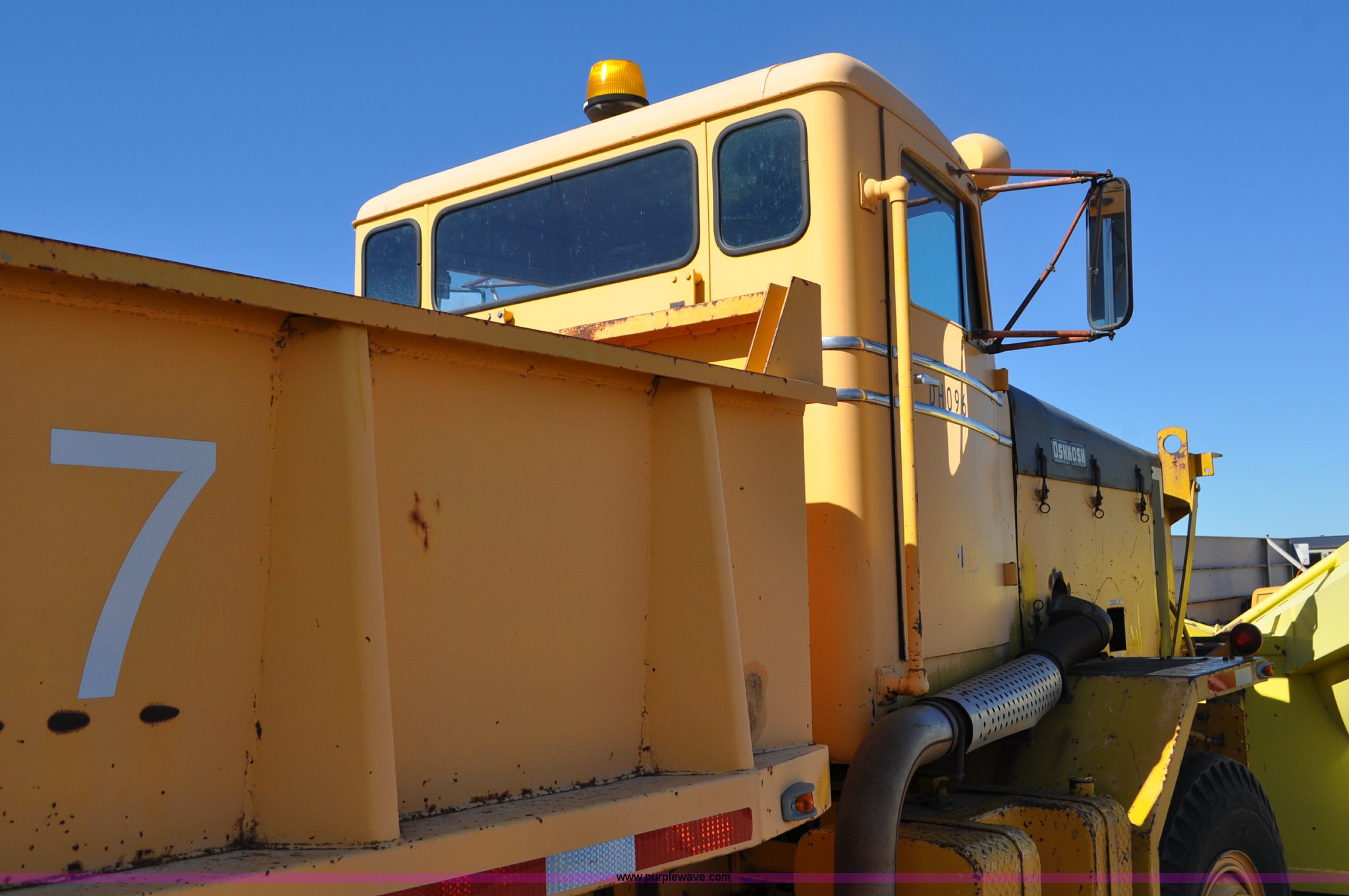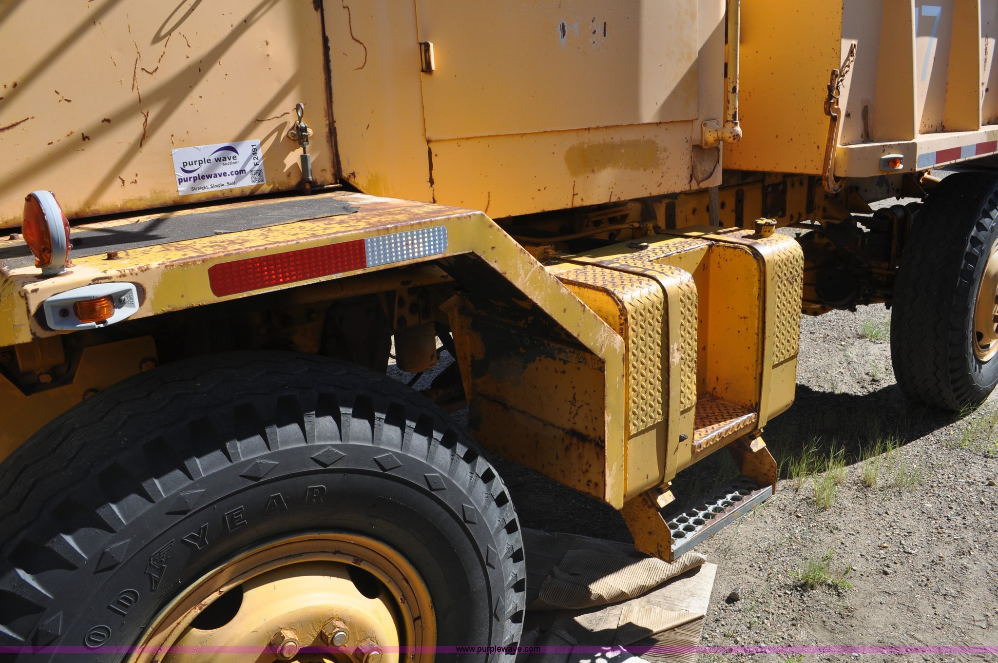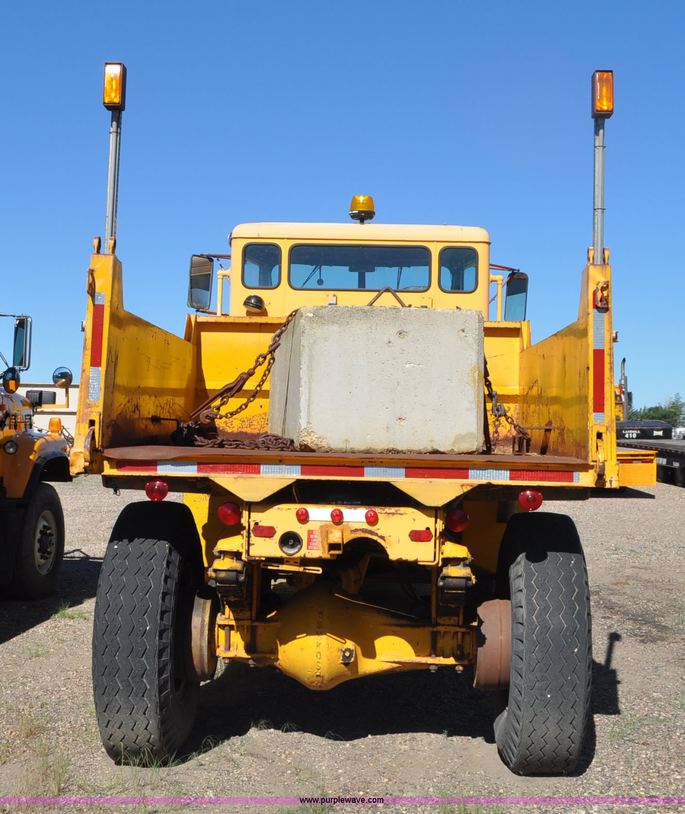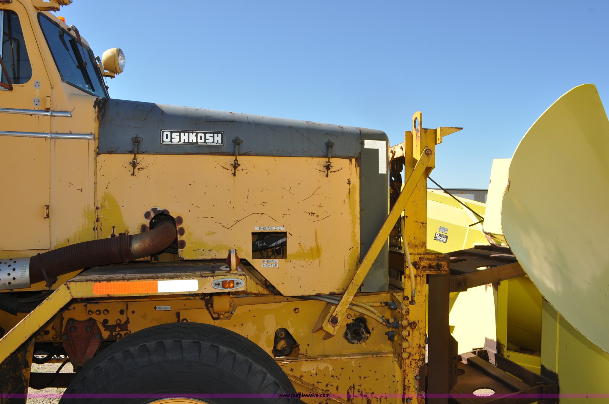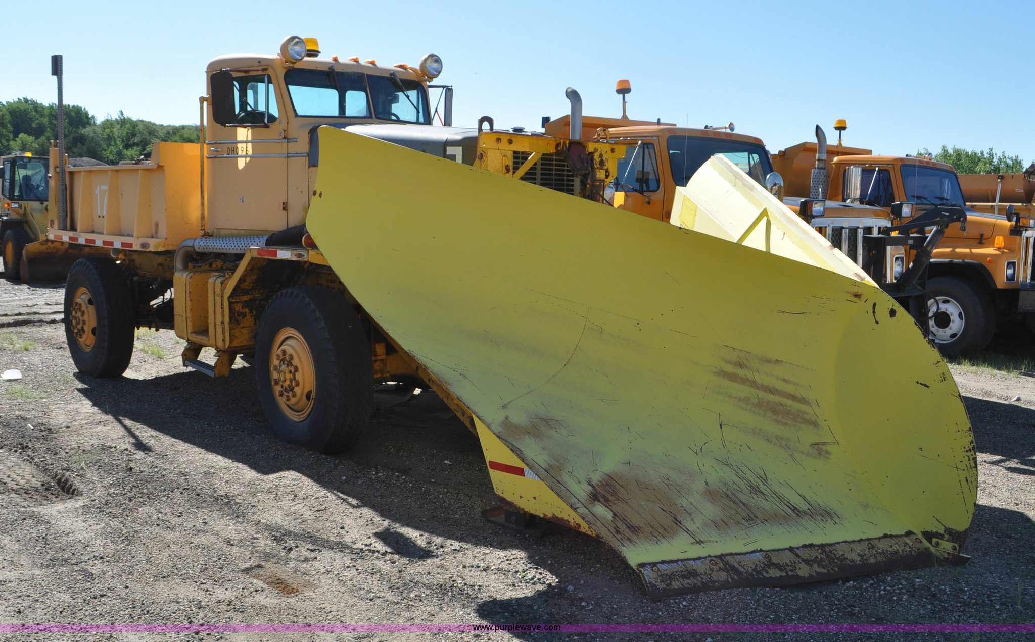 Purple Wave is selling a used Construction Dump Truck in South Dakota. This item is a 1982 Oshkosh WT2206 remanufactured dump truck with the following: 70,537 miles on odometer, 6,416 hours on meter, Caterpillar 3406 diesel engine, Automatic transmission, Four wheel drive, Manual windows and locks, Warning beacon lights, 9' dump bed, No tailgate, Rylind VP-10 V snow plow, 10'W, Unit# RE875, Dual fuel tanks, Air brakes, 14.00-24 tires, GVWR 54,000 lbs, Asset# 327337, Unit# DH096