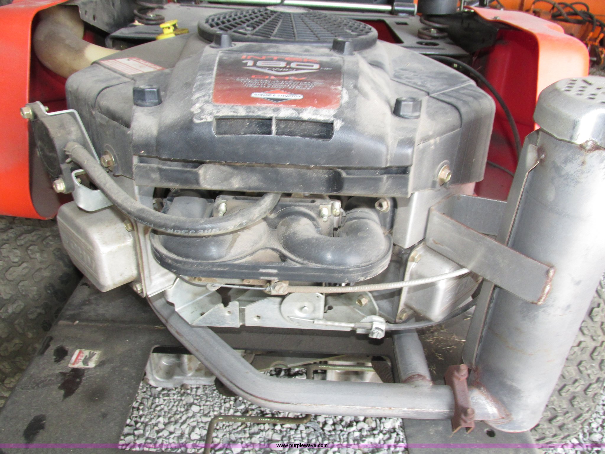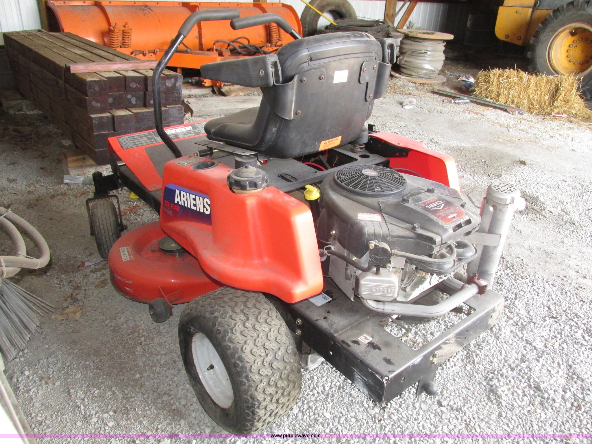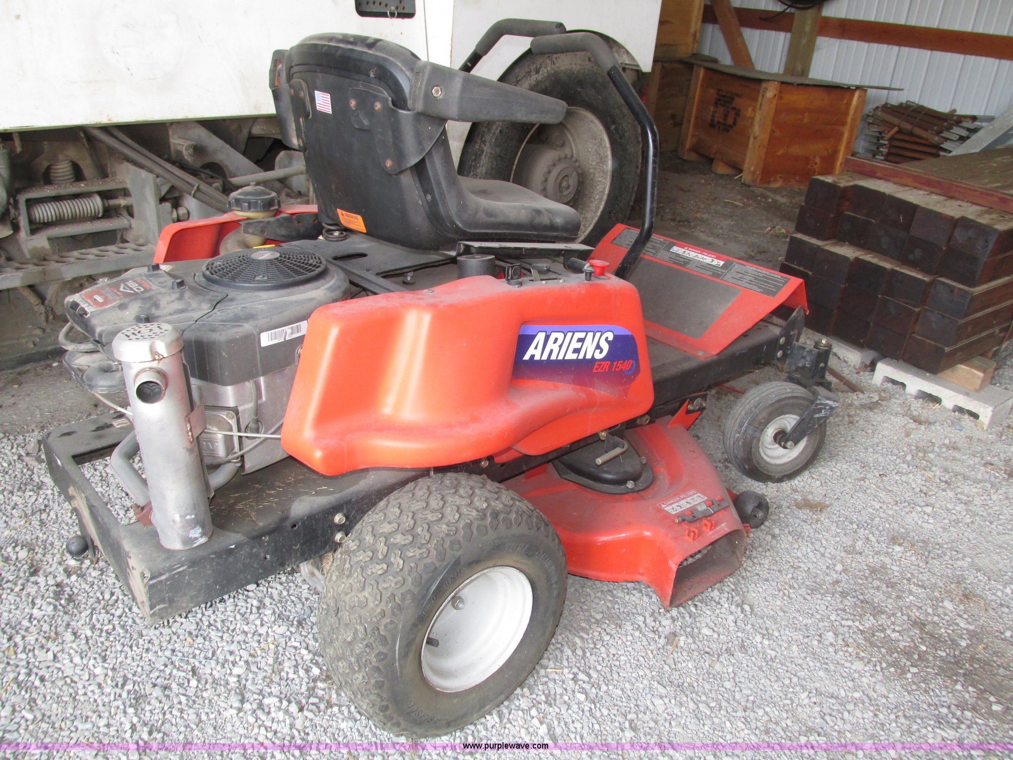 Purple Wave is selling a used Lawn Mower in Nebraska. This item is a Ariens EZR1540 lawn mower with the following: 40" cut, Briggs & Stratton Intek 18 HP V-twin gas engine, 11x4.00-5 front swivel tires, 18x8.50-8 rear drive tires, Belts intermittently come off, Dead battery, Will be charged prior to auction, No grass deflector, Serial 002130