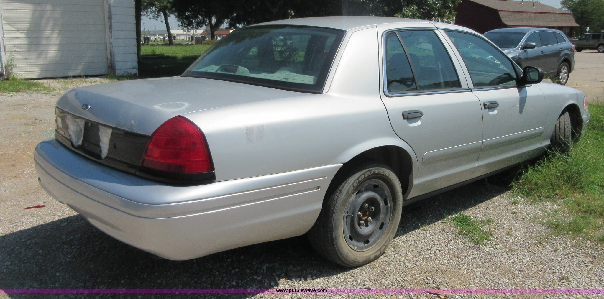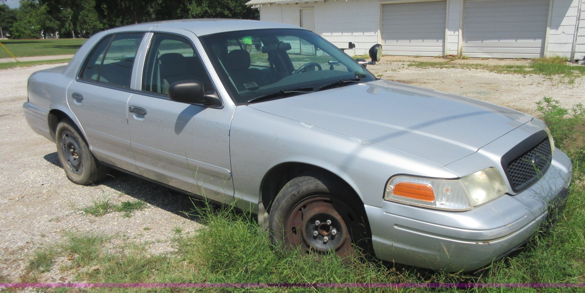 Purple Wave is selling a used Passenger Vehicle in Kansas. This item is a 2003 Ford Crown Victoria Police Interceptor with the following: 118,749 miles on odometer, 4.6L V8 SOHC 16V gas engine, Automatic transmission, AC and heat, Tilt, Cruise, AM/FM, Power windows, locks, mirrors, and seat, Cloth interior, Spotlight, P225/60R16 tires, No battery, Electrical issues