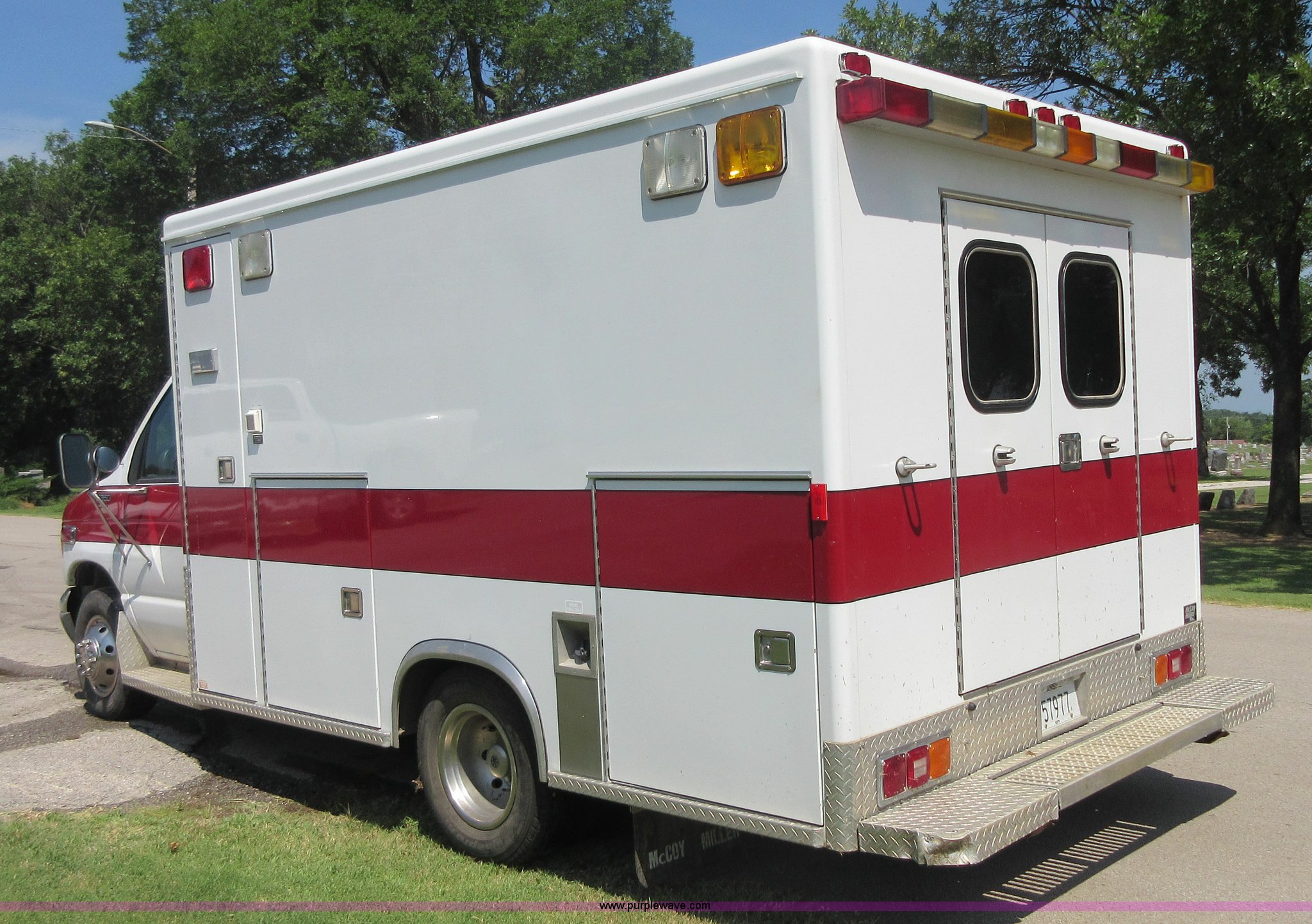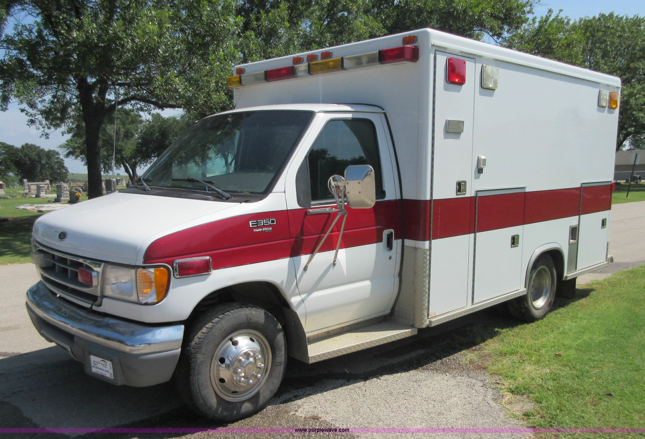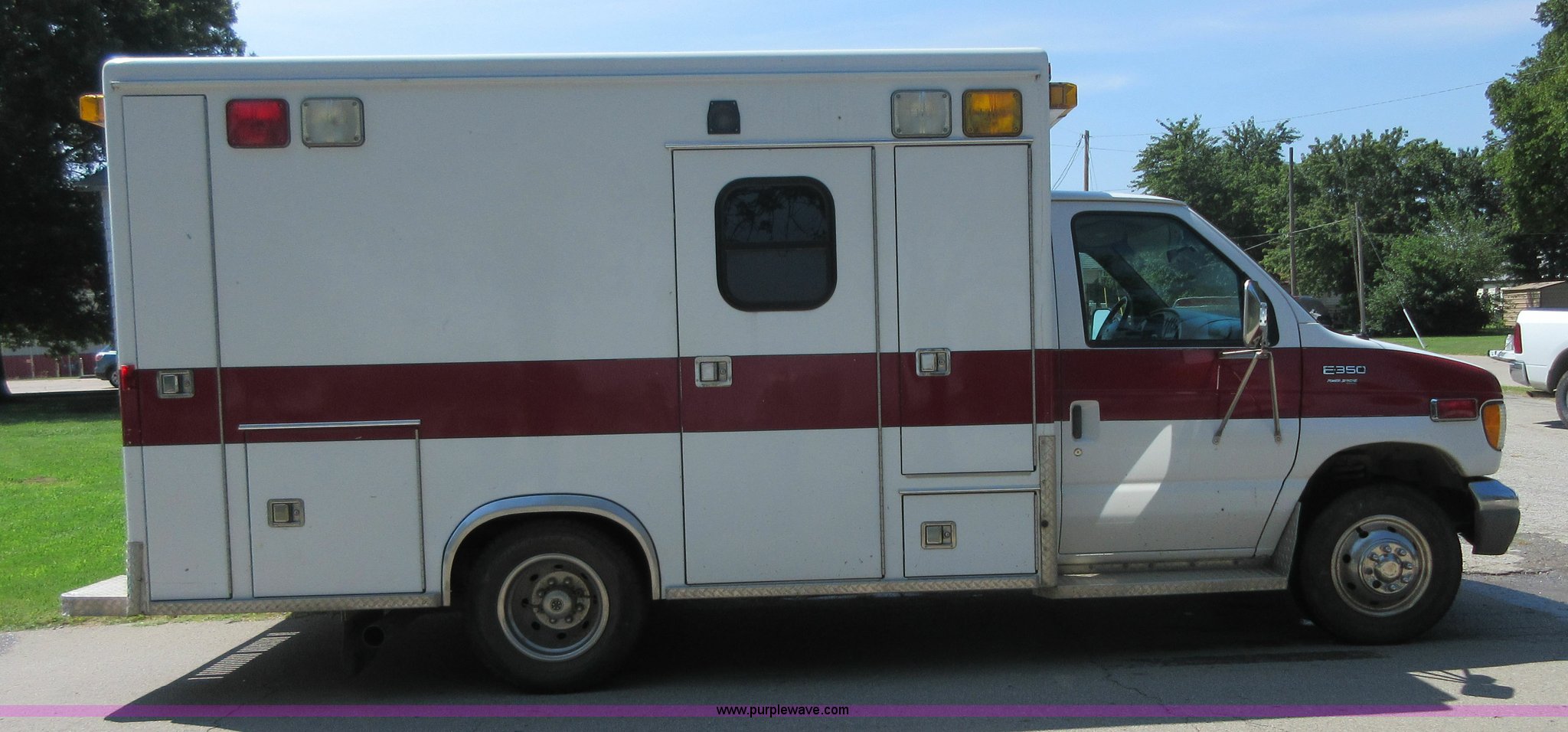 Purple Wave is selling a used Fire Truck or Emergency Vehicle in Kansas. This item is a 1998 Ford Econoline E350 ambulance with the following: 124,559 miles on odometer, 7.3L V8 OHV 16V diesel engine, Automatic transmission, AC and heat, Tilt, Cruise, AM/FM, Power windows and locks, Cloth interior, Running boards, Block heater, McCoy Miller ambulance body, Type III Medic 146SE, LT225/75R16 tires