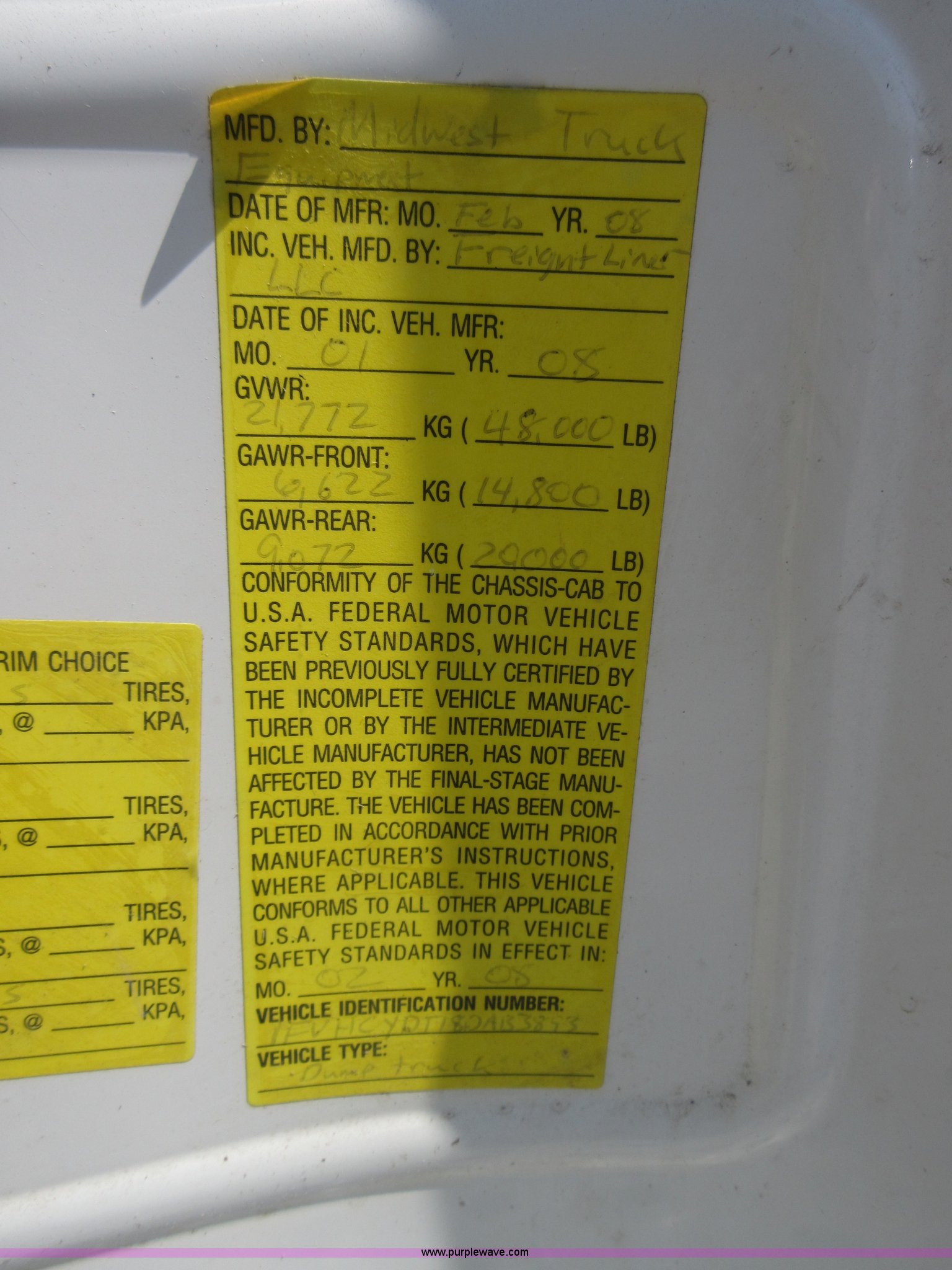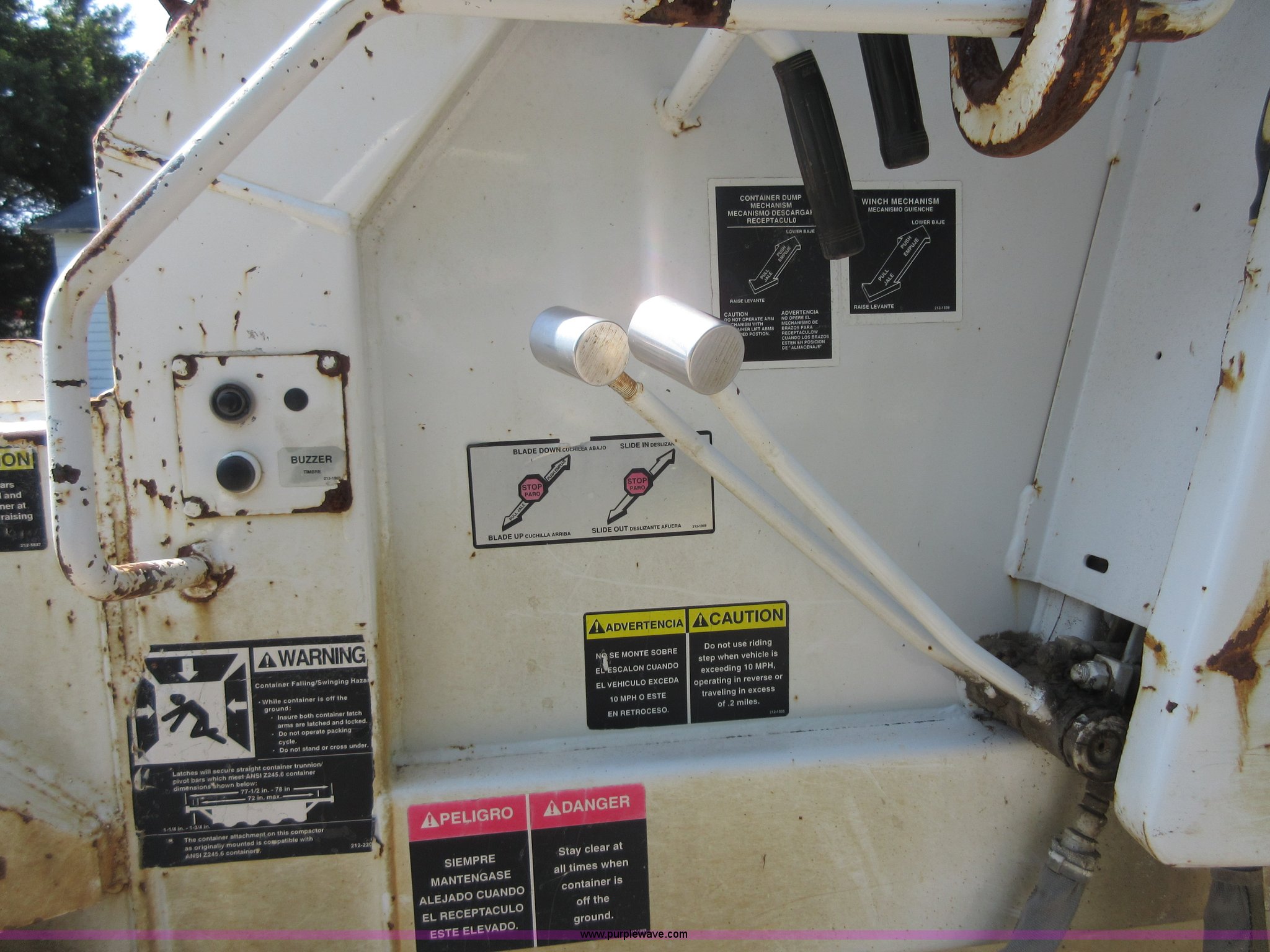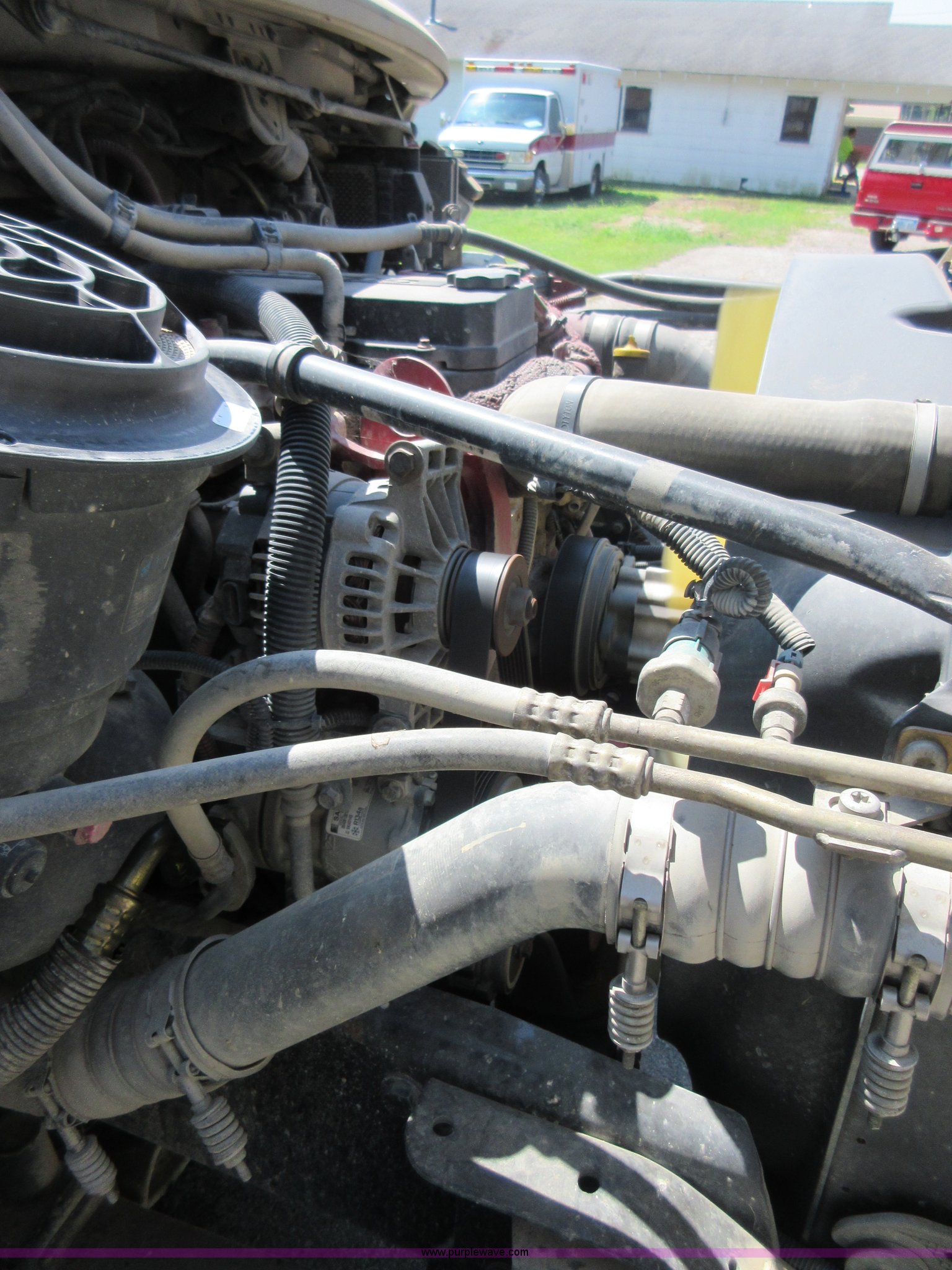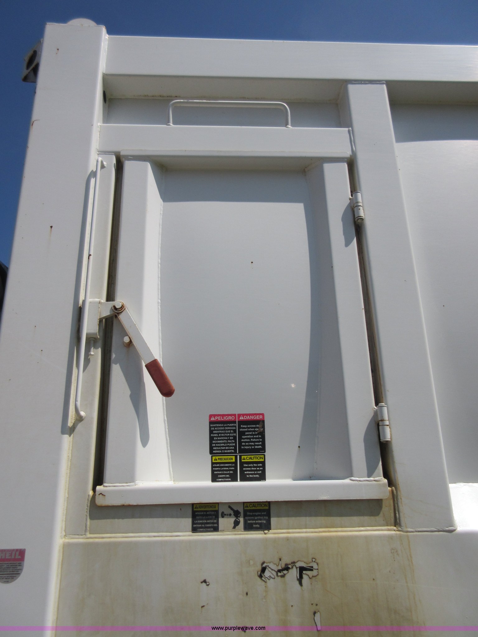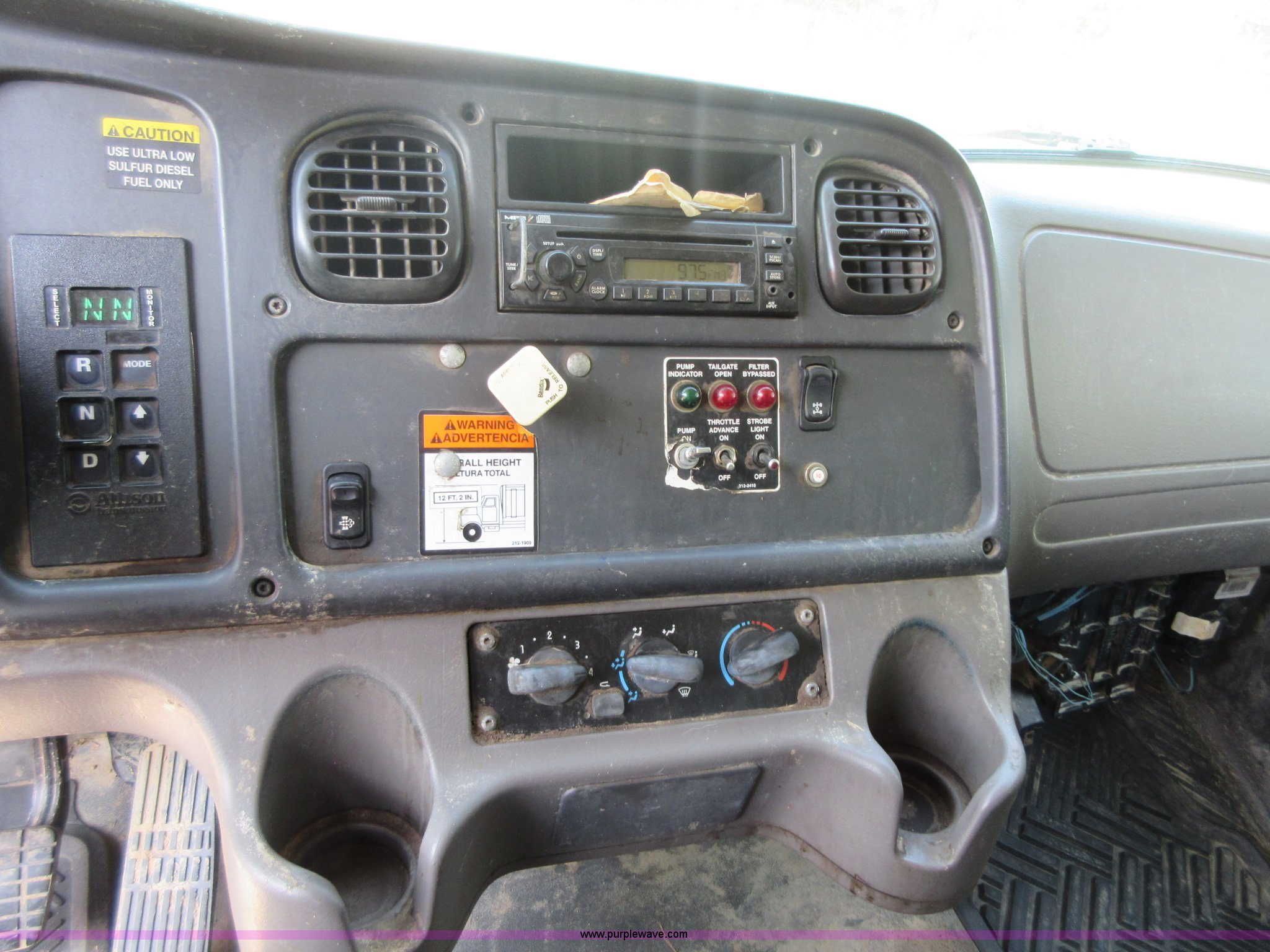 Purple Wave is selling a used Refuse Truck in Kansas. This item is a 2008 Freightliner Business Class M2 refuse truck with the following: 89,567 miles on odometer, Cummins ISB 6.7L L6 turbo diesel engine, Allison automatic transmission, Tandem axle, AC and heat, Cruise, AM/FM/CD, Air suspension seat, Twin passenger steps, Front tow hooks, PTO, Heil refuse body, 25 yard capacity, Hydraulic ram lift, Single exhaust stack, Dual fuel tanks, Walking beam suspension, Air brakes, Double frame, 224" wheelbase, 12R22.5 front tires, 11R22.5 rear tires, GVWR 48,000 lbs, FAWR 14,800 lbs, IAWR 20,000 lbs, RAWR 20,000 lbs, Check engine light on, ABS light on