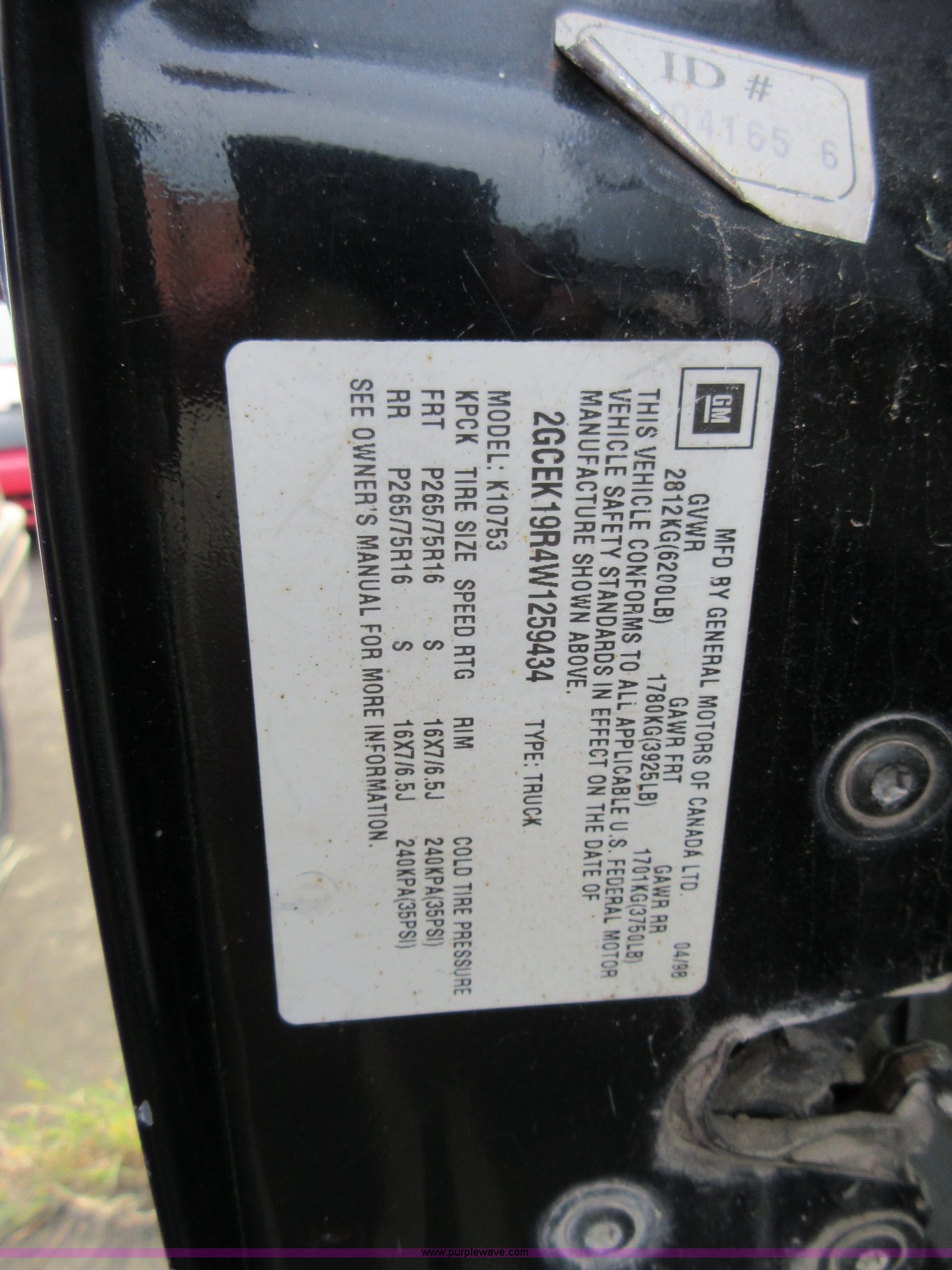Purple Wave is selling a used 1/2 Ton Pickup or Van in Kansas. This item is a 1998 Chevrolet 1500 Ext. Cab pickup truck with the following: 235,478 miles on odometer, 5.7L V8 OHV 16V gas engine, Automatic transmission, Four wheel drive, AC and heat, Tilt, Cruise, AM/FM/CD, Power windows, locks, and mirrors, Cloth interior, Receiver hitch, 245/75R16 tires, Interior/exterior cosmetic damage