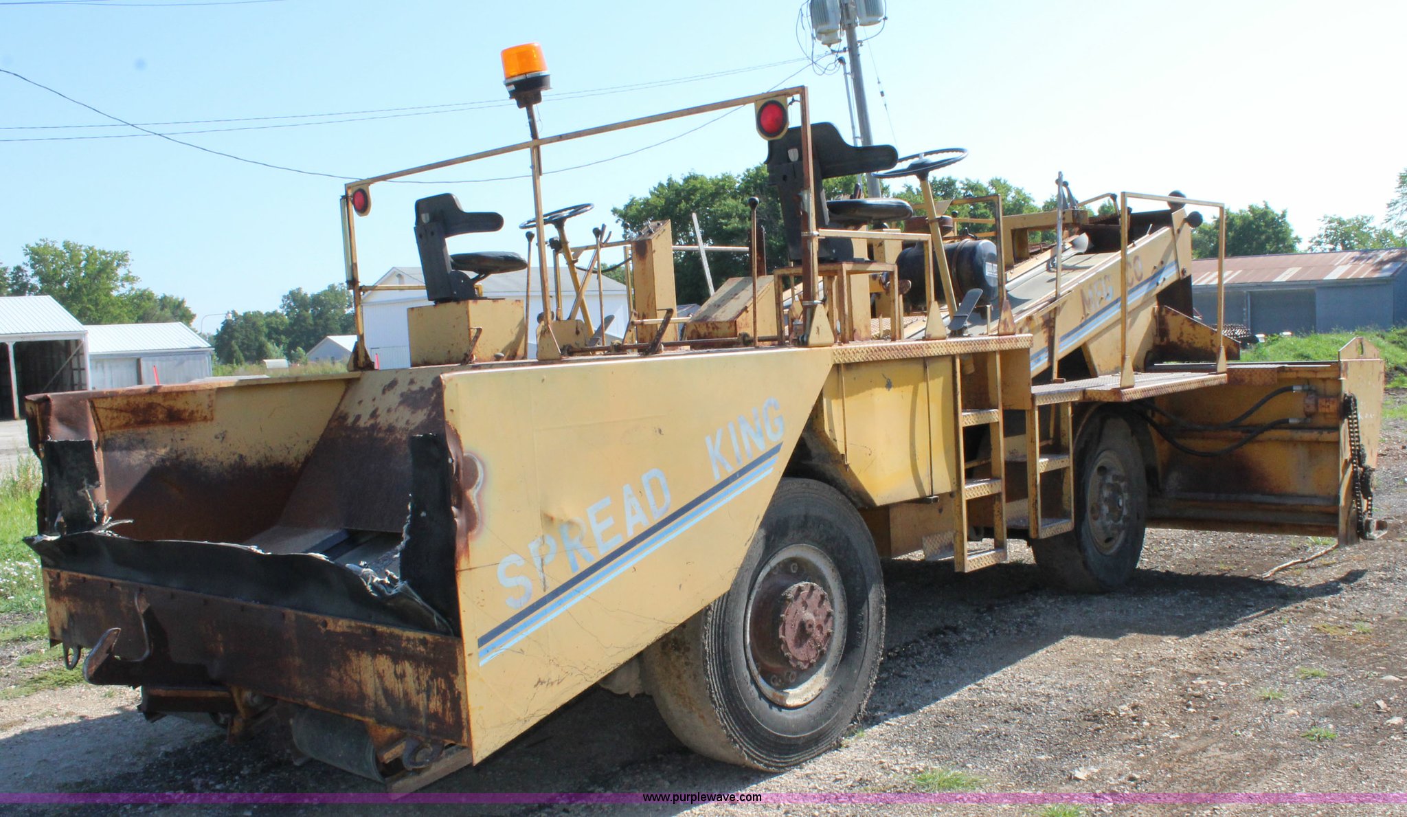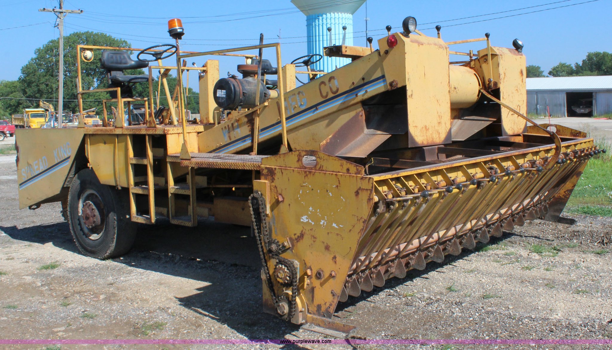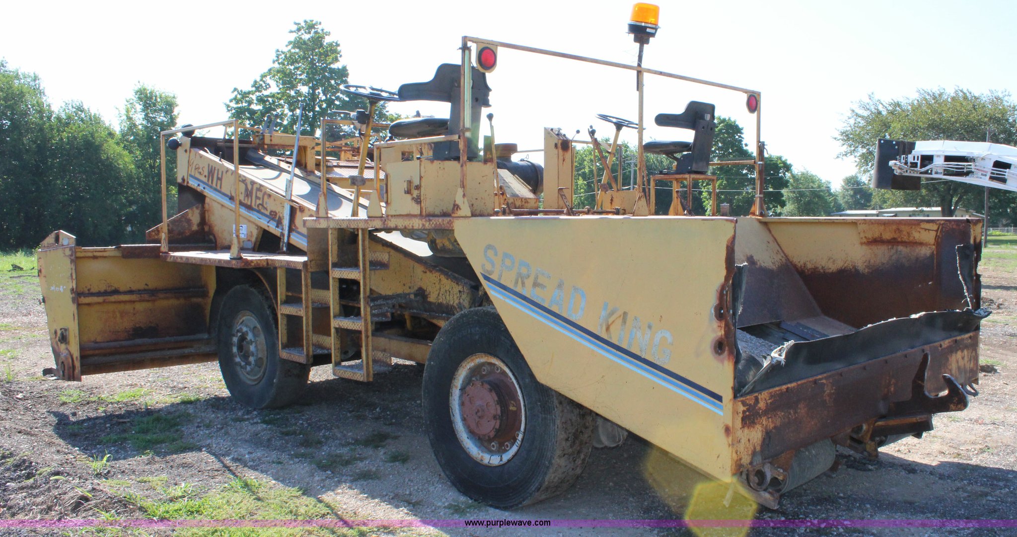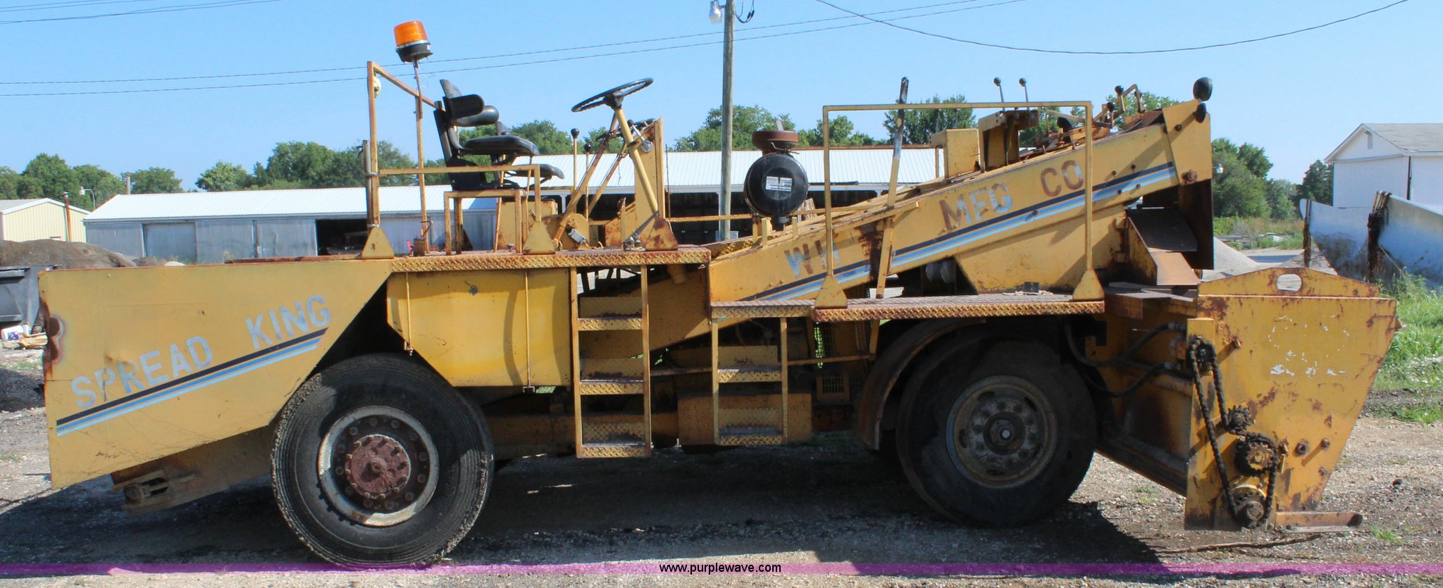 Purple Wave is selling a used Chip Spreader in Kansas. This item is a 1991 W.H. Manufacturing WHS chip spreader with the following: Cummins 5.9L diesel engine, Five speed transmission, 14'W spreader, 11.00-20 tires, Air brakes, Serial 8902